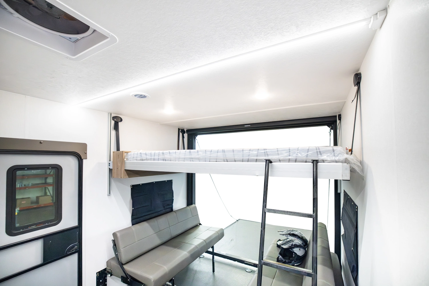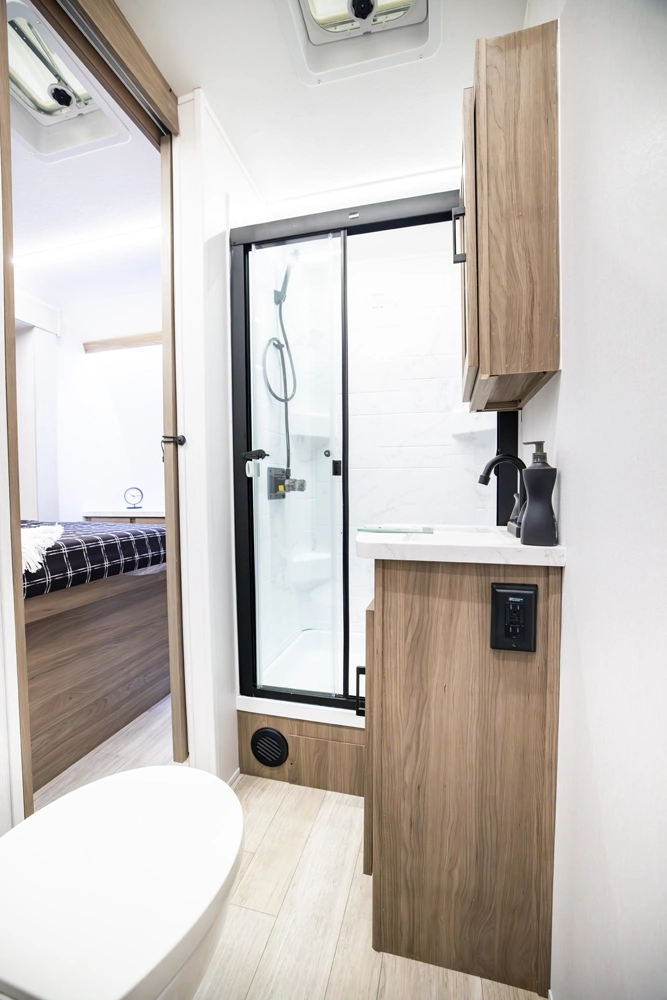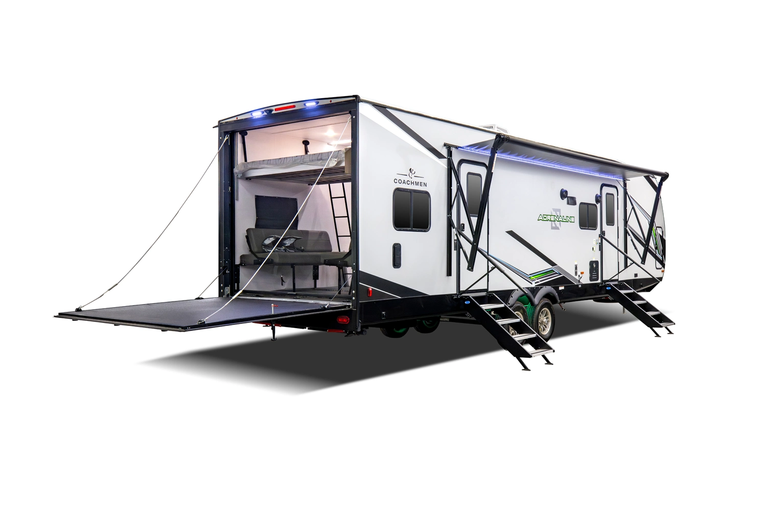 The Adrenaline 30GS is built for serious adventurers who need maximum cargo capacity and full-time usability. With a 37'-6" frame and a large ramp door, it hauls quads, bikes, or side-by-sides and converts into a comfortable retreat when the day is done. Rugged, spacious, and crafted for the long haul.