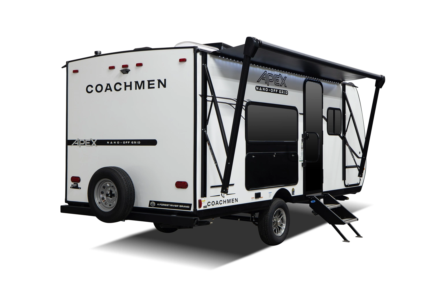At just 21' 5" and under 3,500 lb. dry, the Apex Nano 181RB is a minimalist adventurer’s dream. It is light enough for SUVs or half-ton trucks, yet delivers 52 gallons of fresh water, a rear bath, indoor-outdoor bar top design, perfect for couples chasing big views and weekend escapes.