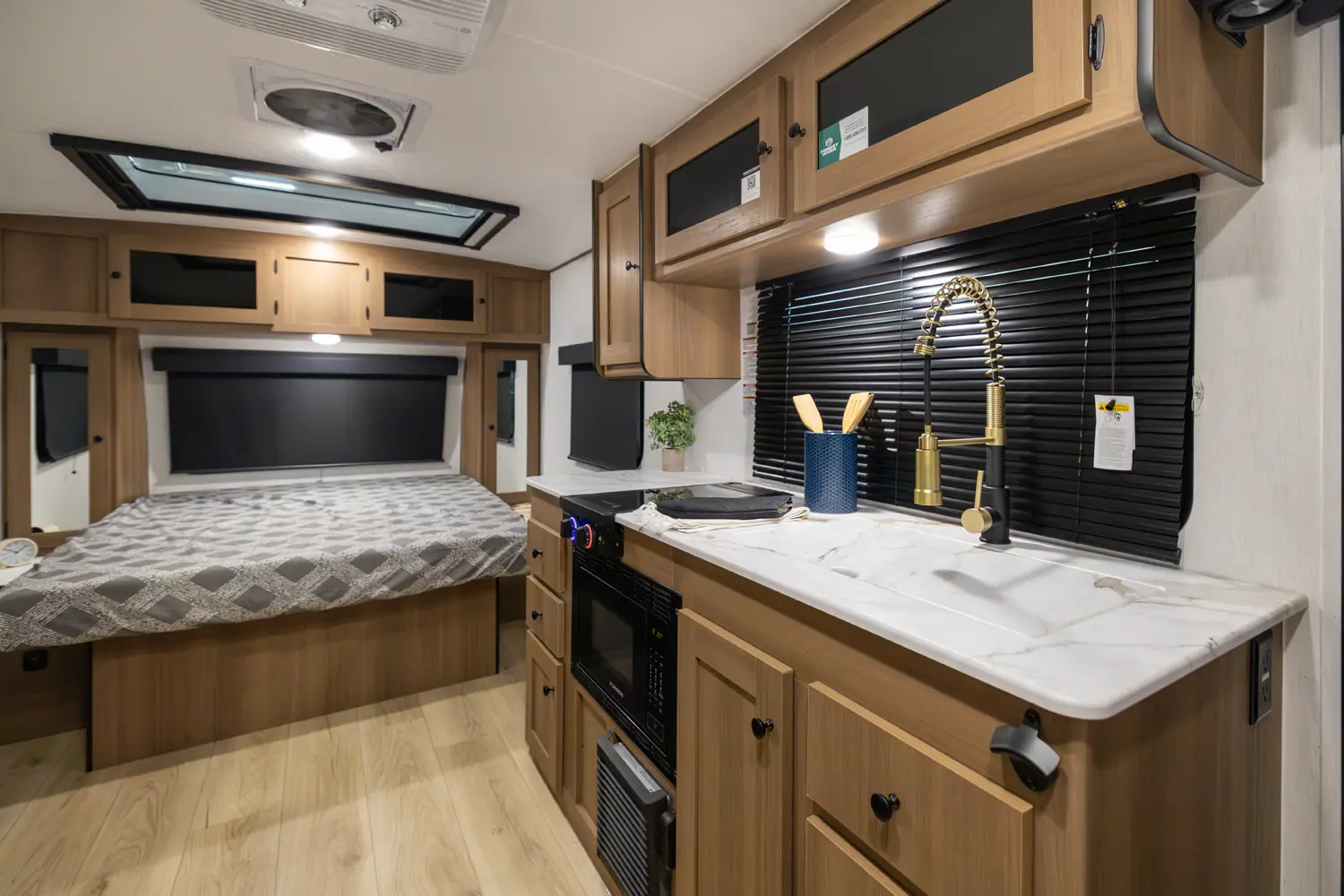 Stretching 22' 7", the Apex Nano 190RBS gives you a dinette slide that opens the living space without tipping the scales. With a 52-gallon freshwater tank and a 400-watt solar system, it is ready for multi-day road trips or base camp weekend retreats.