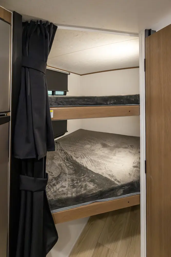 The Apex Nano 208BHS is built for family adventures with double over double bunks, a convertible dinette, and a full bath. Compact and towable, it provides all the essentials for fun-filled trips without compromising comfort.
