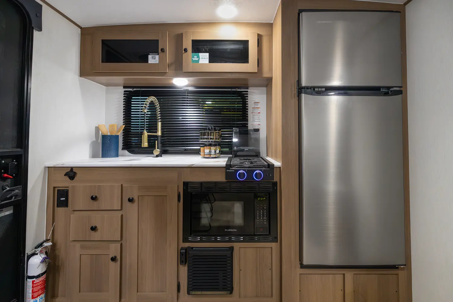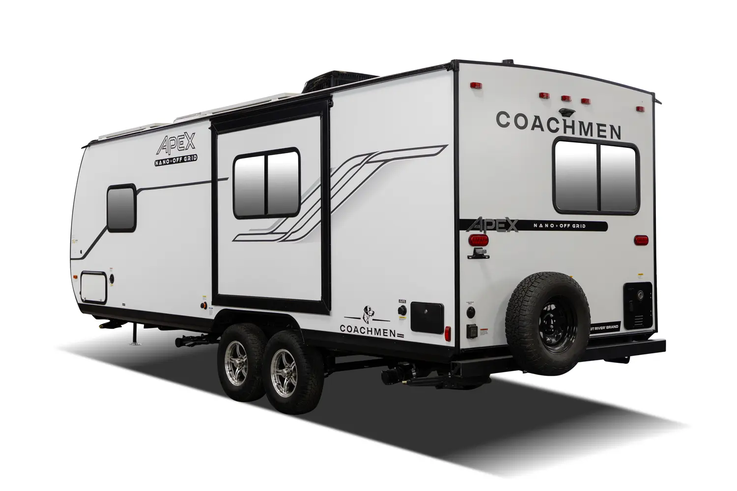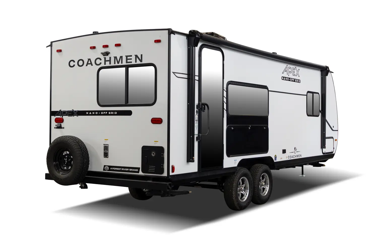 The Apex Nano 216RKS offers a rear kitchen layout with an indoor-outdoor bar top that keeps cooking and cleanup easy while freeing up living space. With a private bedroom and dedicated bedroom A/C, it delivers comfort for couples or small families who want to explore and relax in style.