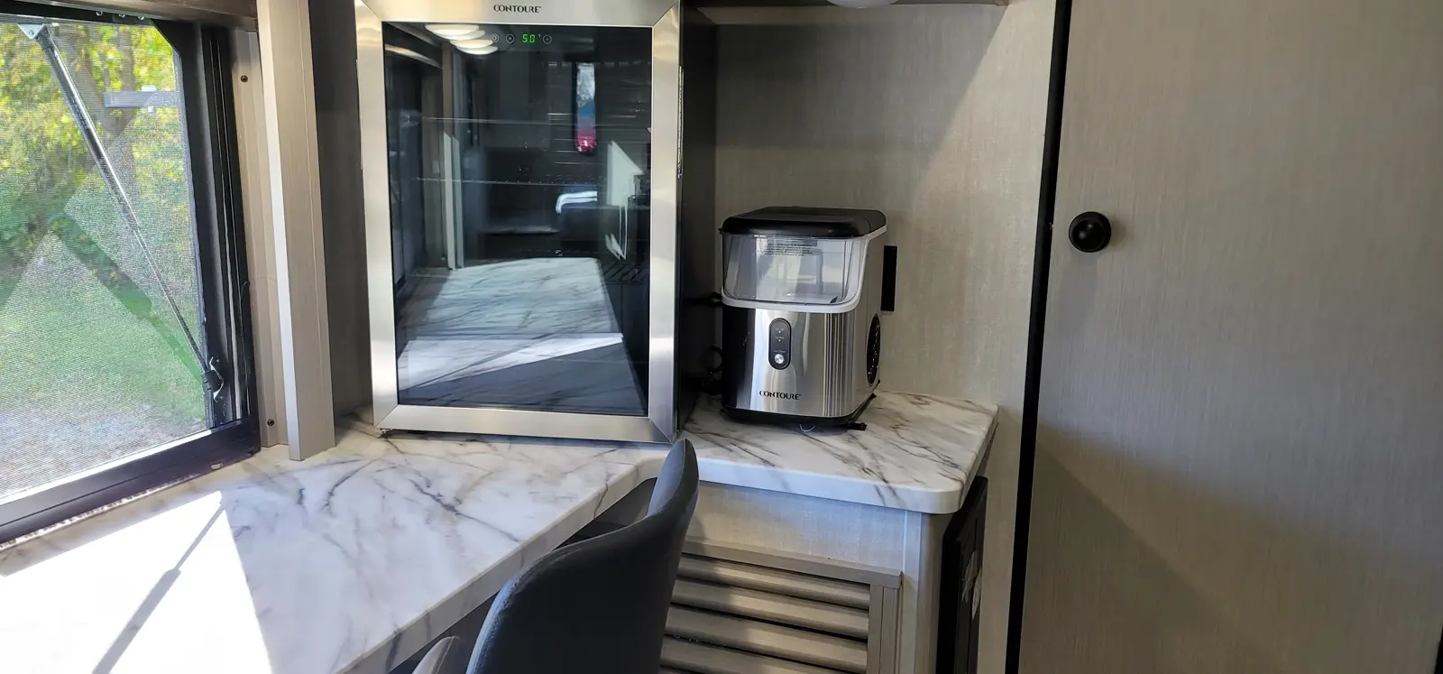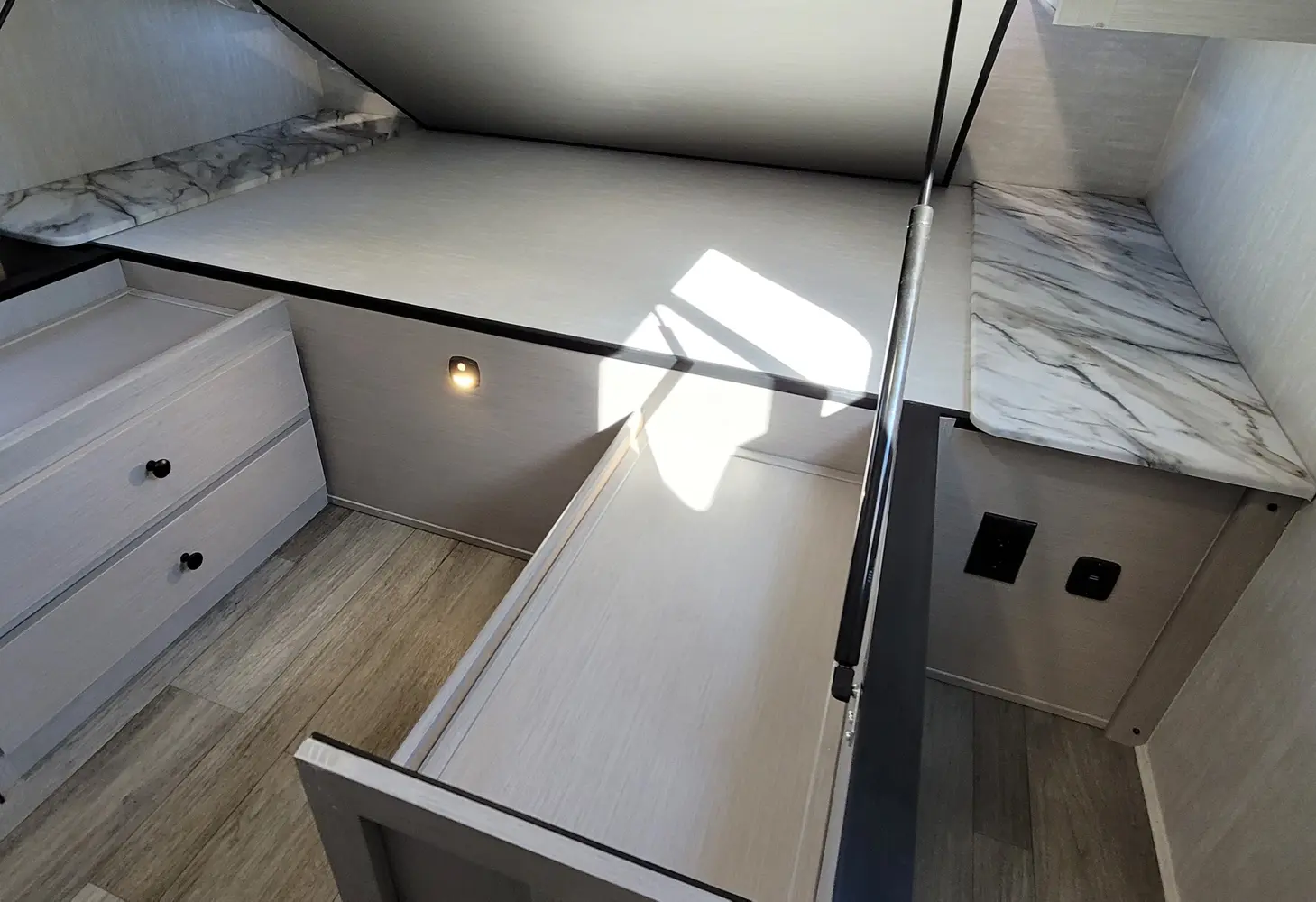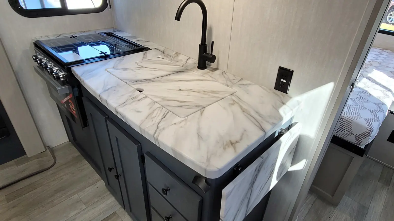 The Apex Ultra-Lite 242BARV floorplan has one entry and one slide out. Exterior features include: fiberglass exterior, 16' awning and outside kitchen. Interiors features include: front bedroom.