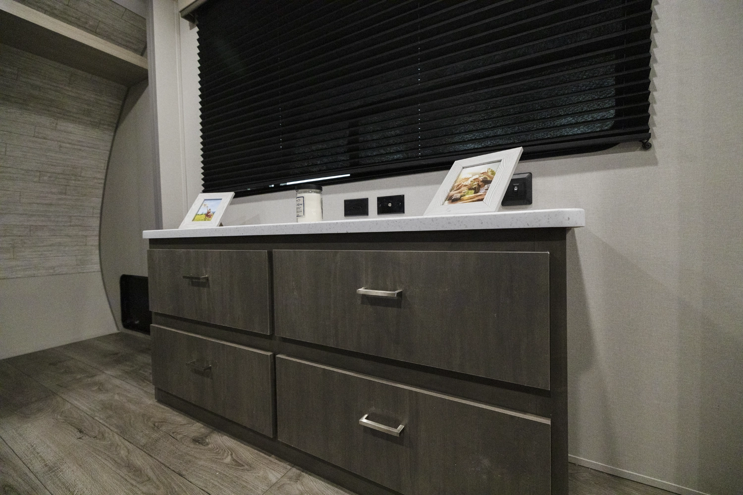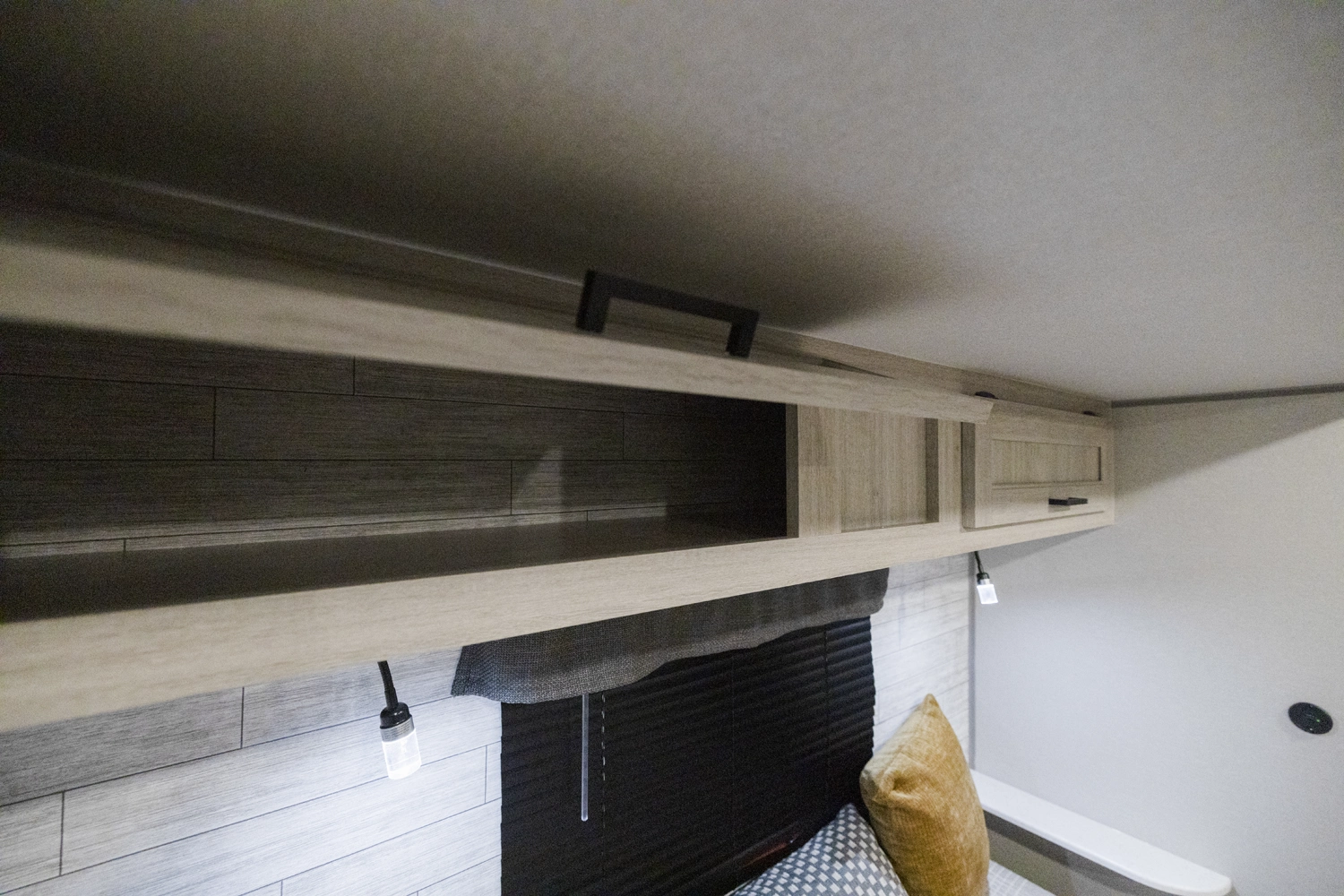 The 343BHTS is the premier bunk house floorplan on the market! Our versatile bunk room sleeps 5+ comfortably and includes an ent. center, storage and our unique COA cube futon. We designed the ultimate master suite with an enormous closet with full length hang rod and shelves, as well as an additional utility closet with everything you need to add washer/dryer. On the outside our standard large camp kitchen includes a griddle, dorm style refrigerator, sink, and storage cabinets and drawers.