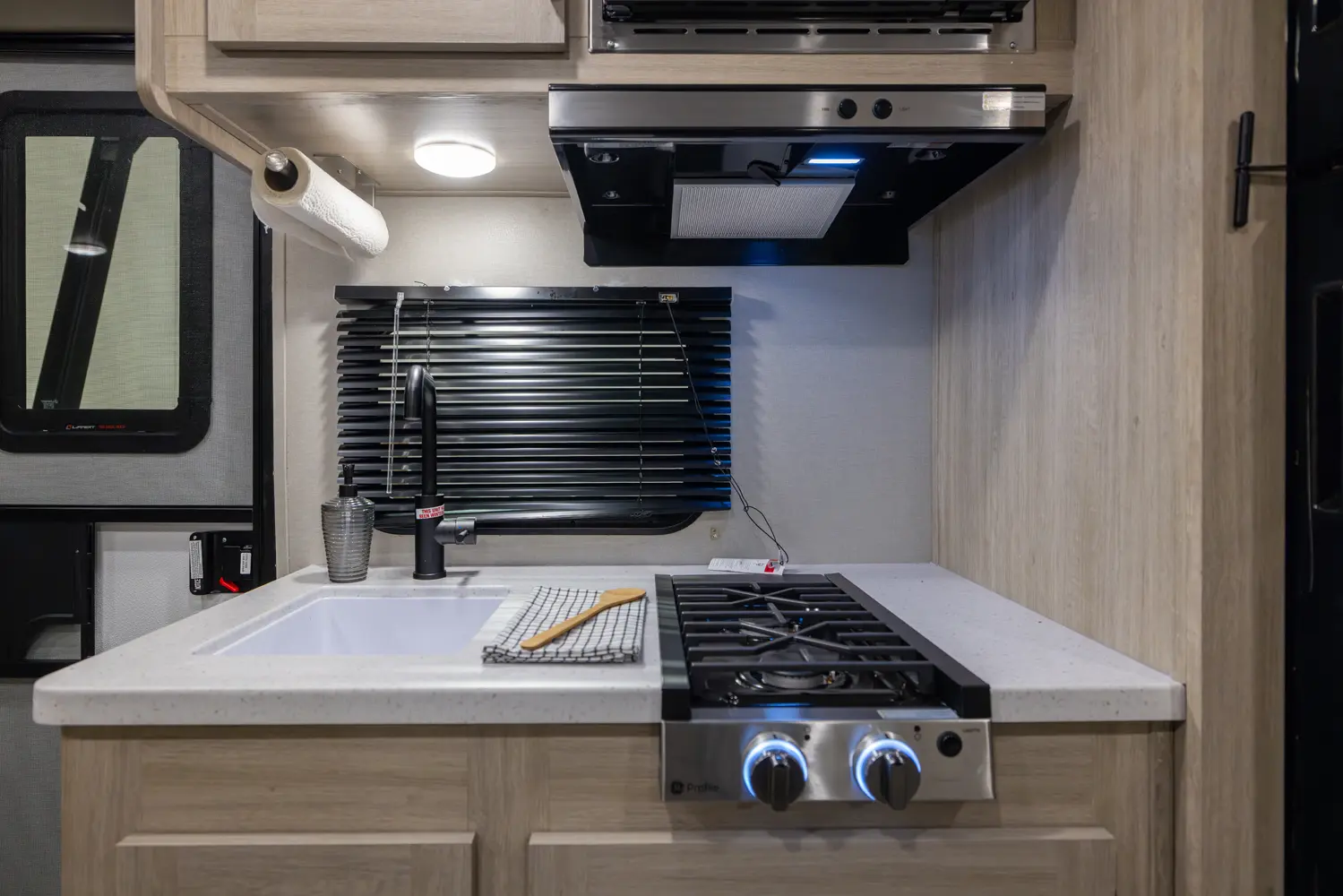 • GE Stainless 2-Burner Cooktop with Metal Back-Lit Knobs