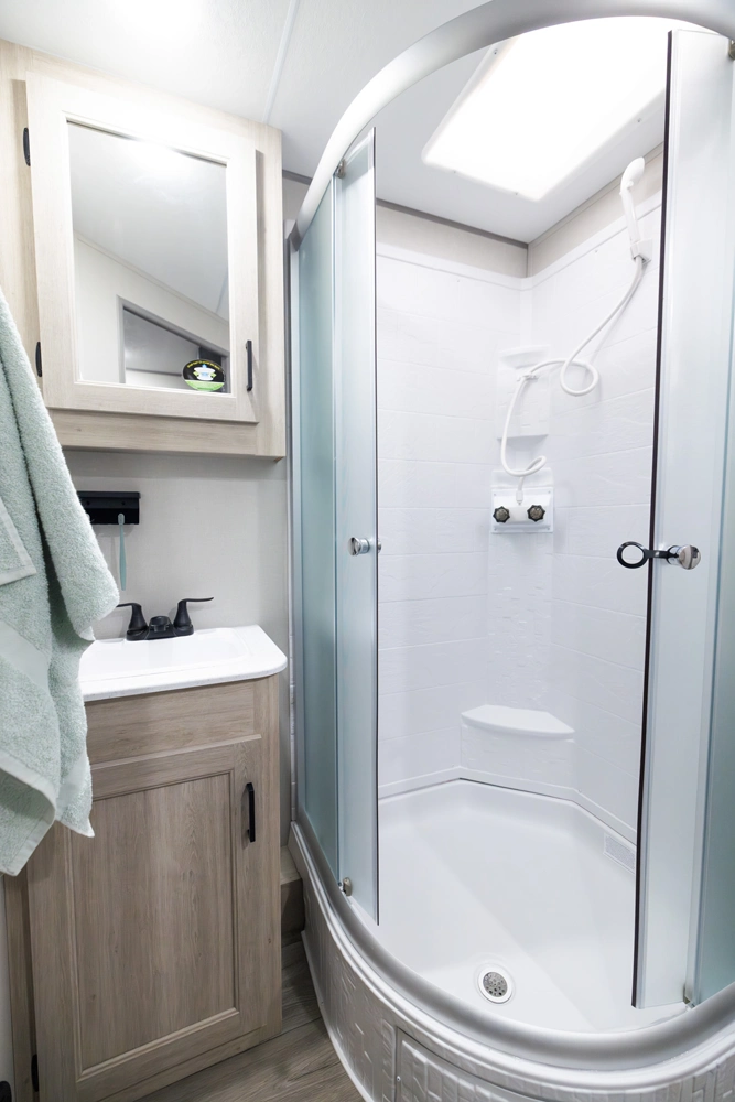 • Glass Step-In Shower w/ABS Surround (Per Floorplan)
