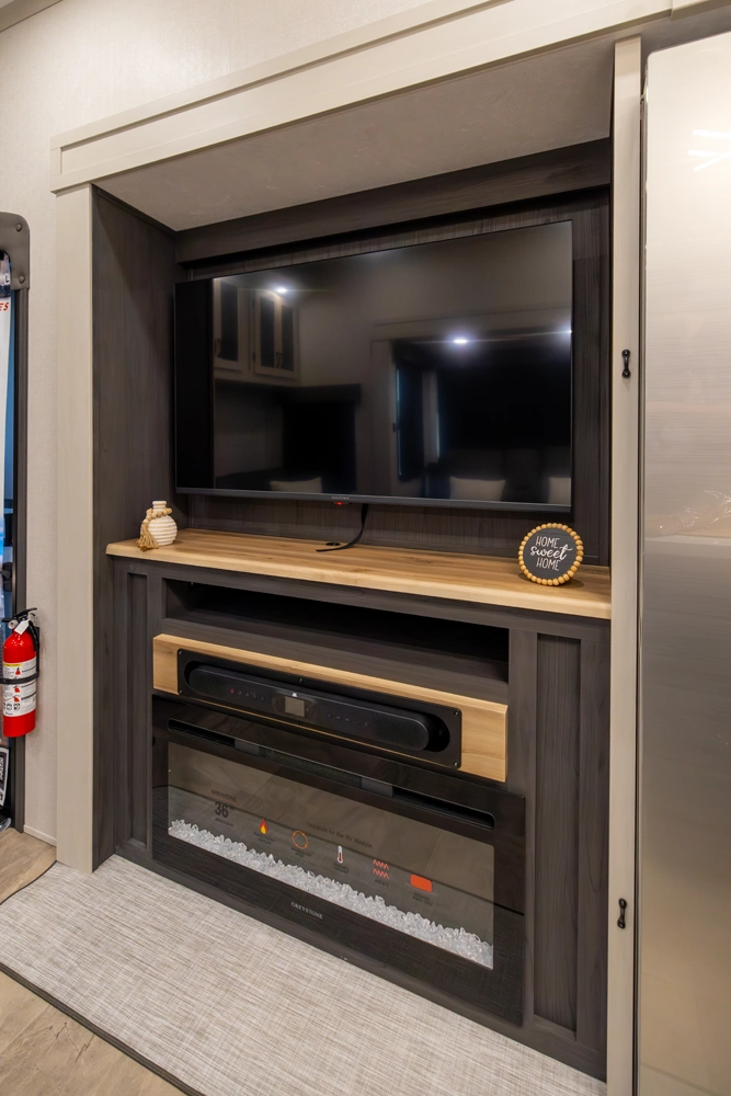 • Upgraded Carbon & Walnut Ent. Center W/ JBL® Soundbar Including AM/FM & Bluetooth®