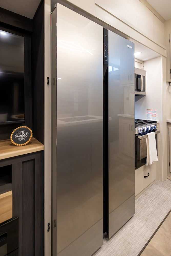 • 16 cu. ft. Side-By-Side Stainless Glass 12V Fridge W/ Smart Touch Functions* (10 cu. ft. Dual Swing 360IBL)