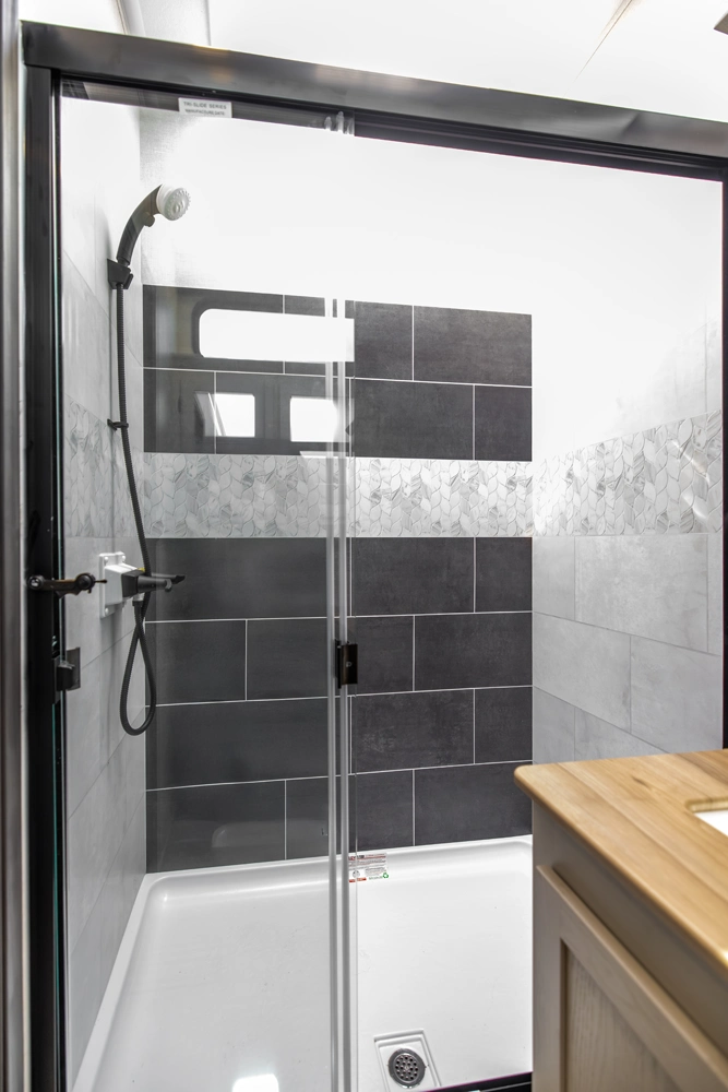 • Upgraded (Exclusive) Two-Tone Tear Drop Accented Modern Tile Shower Surround* (N/A 367BH/373MBRB)