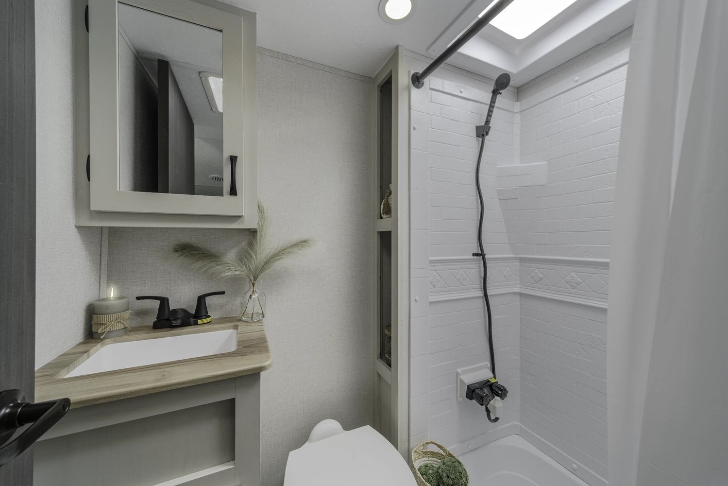 • Upgraded Marine-Style Convenience Center W/ Black Tank Flush, Hot/Cold Shower