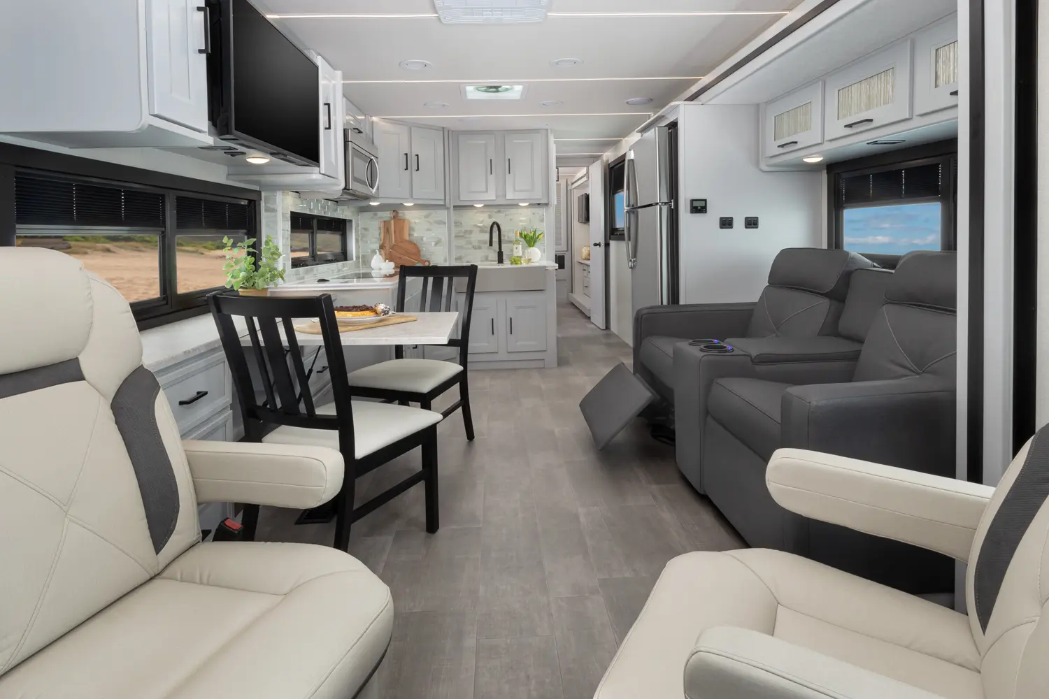 The Sportscoach SRS Class A Motorhome is engineered for travelers who demand power, space, and sophistication. Its diesel pusher design provides a smooth, confident drive, while spacious floor plans accommodate all your adventure needs. Upscale interiors feature high-quality finishes, modern fixtures, and appliances that support both convenience and comfort. The SRS blends performance, style, and practicality to deliver a luxurious travel experience that turns every campsite into a base for exploration, from mountains and lakes to long-distance highway journeys.