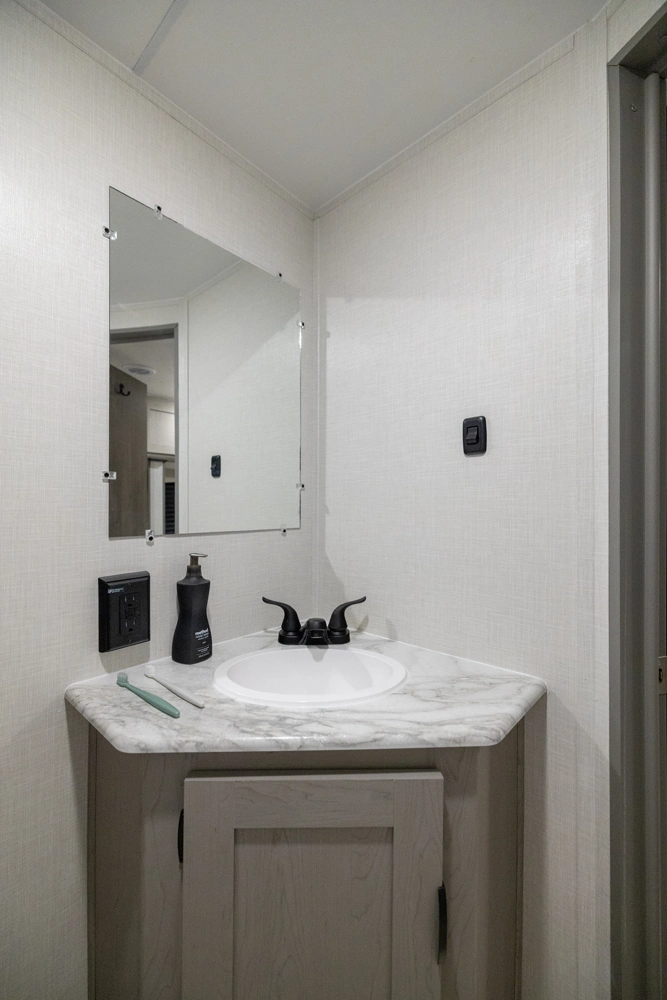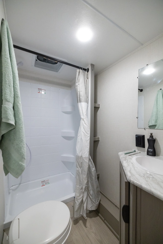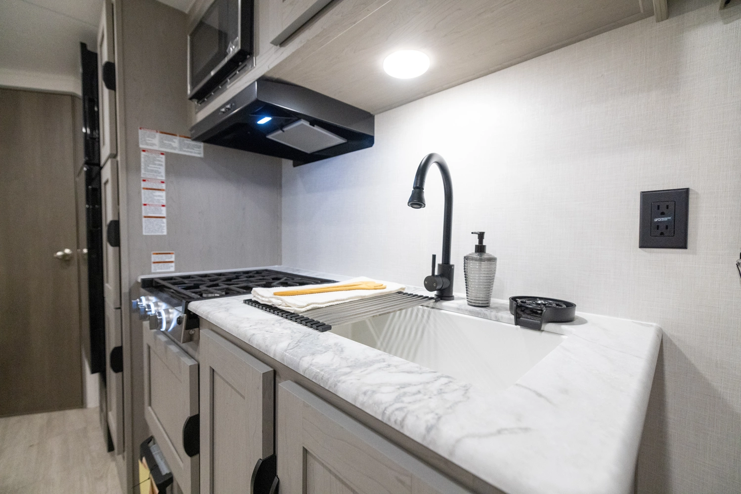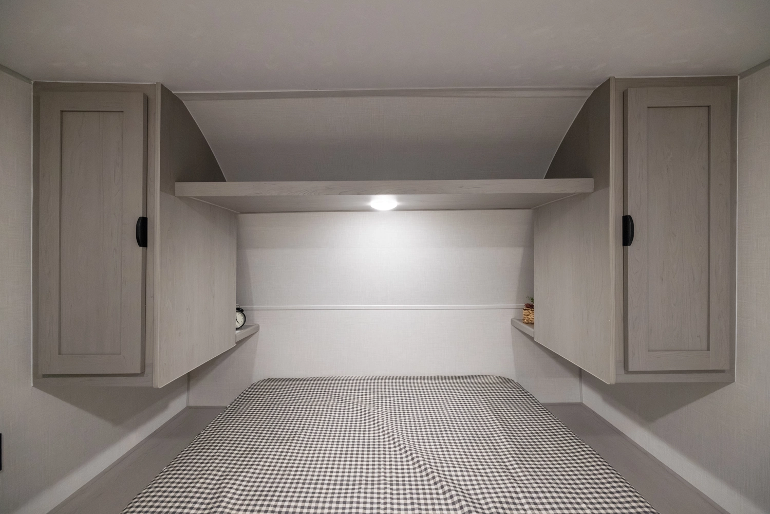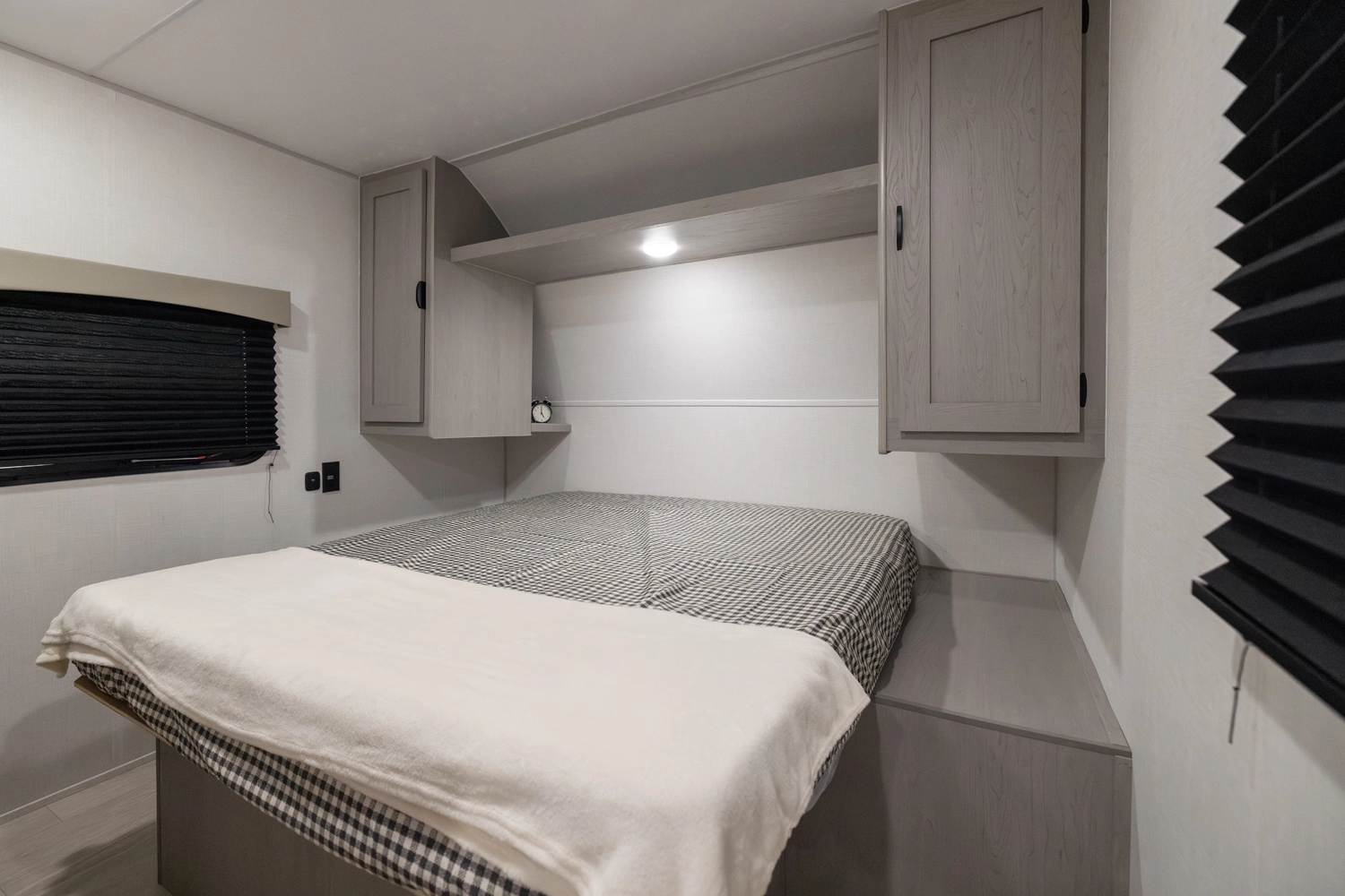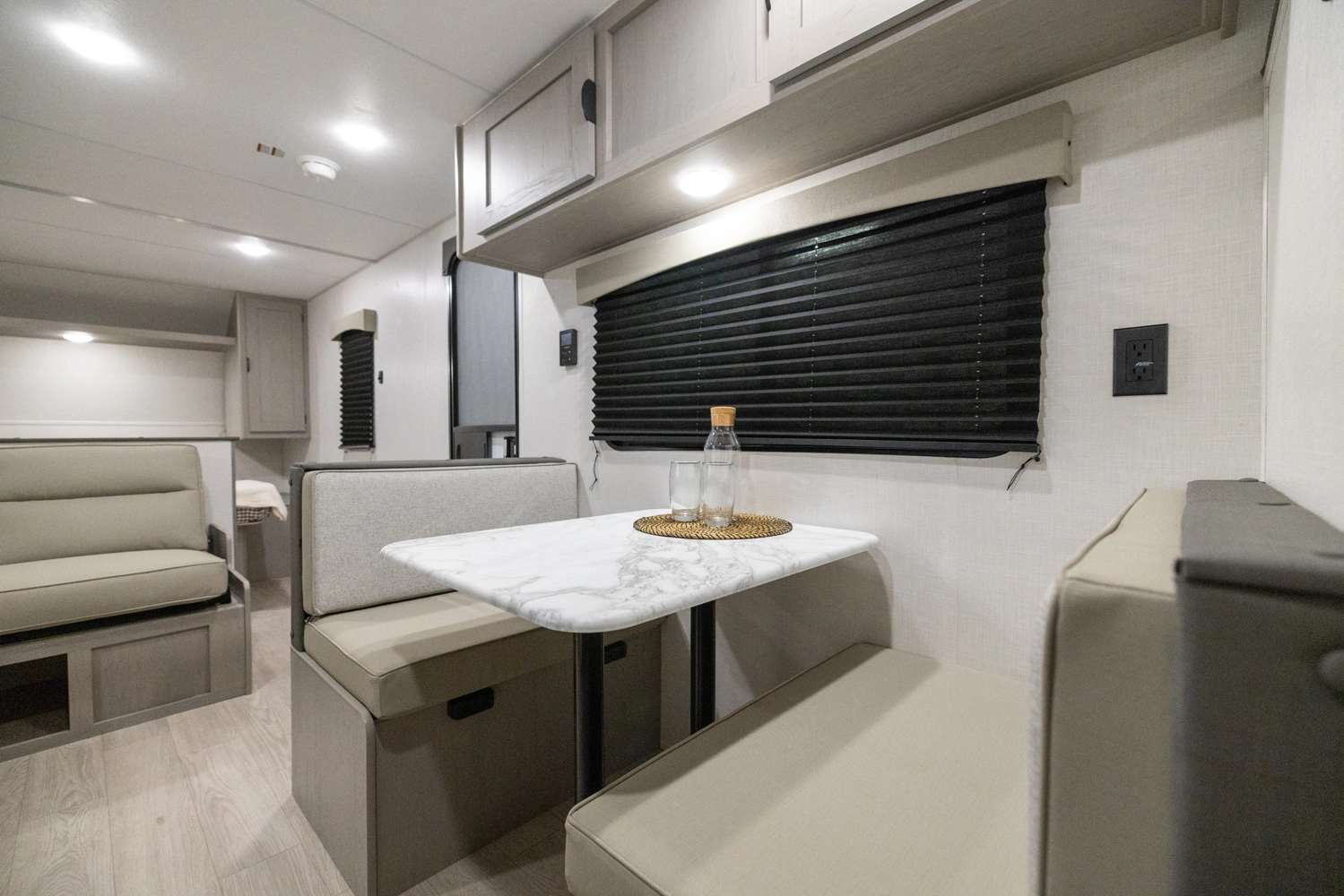 This is a relaunch of the industry’s top selling non-slide bunk house floorplan. The 26BH features an open-space concept. It features double-over-double bunks, full pantry, large bathroom with added storage and an interior bathroom sink, 4-person dinette, prepped for an outside kitchen, and a jack-knife sofa with side-overhead cabinets. This trailer is built for a family with more than two kids that wants more interior living space and comfort. #CampEasy