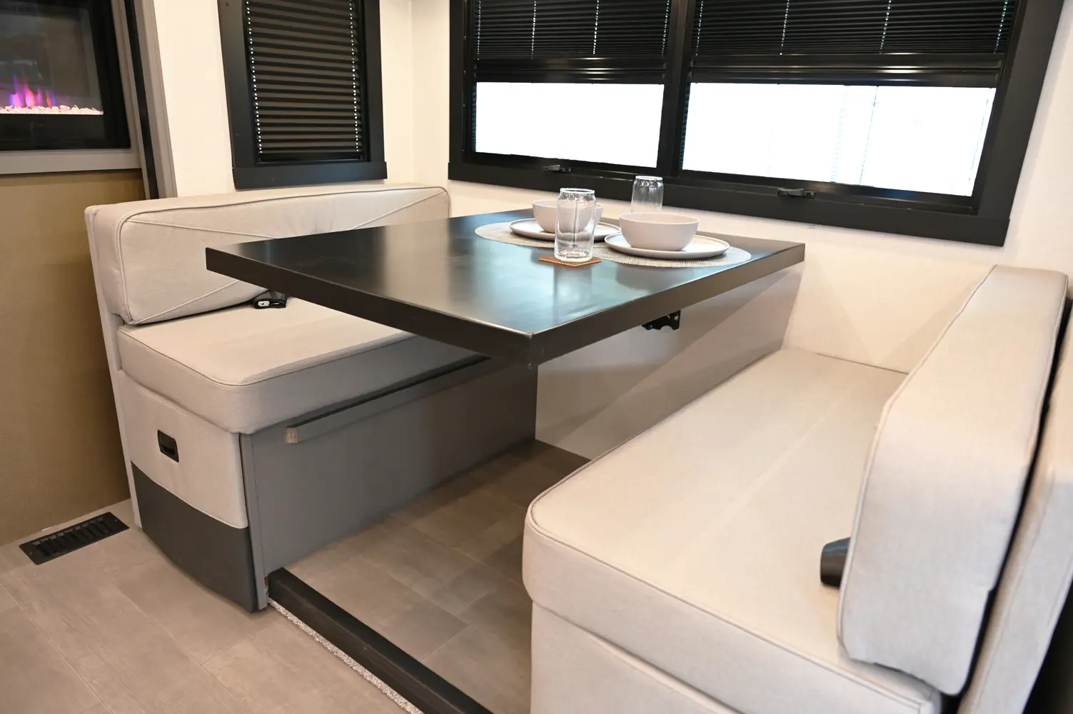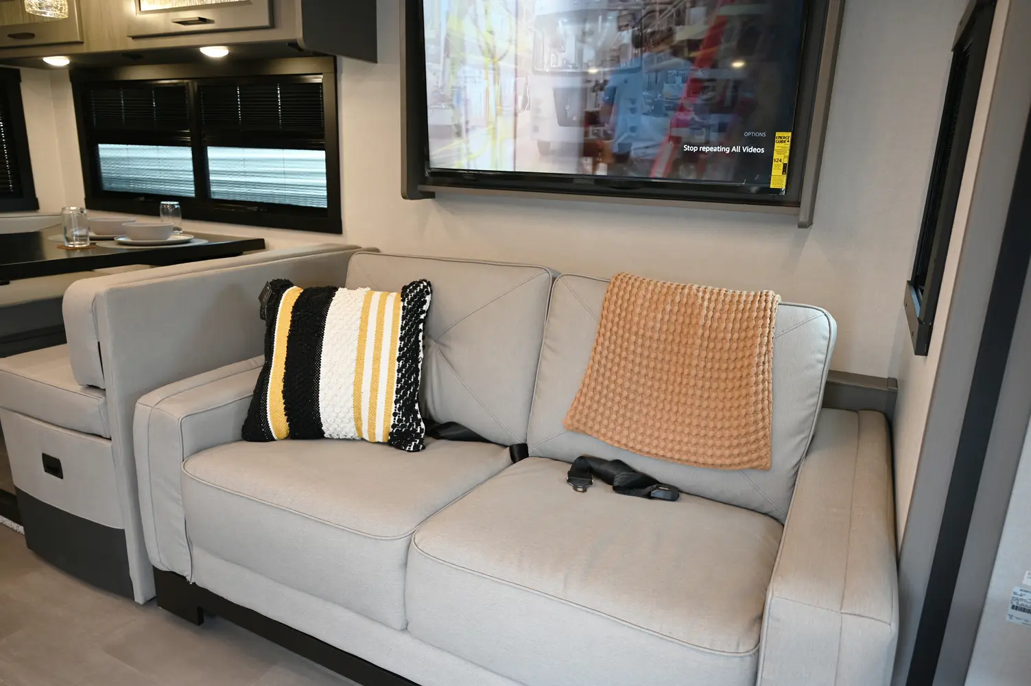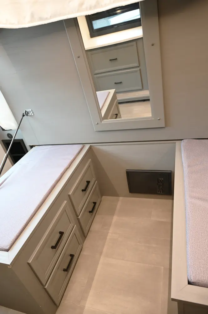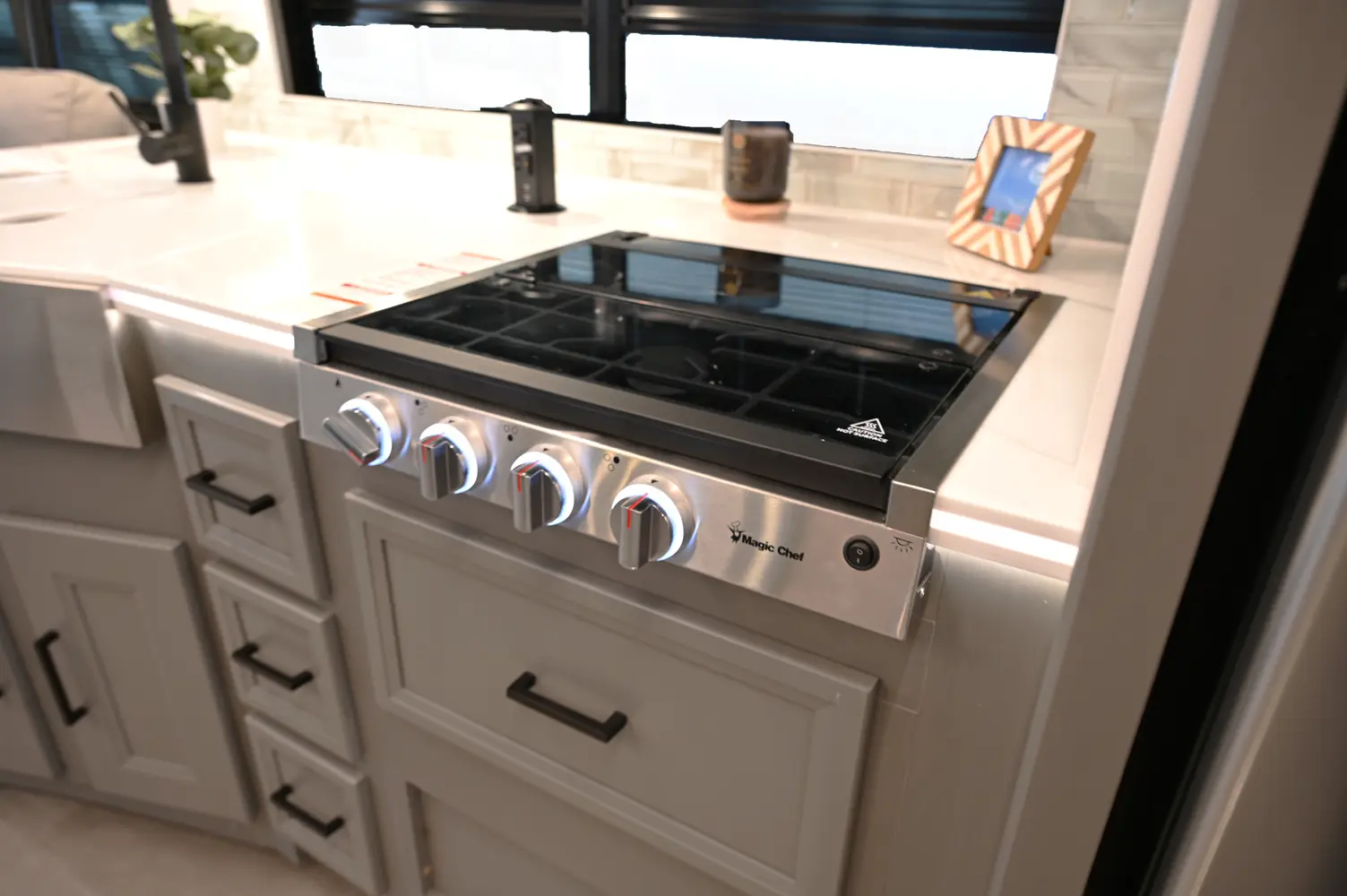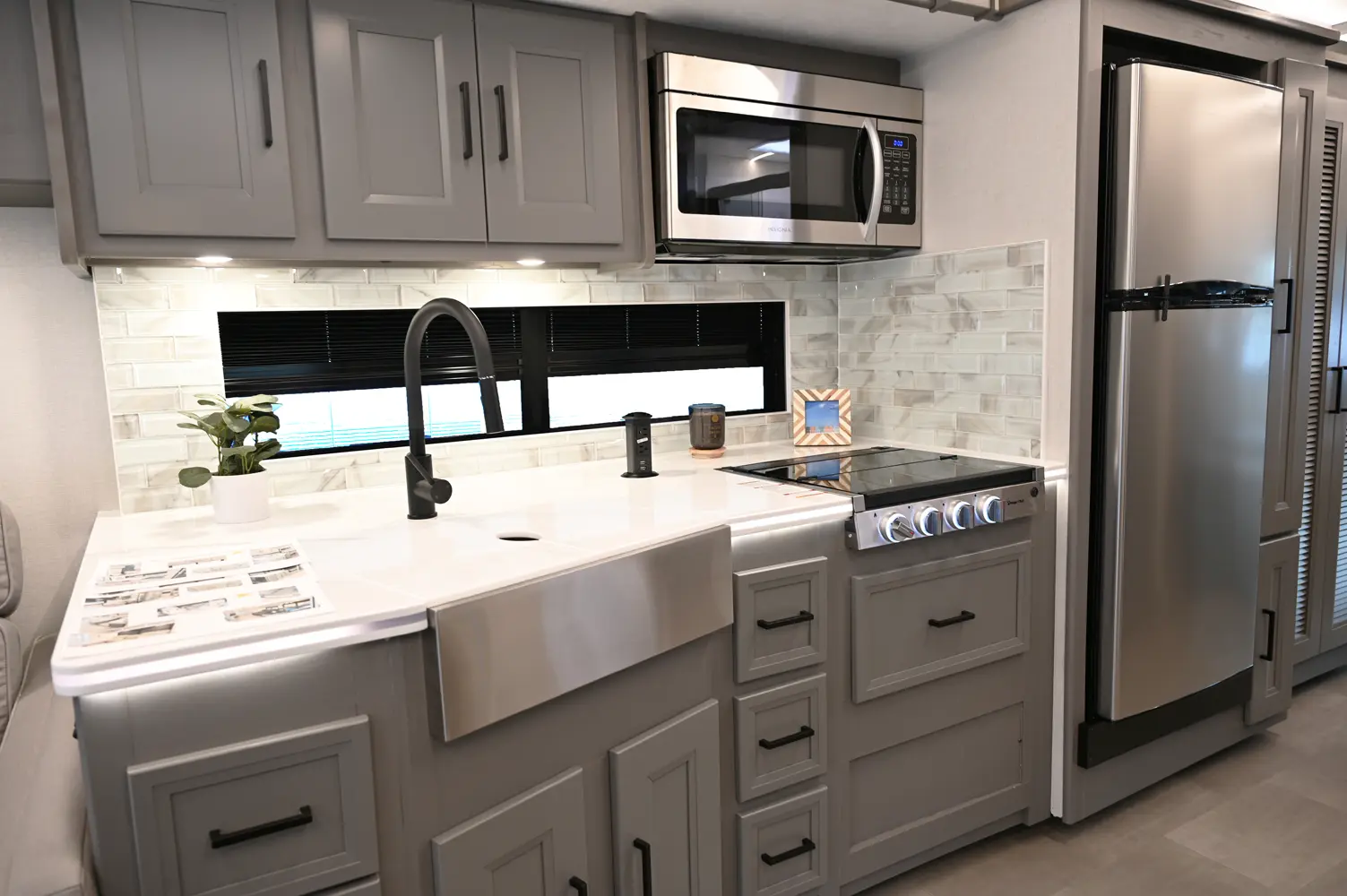 The Encore 355DS offers a double-slide design and a spacious living area that feels open and comfortable. This 36-foot motorhome makes relaxing after a day of hiking or kayaking easy, with premium finishes, kitchen amenities, and sleeping space for your crew. With its 350 hp engine and strong build, it’s a luxurious and capable companion for extended road journeys.