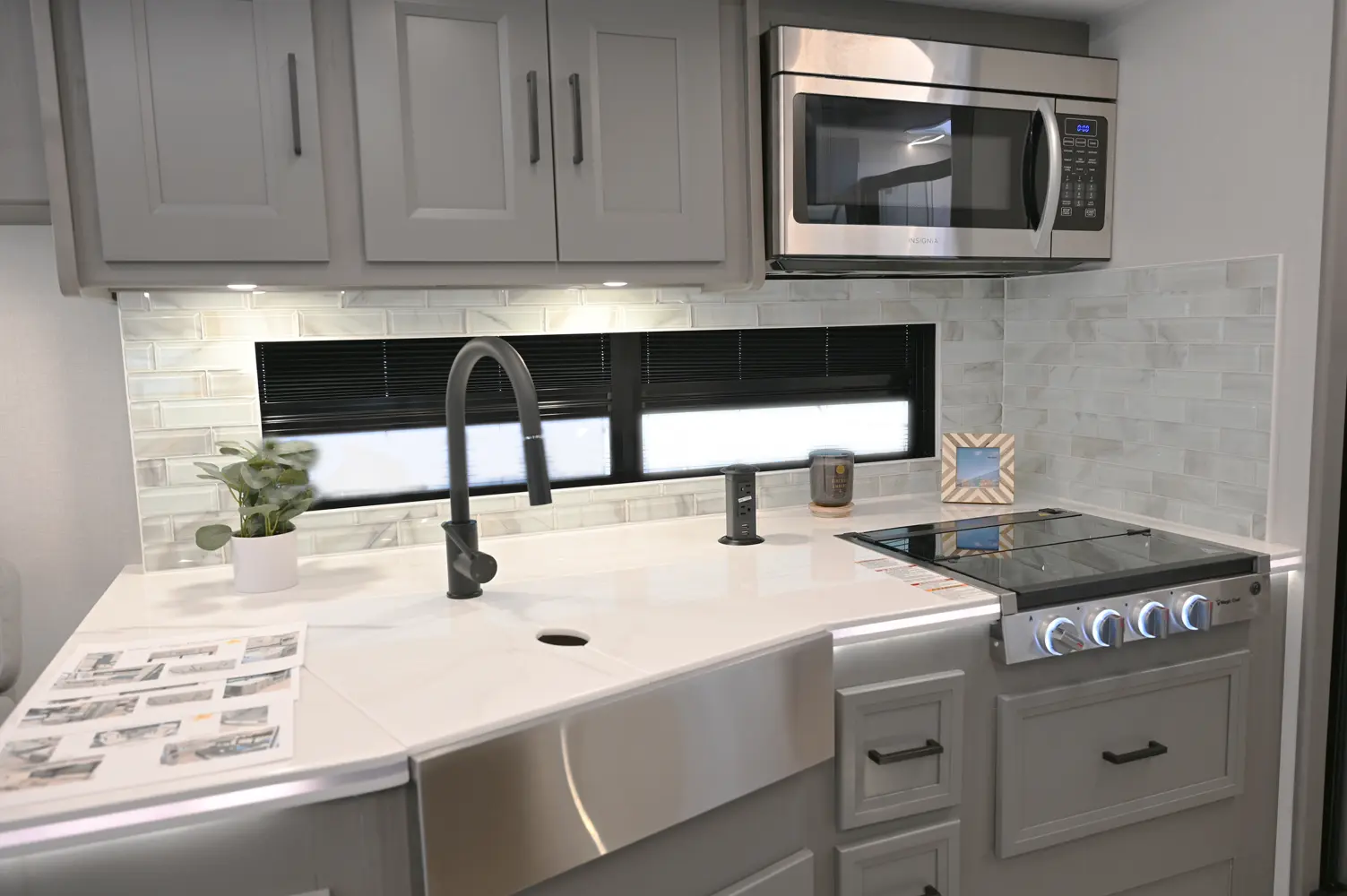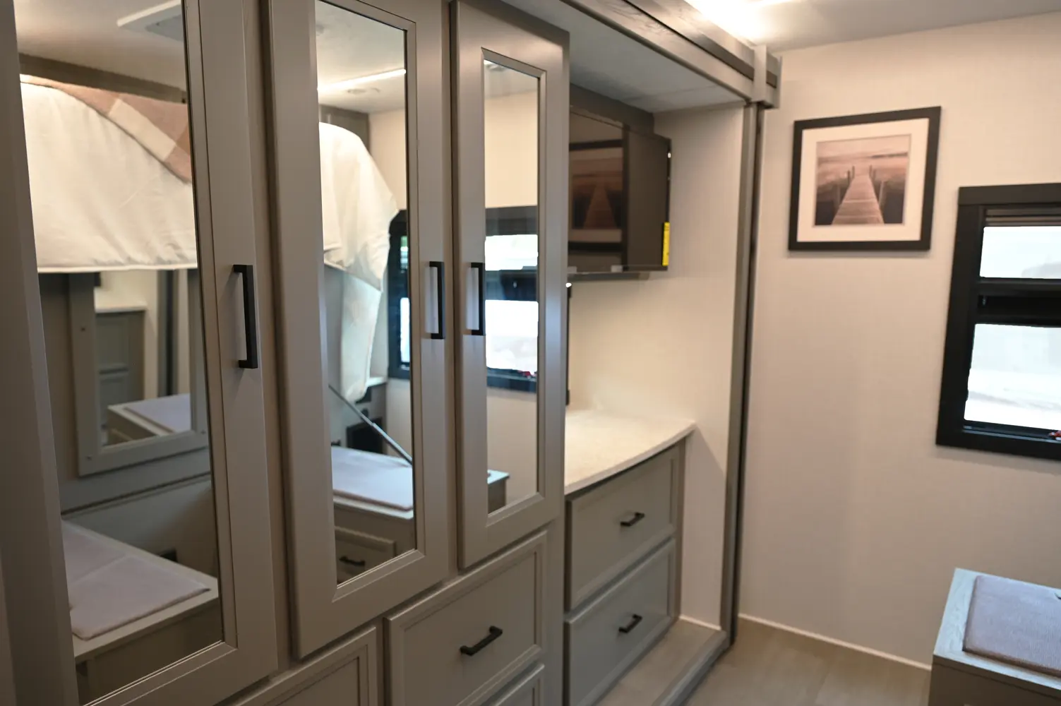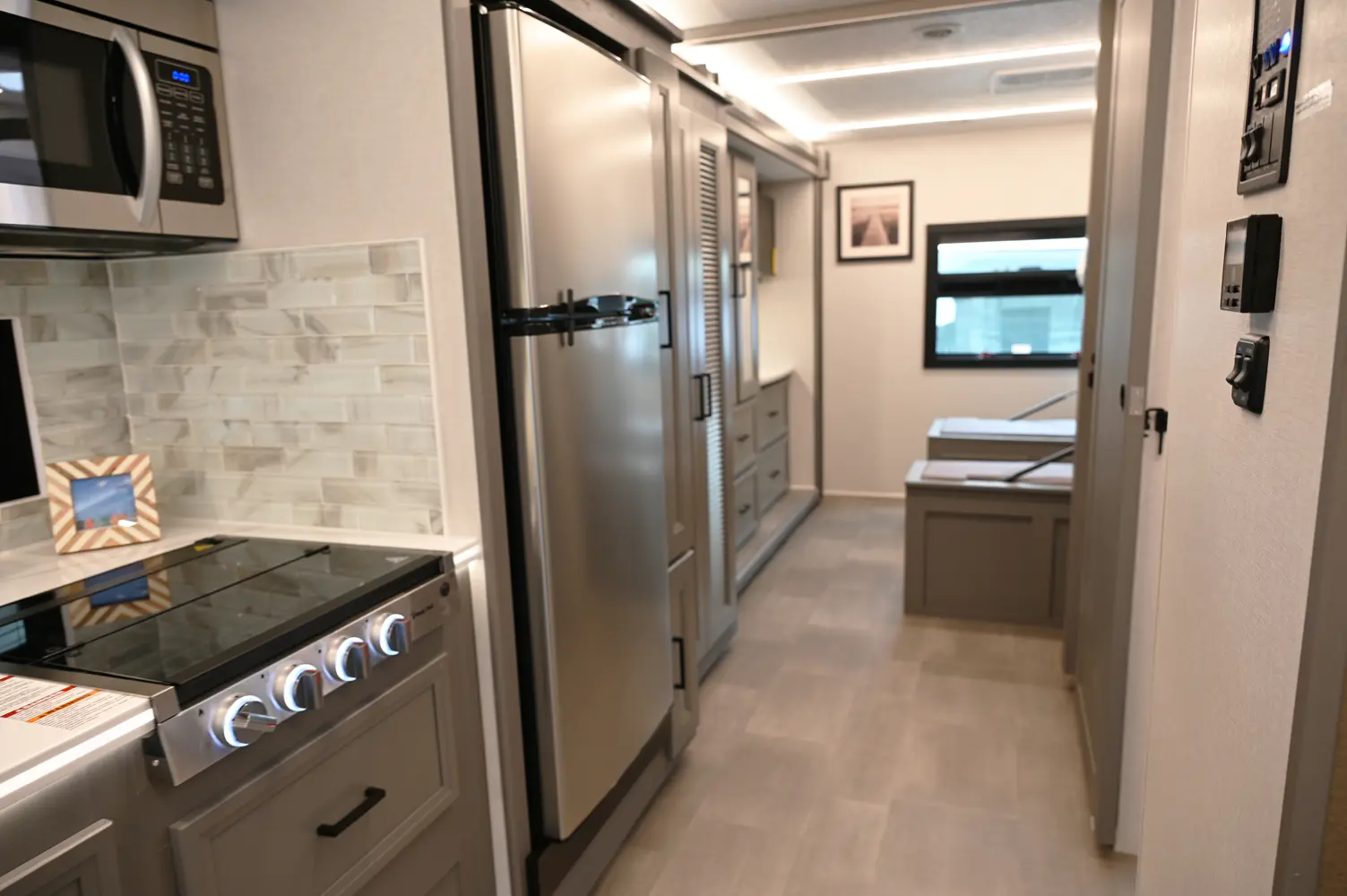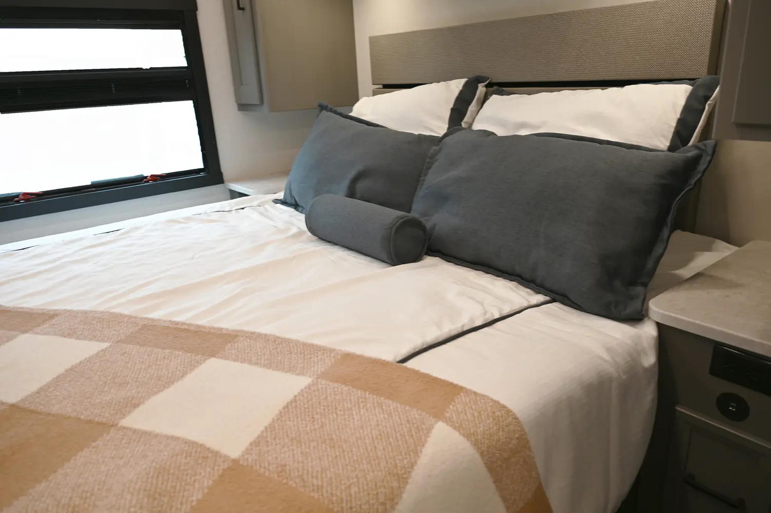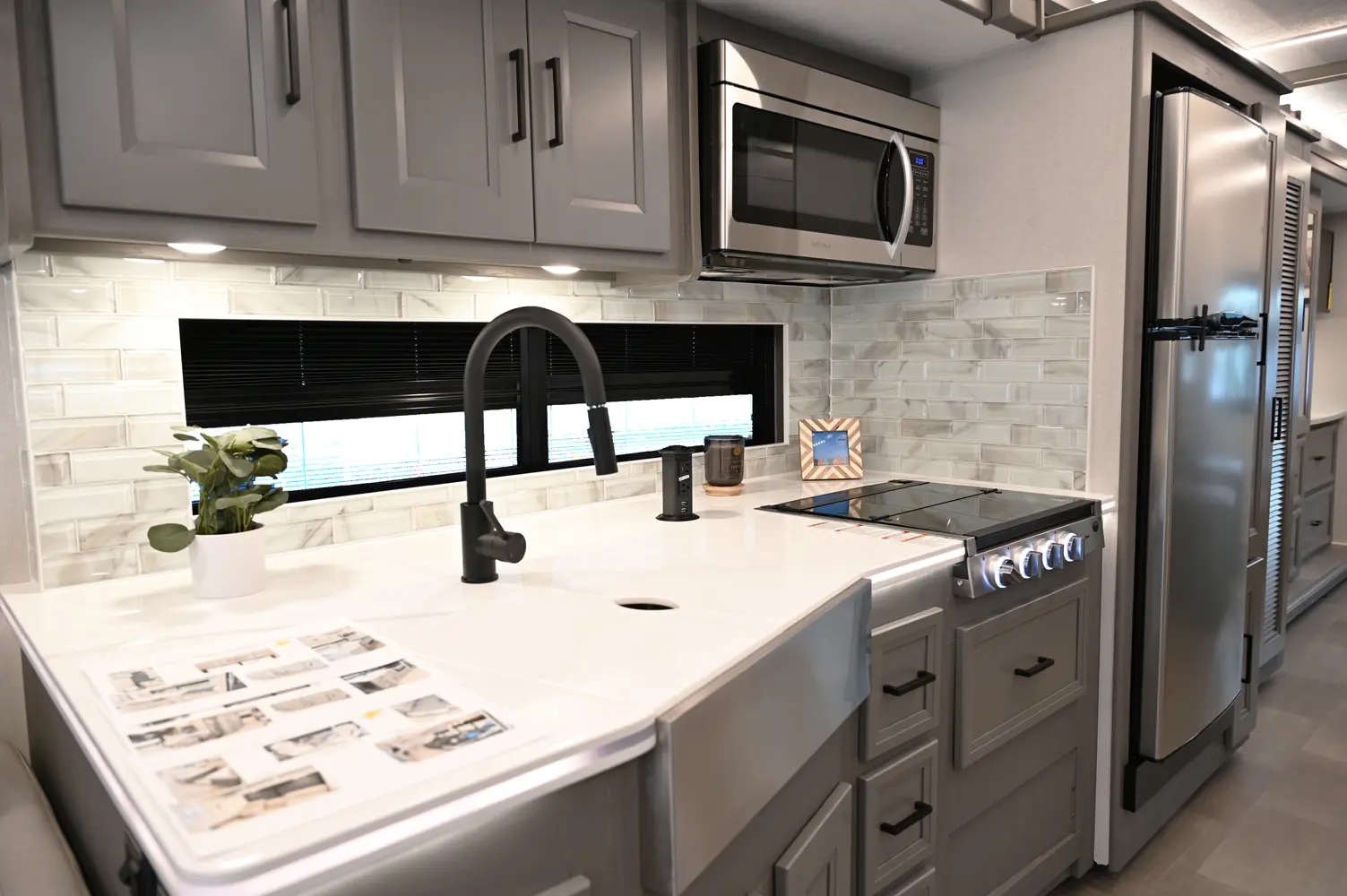 The Encore 355DS offers a double-slide design and a spacious living area that feels open and comfortable. This 36-foot motorhome makes relaxing after a day of hiking or kayaking easy, with premium finishes, kitchen amenities, and sleeping space for your crew. With its 350 hp engine and strong build, it’s a luxurious and capable companion for extended road journeys.