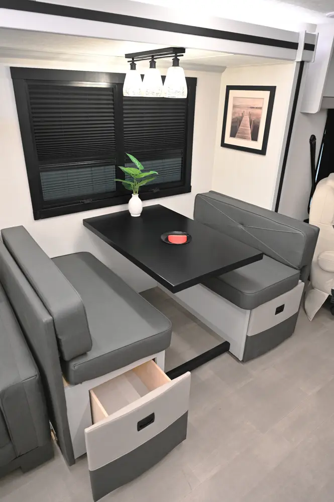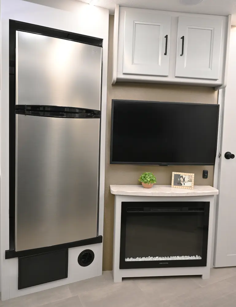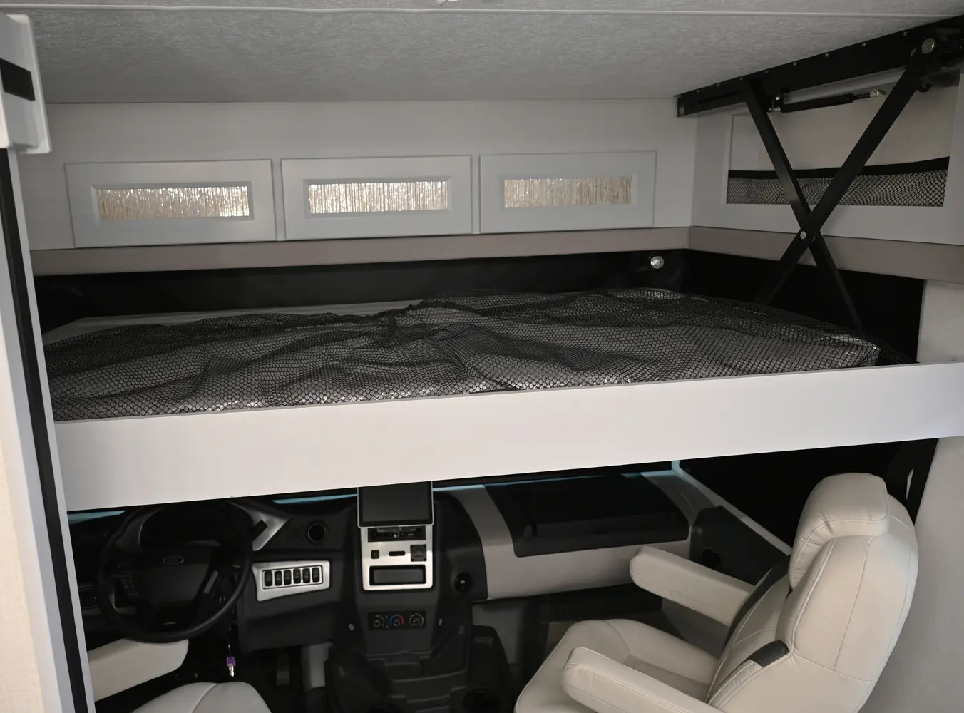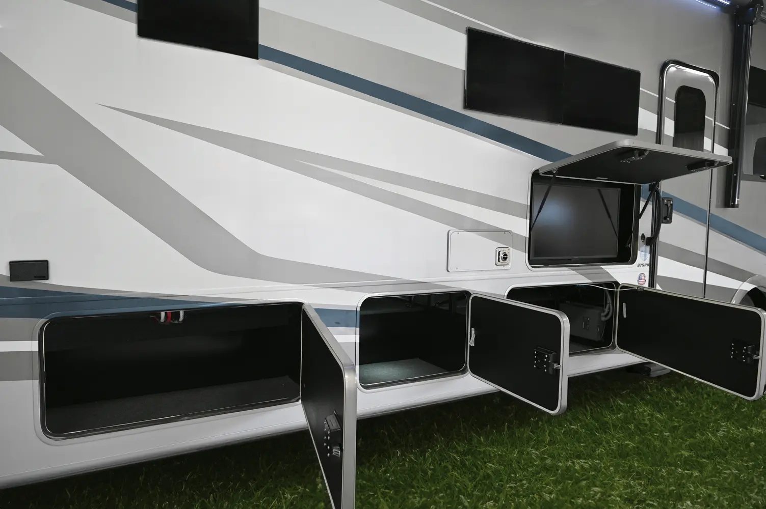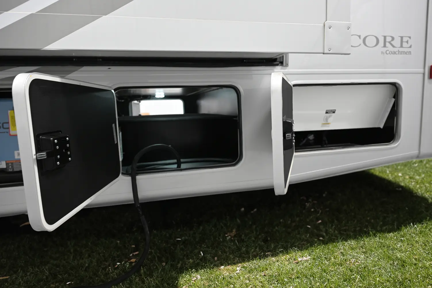 The Encore 375RB is a roomier 38-foot floor plan that gives you a private rear bedroom, generous storage, and a front lounge area. Its layout is ideal for longer trips, offering space to unwind after outdoor adventures like trail hikes, lakeside camping, or national park excursions. The powerful gas engine and high-capacity tanks make extended travel smooth and stress-free.