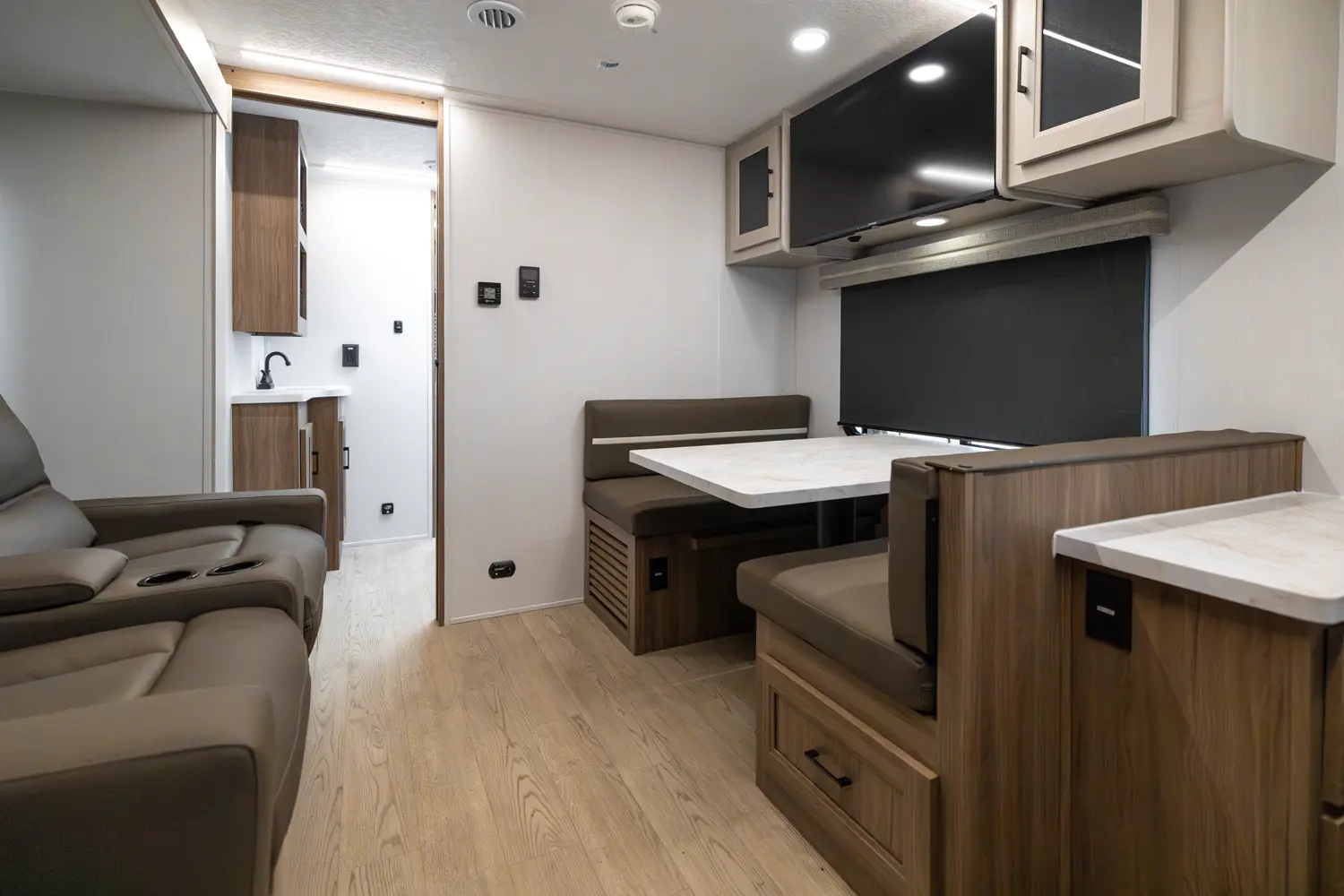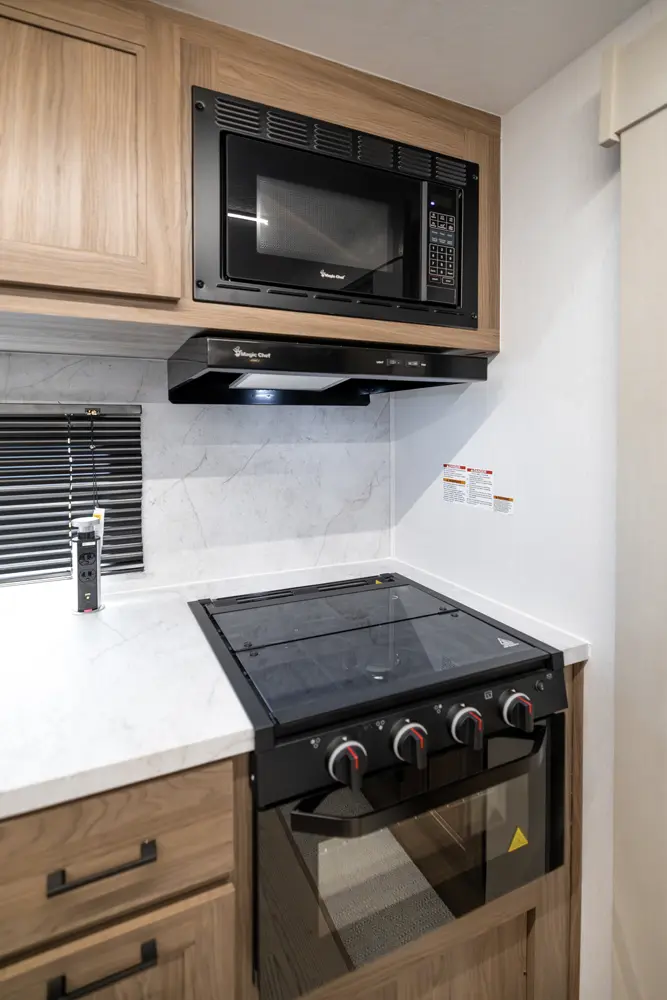 The 245RKS brings a rear kitchen and smart living space to your outdoor getaway. At 28' 5", it supports travelers who want both gear and comfort. Solar ready, a pass-through storage area, and rugged underbelly protection, you can camp off-grid and still cook, dine, and unwind in style.