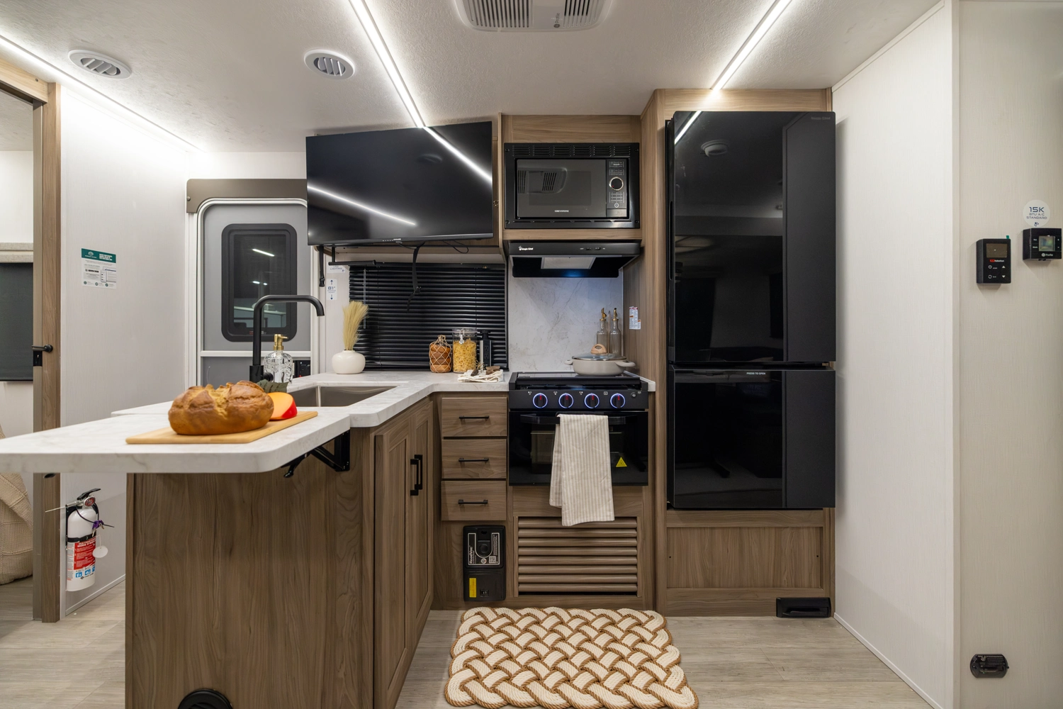 This model brings a roomy 33' layout, bunk beds, dual slides, and versatile living areas for active families. With rugged frame design and systems that support off-grid use, the 292BHDS is built to take you from the trailhead to the lake—and back again in comfort.