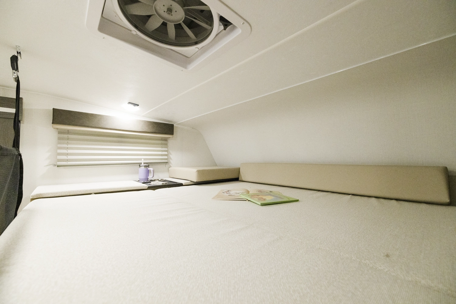 • Large 57 x 80" Cab-Over Sleeping Area with Cup Holders & Storage (800 lb. Capacity)