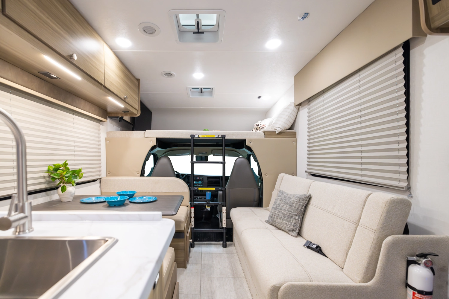 • Large Cab Over Bunk - 57" X 95" with Storage, Cup Holders and USB ports