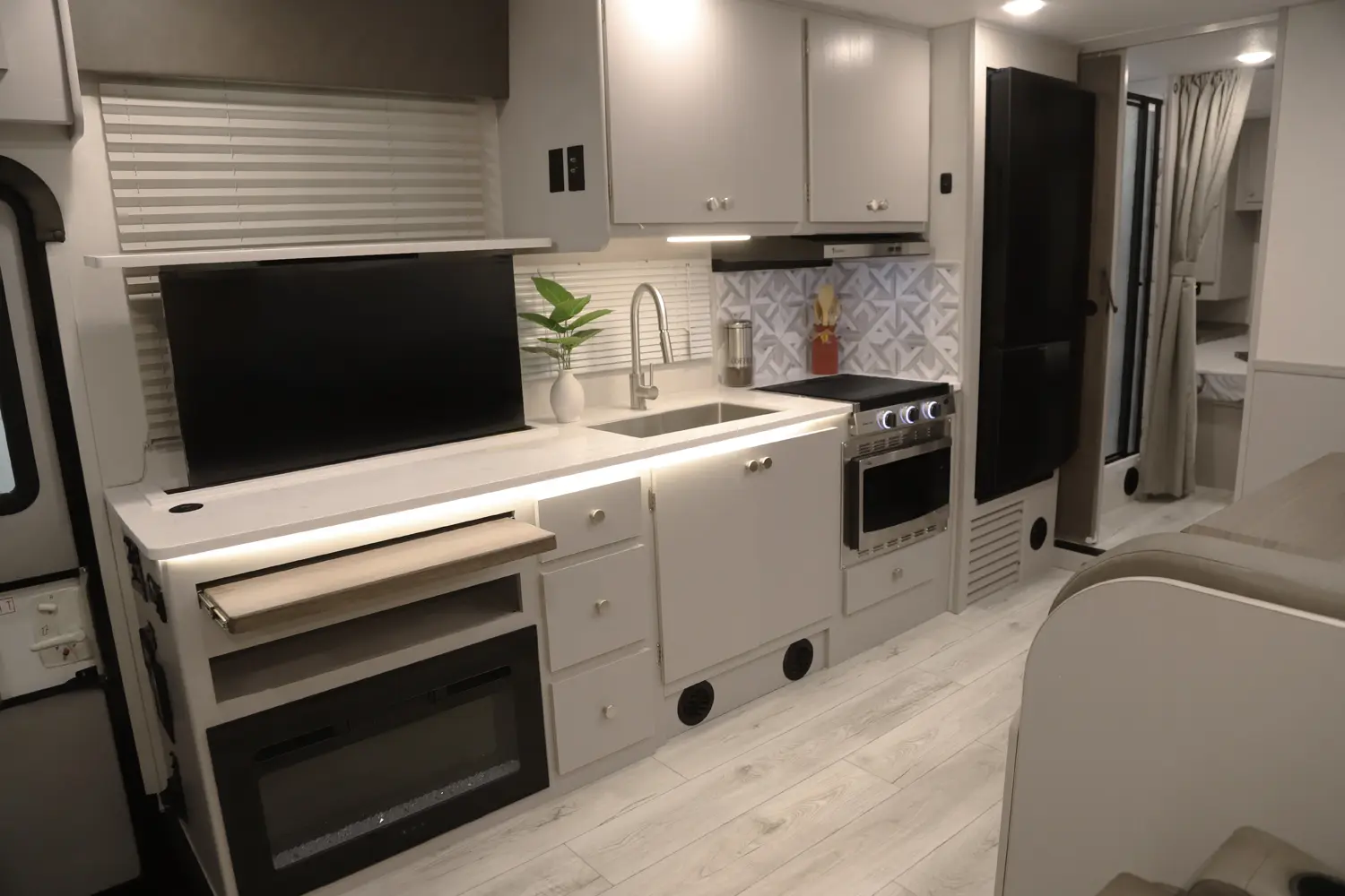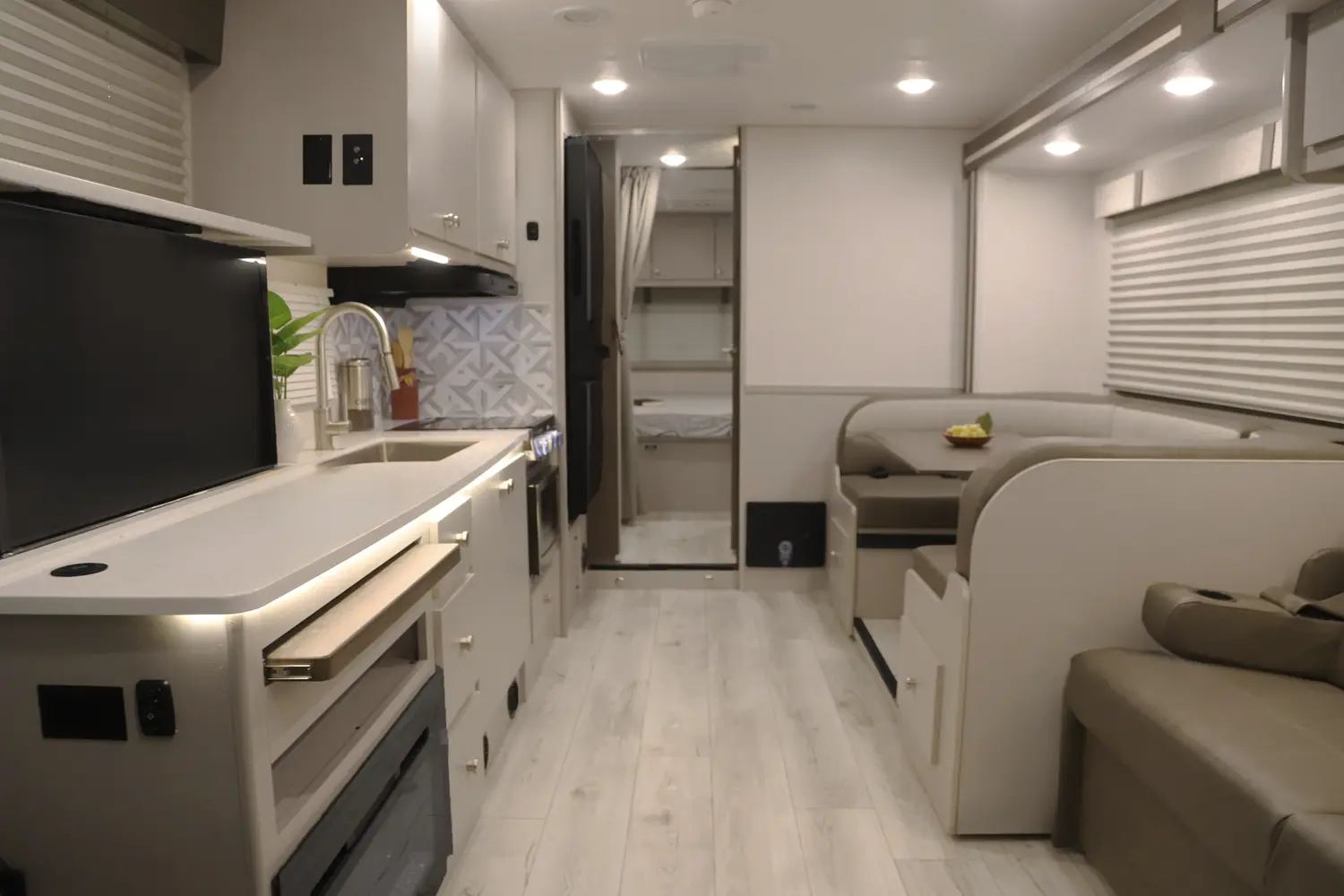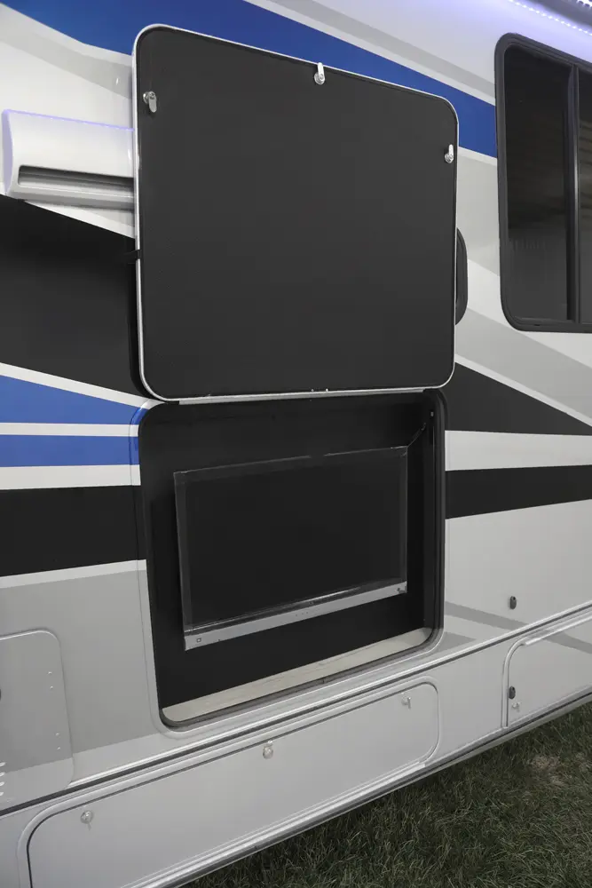 The Freelander 31MB - Ford E-450 has one entry and two slide outs. Exterior features include: 21' awning and outside kitchen. Interiors features include: rear bedroom, bunk over cab and u-dinette.