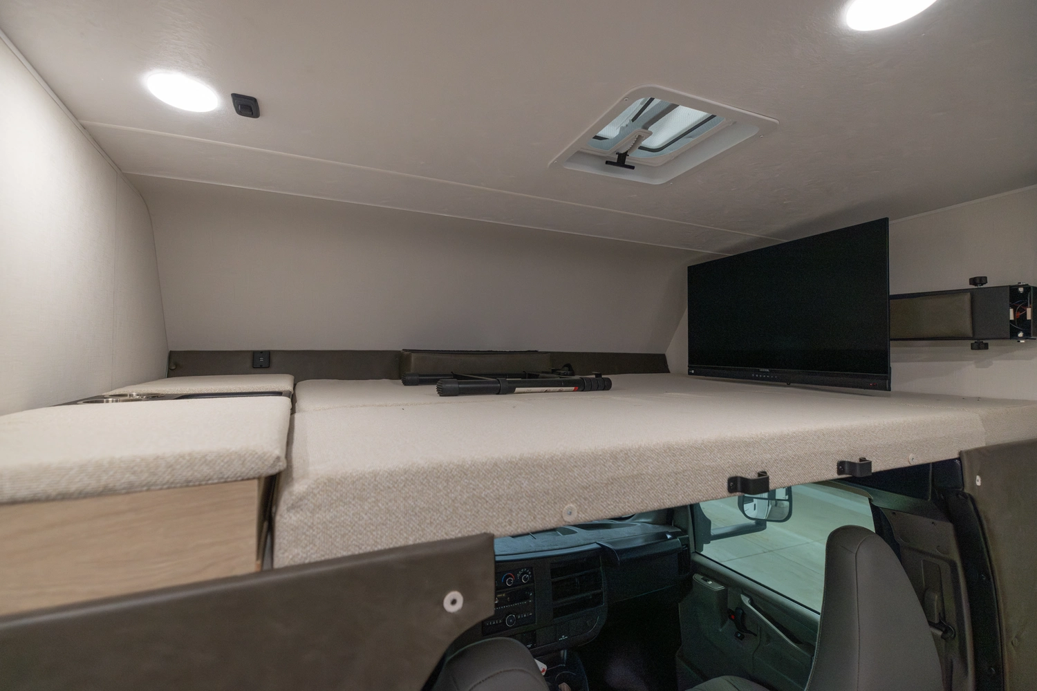 • Large 57 x 80" Cab-Over Sleeping Area with Cup Holders & Storage (800 lb. Capacity)