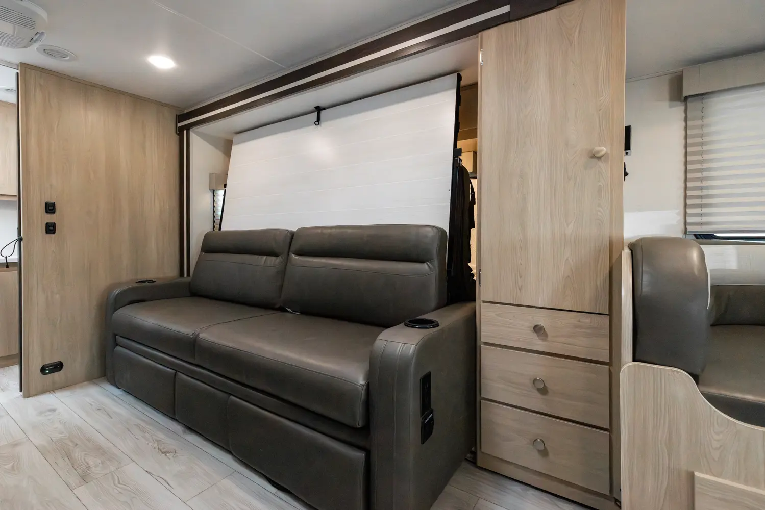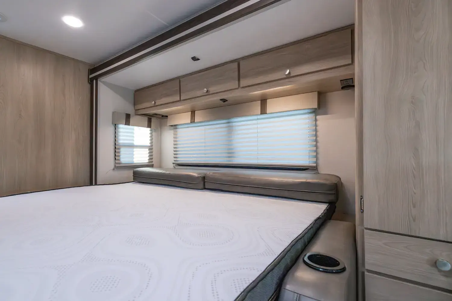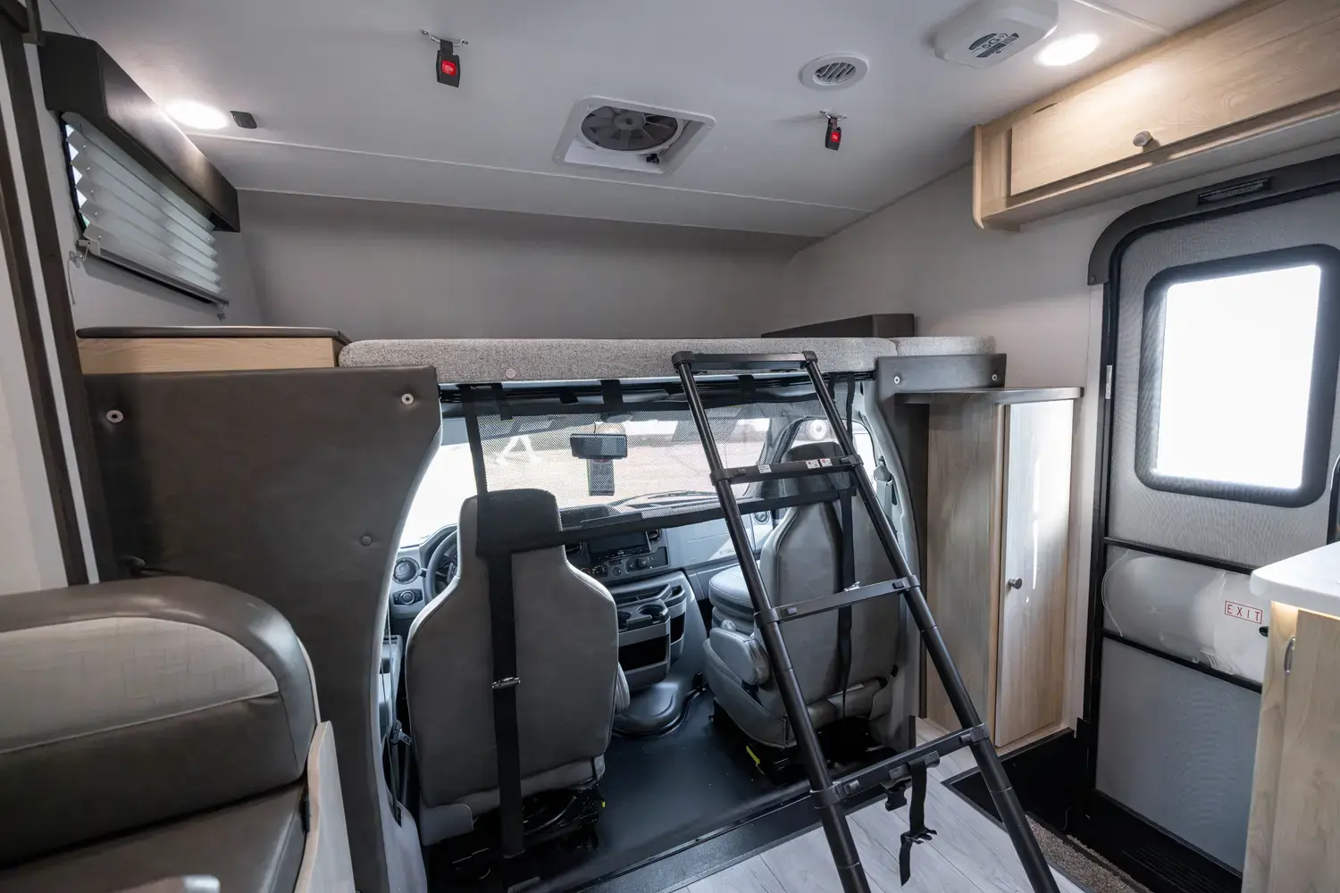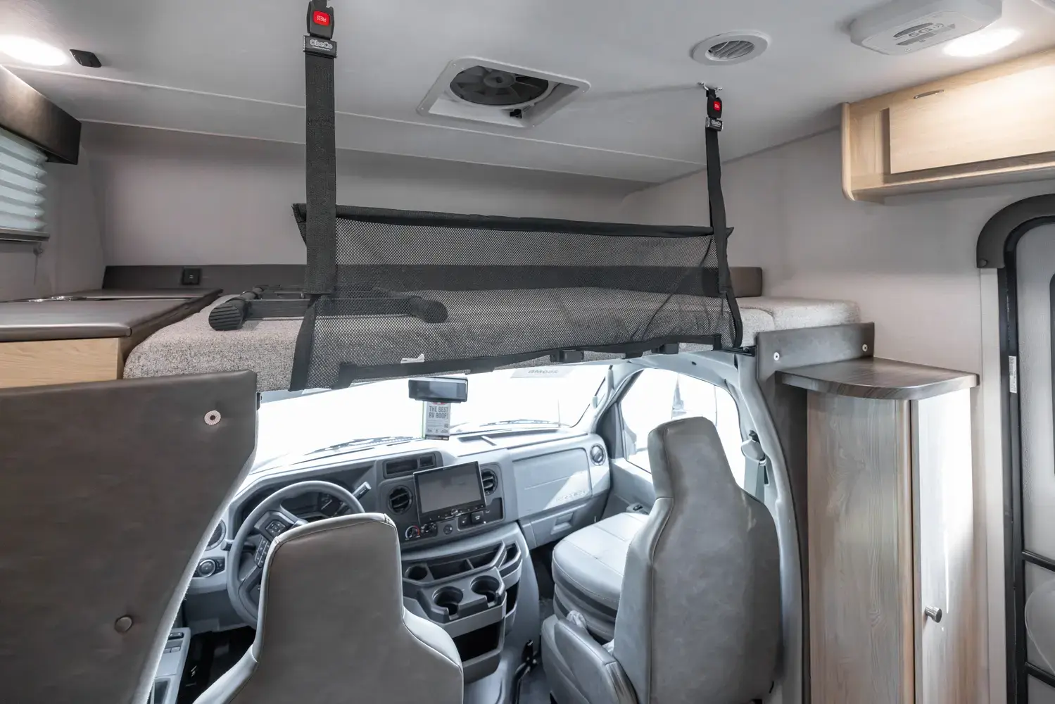 • Large Cab Over Bunk - 57" X 95" with Storage, Cup Holders and USB ports