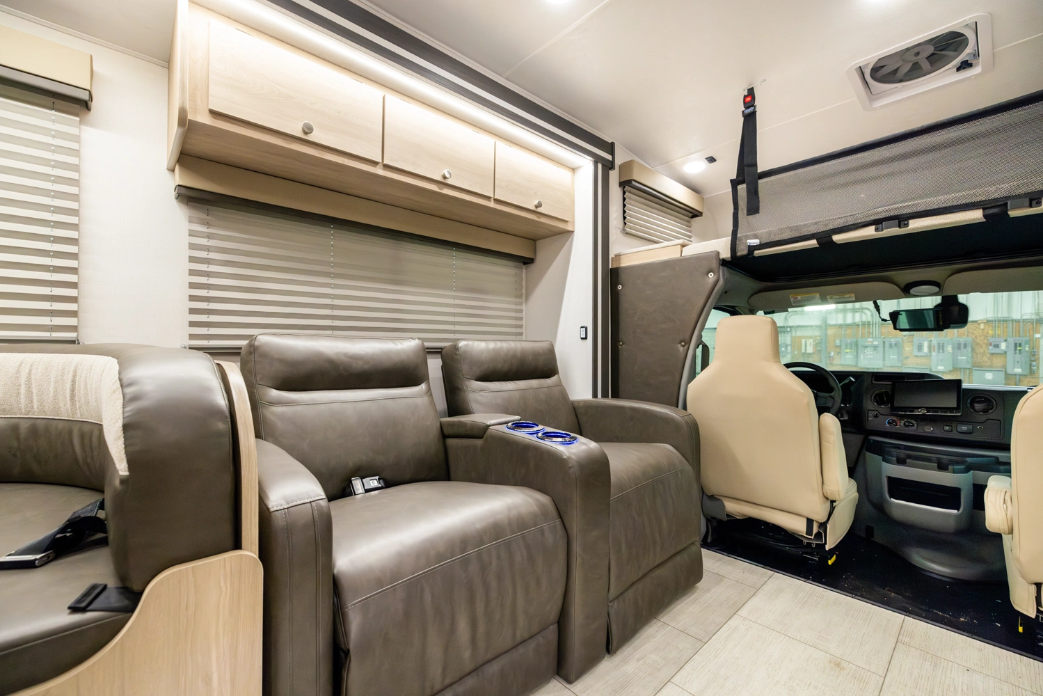 • Large Cab Over Bunk - 57" X 95" with Storage, Cup Holders and USB ports