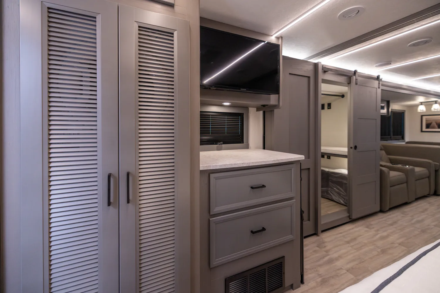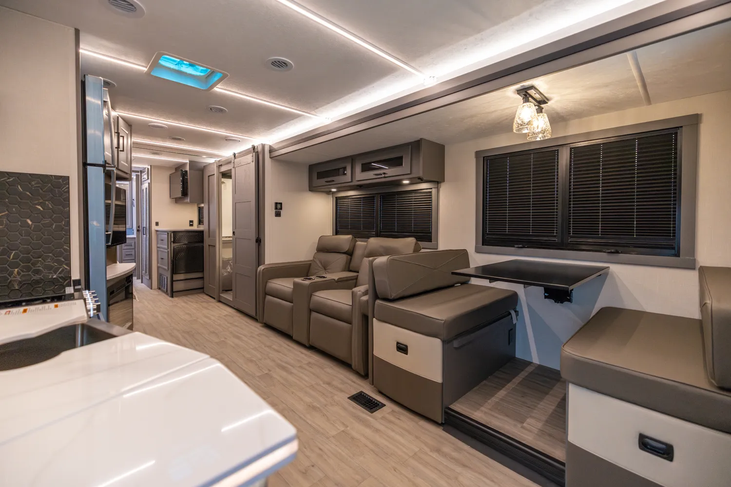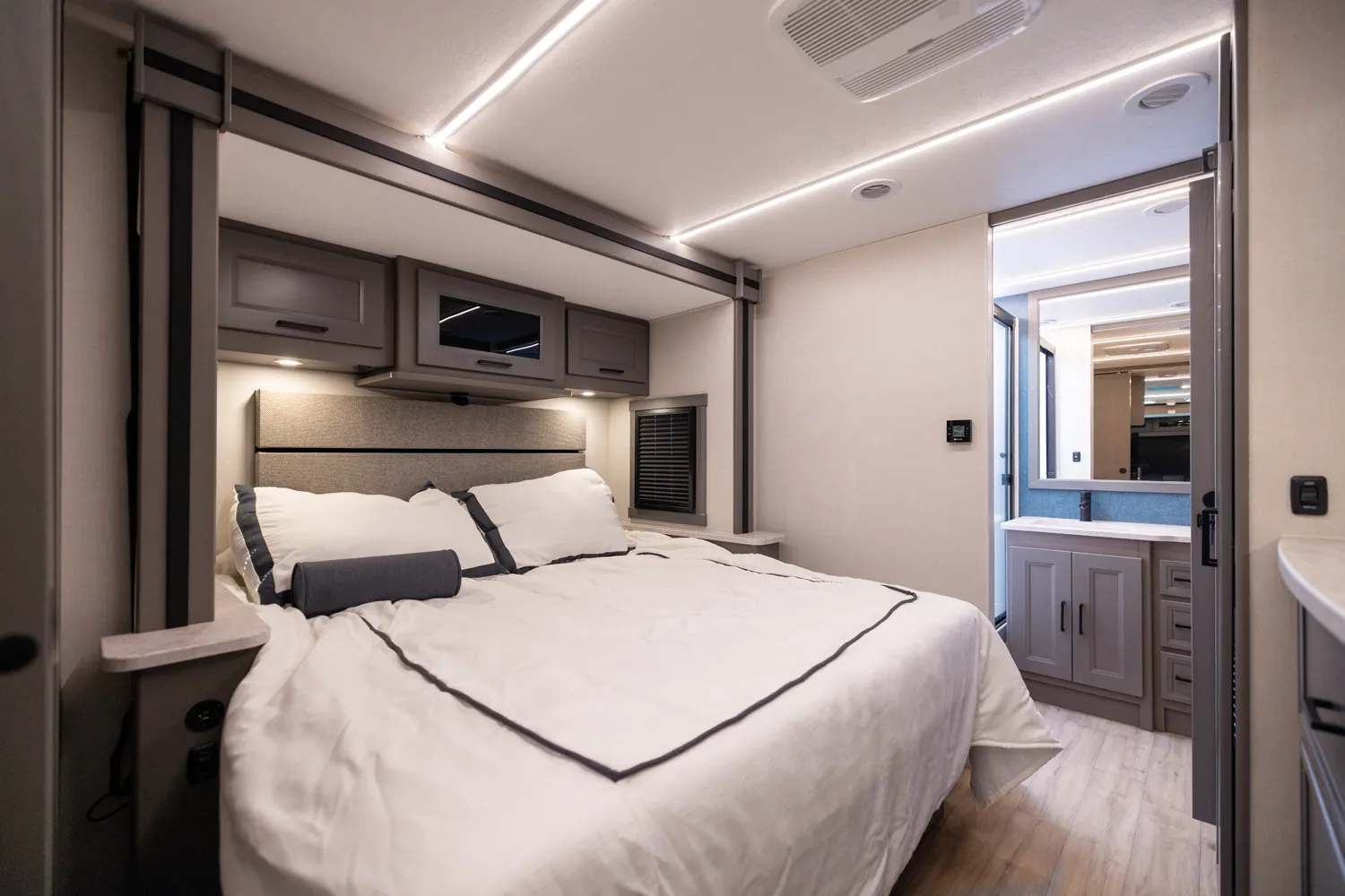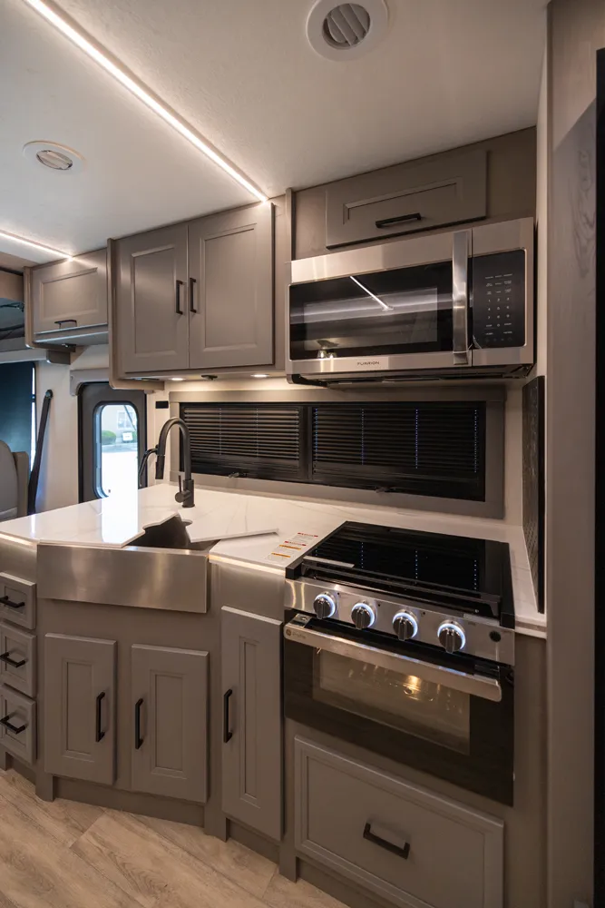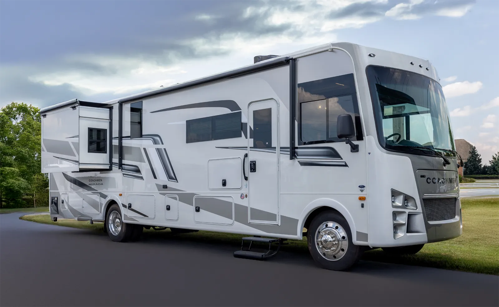 The Mirada 35ES is designed for travelers who want a powerful, feature-rich coach with plenty of space. Its mid-body slide gives a roomy living area that’s ideal for gathering friends or enjoying solo downtime. With high-capacity water systems and strong power, this model supports highway touring, park-hopping, or cross-country escapes in style.