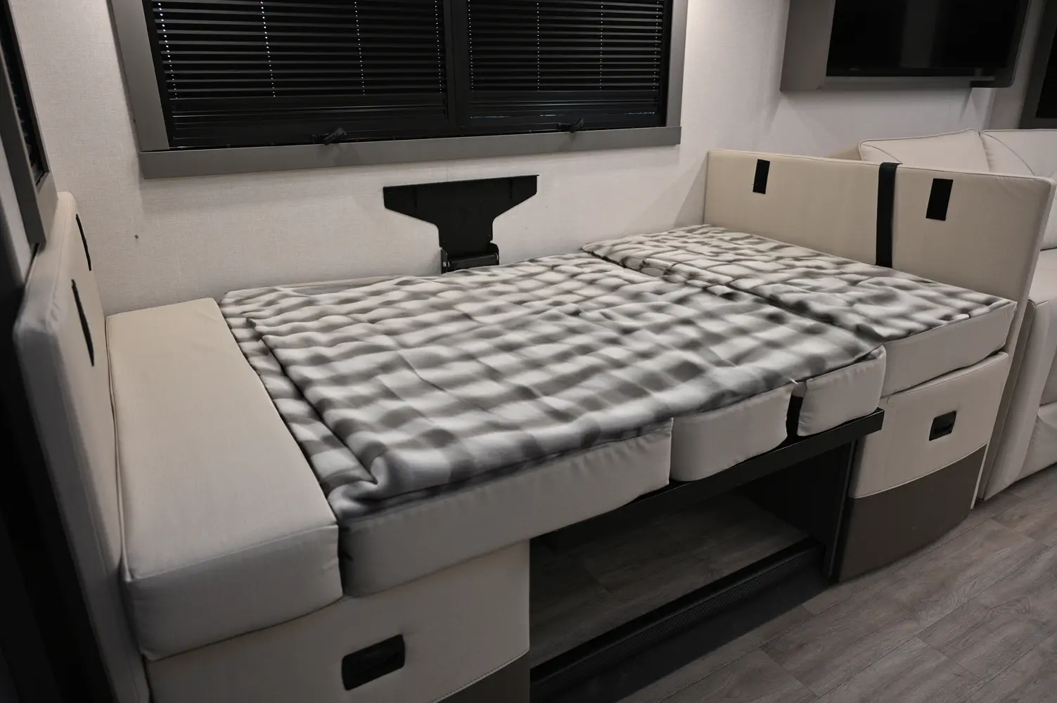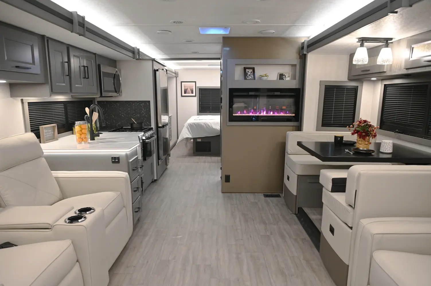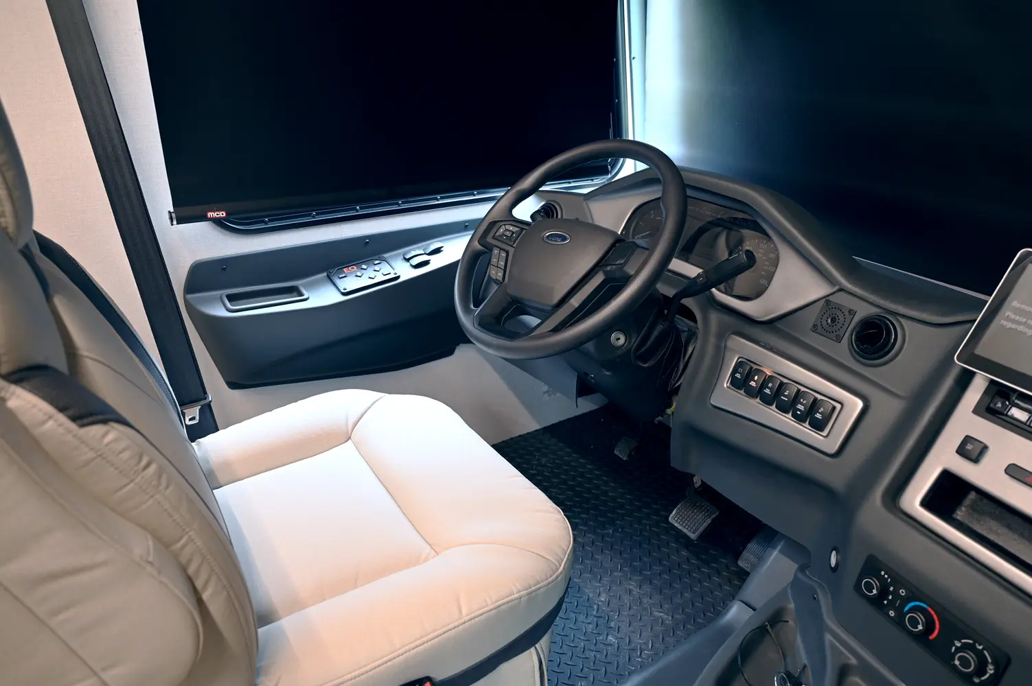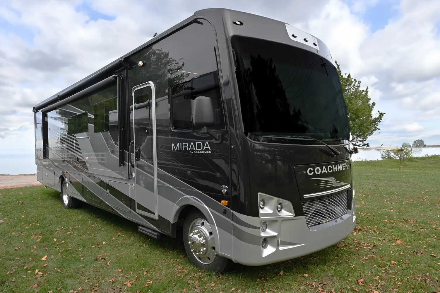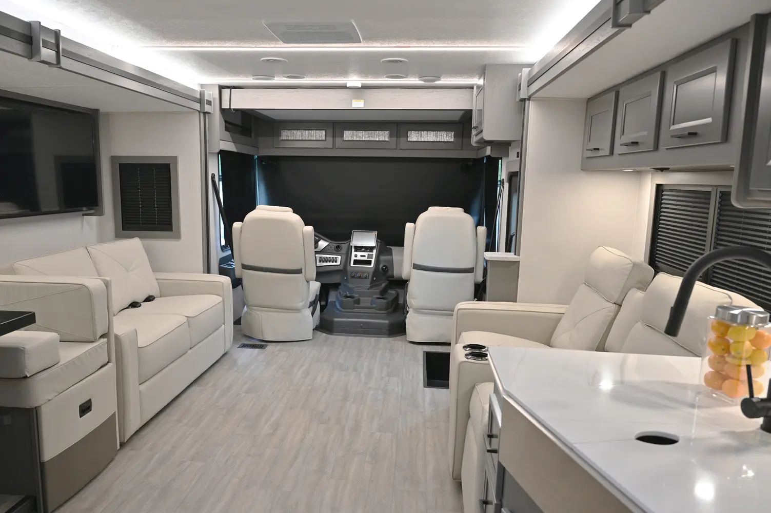 The Mirada 35OS features a double slide floor plan with a full slide on the door side and panoramic views, a king bed, and full amenities to frame every journey as an outdoor escape. It includes a drop-down cab bunk for extra guests or late-night relaxation. This coach is built for long-haul exploration, letting you chase sunrise views, mountain passes, or coastal routes in comfort.
