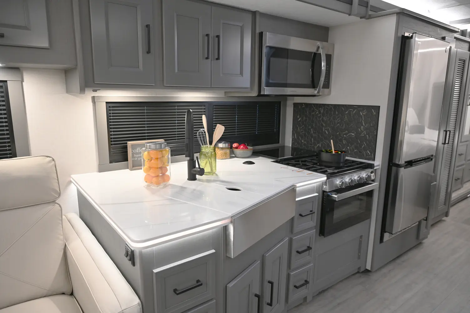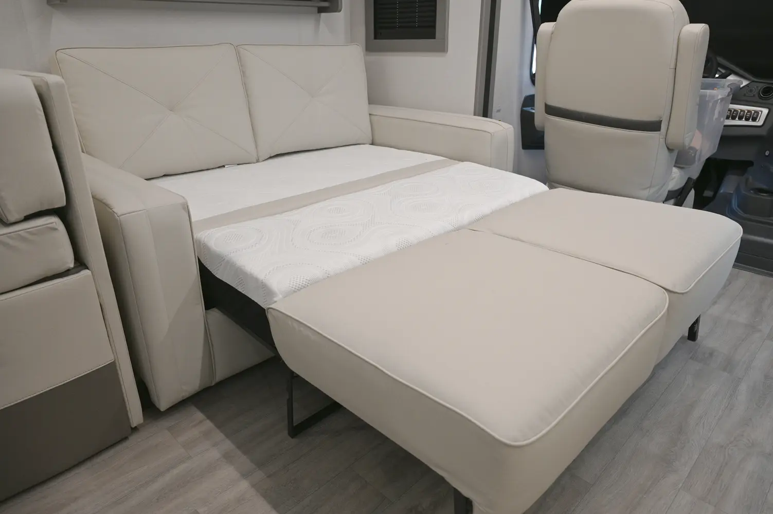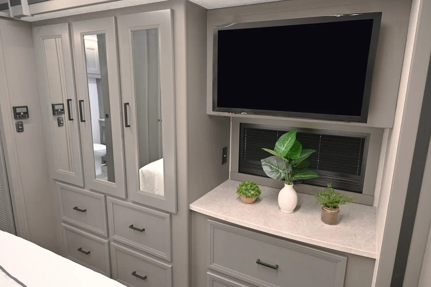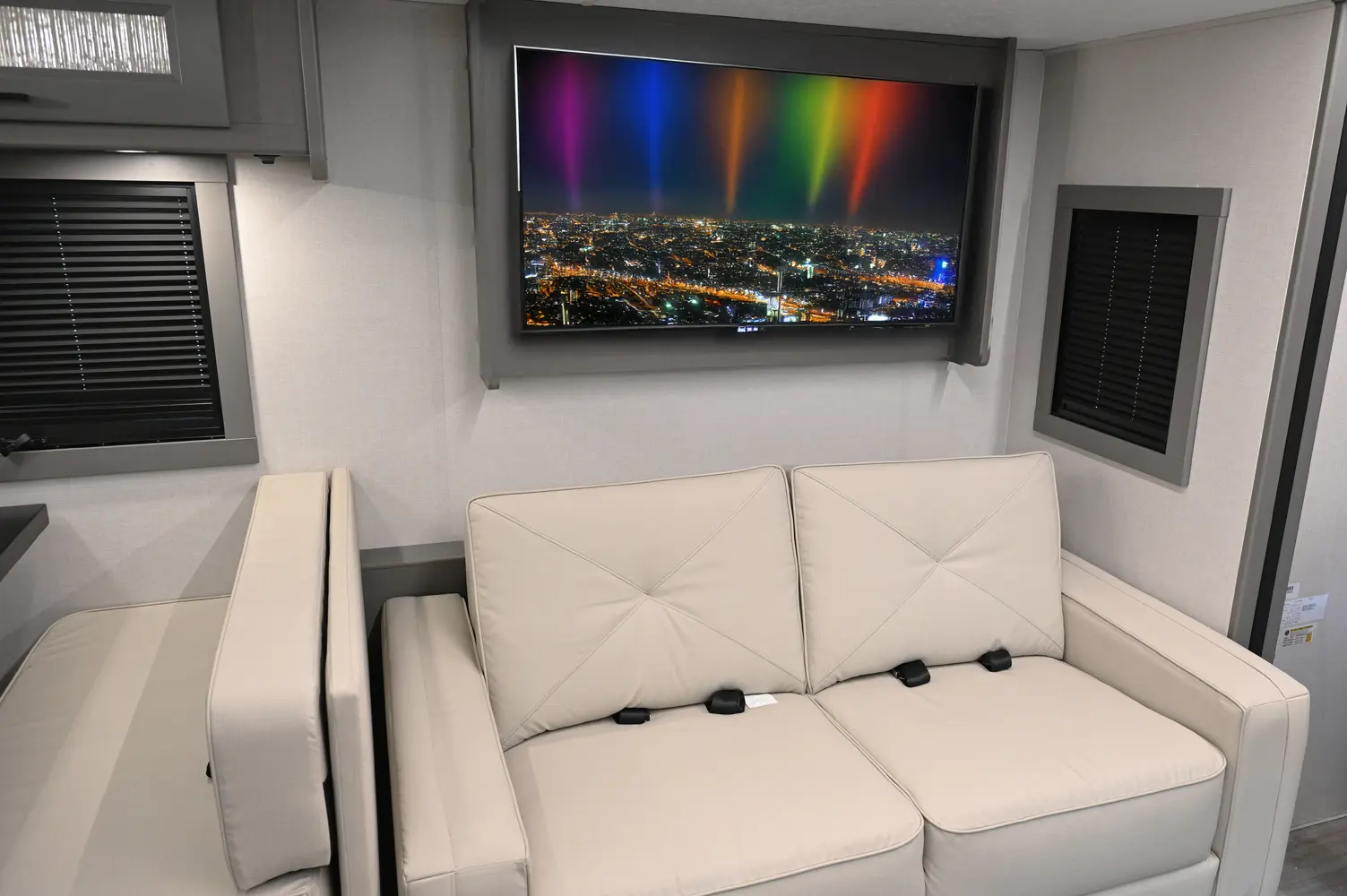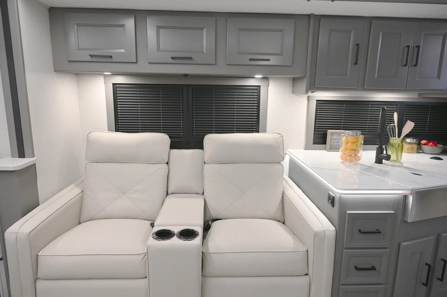The Mirada 35OS features a double slide floor plan with a full slide on the door side and panoramic views, a king bed, and full amenities to frame every journey as an outdoor escape. It includes a drop-down cab bunk for extra guests or late-night relaxation. This coach is built for long-haul exploration, letting you chase sunrise views, mountain passes, or coastal routes in comfort.