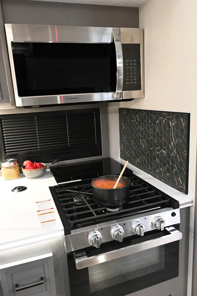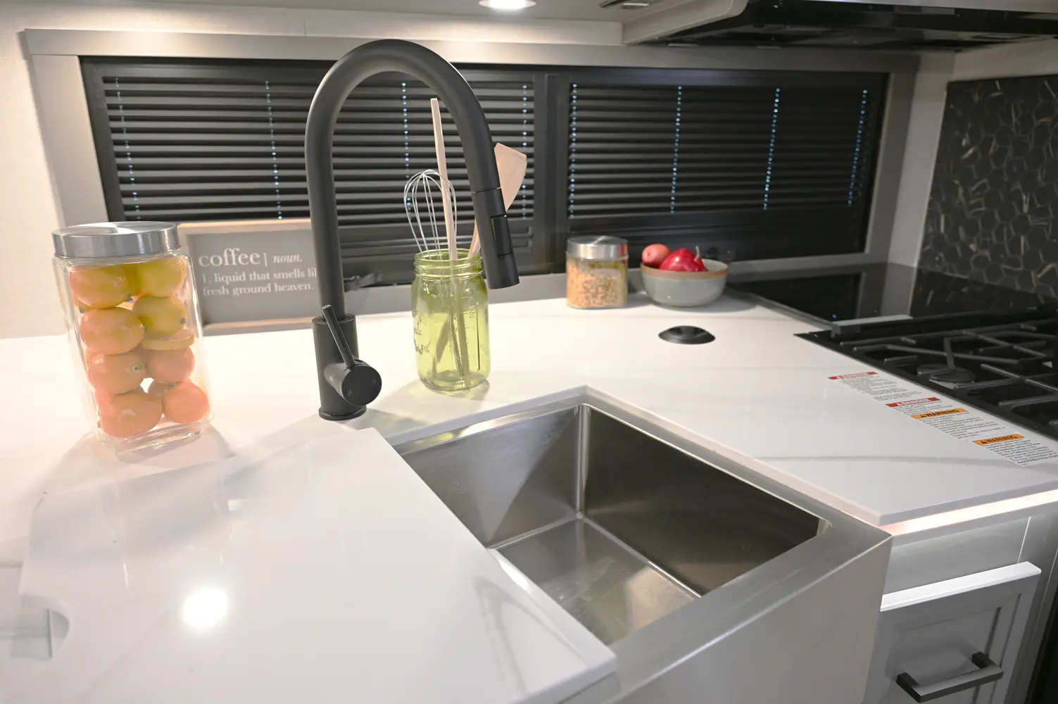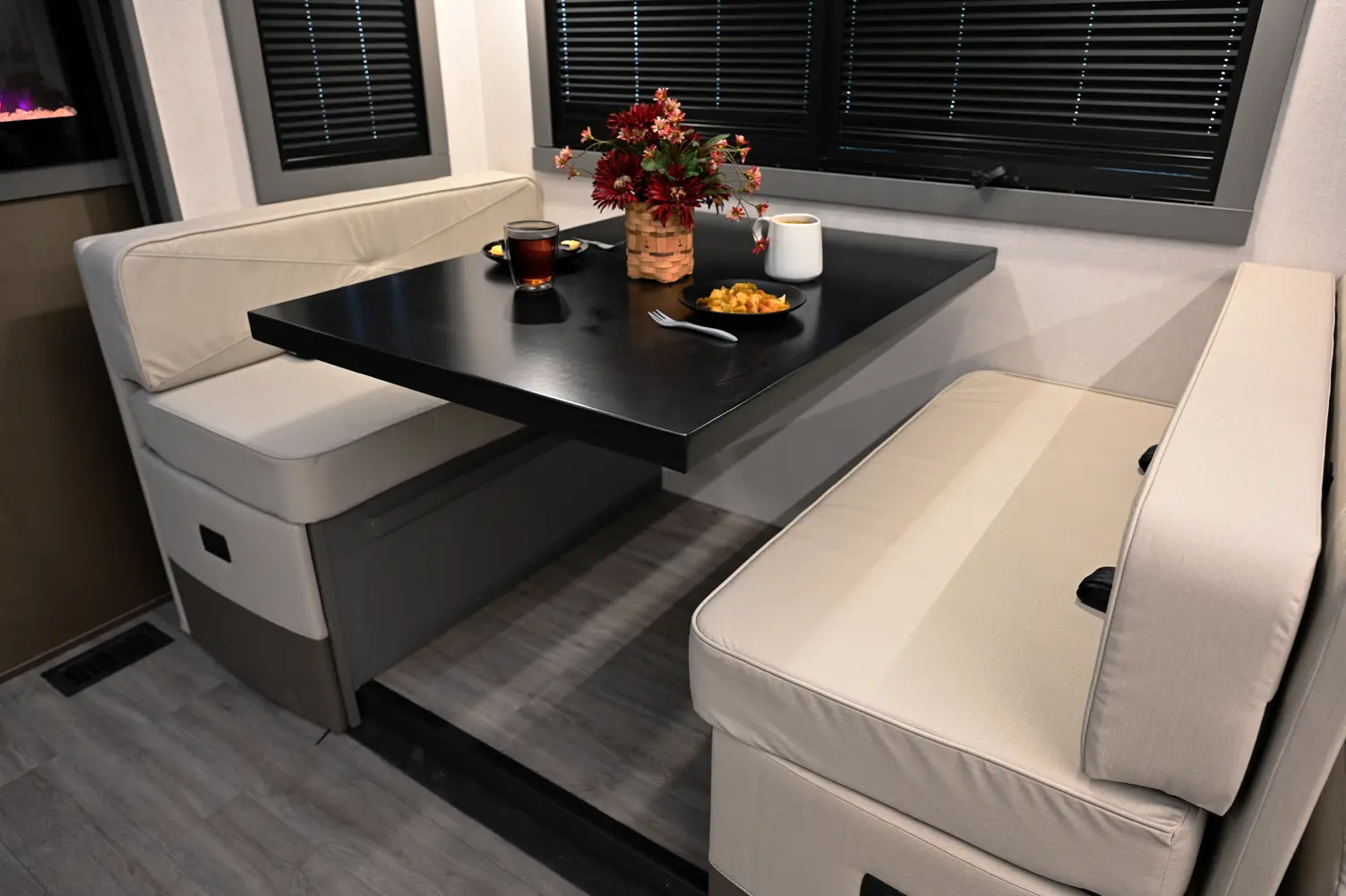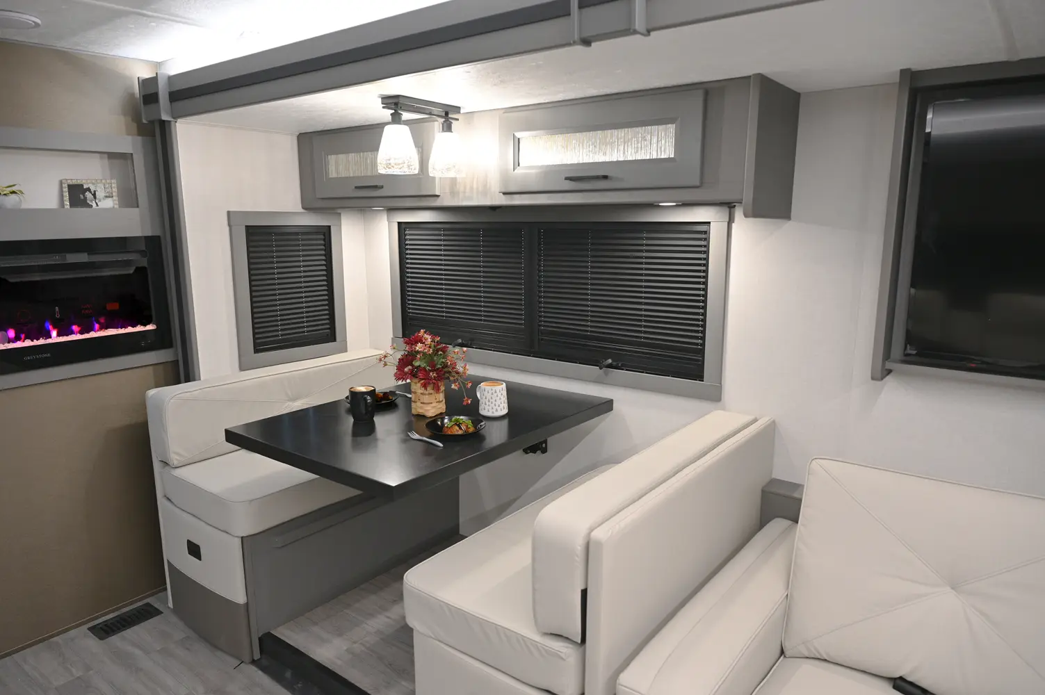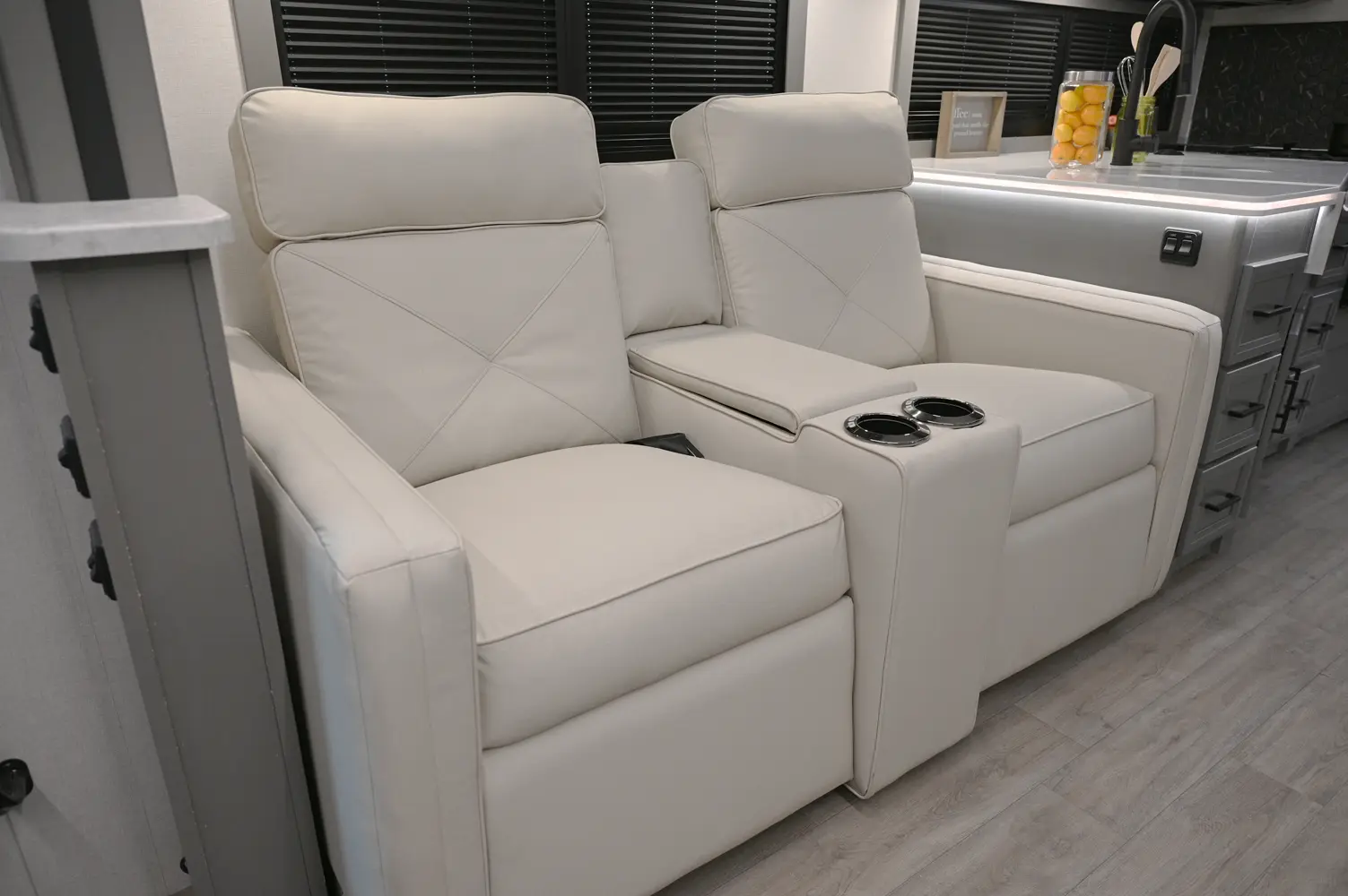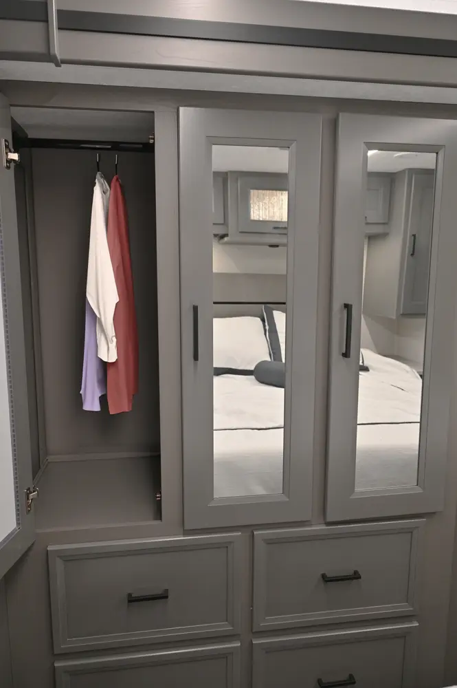 The Mirada 35OS features a double slide floor plan with a full slide on the door side and panoramic views, a king bed, and full amenities to frame every journey as an outdoor escape. It includes a drop-down cab bunk for extra guests or late-night relaxation. This coach is built for long-haul exploration, letting you chase sunrise views, mountain passes, or coastal routes in comfort.