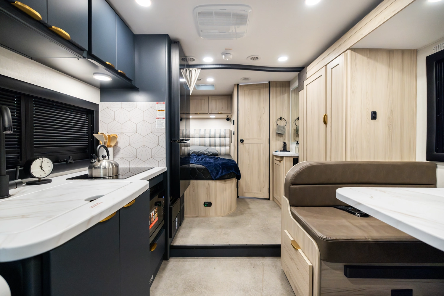 • Two Tone Interior Cabinetry: Indigo Bay (Indigo Blue / Sand Dune) or Highland (Duna Green / Mary Maple)