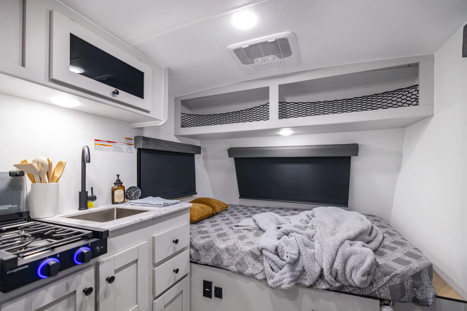 A rugged, compact Remote trailer built for minimalist adventure. Lightweight and tough, it is easy to tow and maneuver into remote campsites. With features like solar prep and heated tank pads, it is ready for weekend getaways and off-grid excursions so you can spend more time exploring and less time on setup.