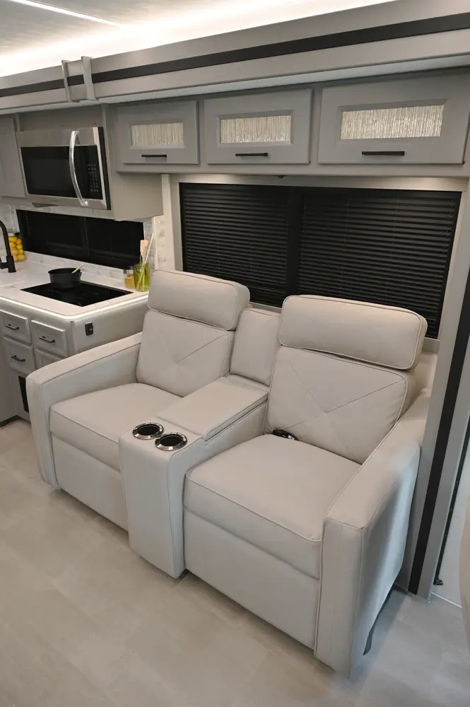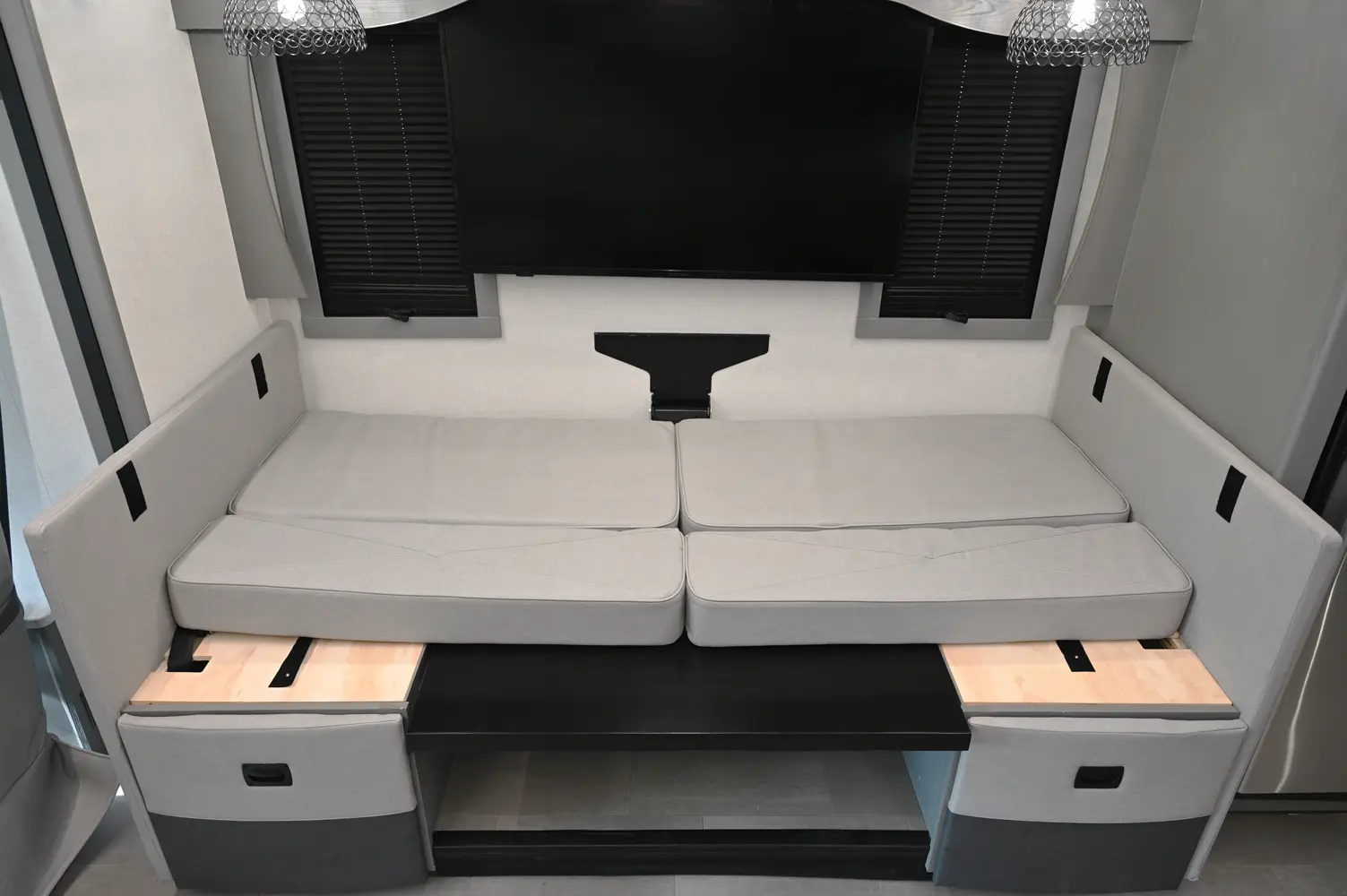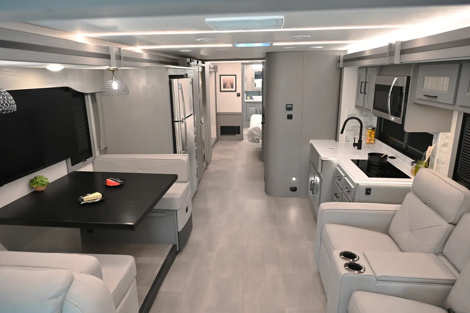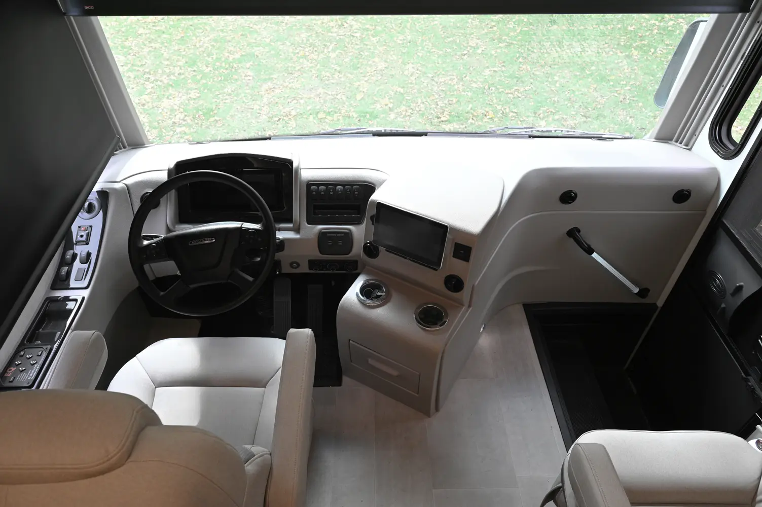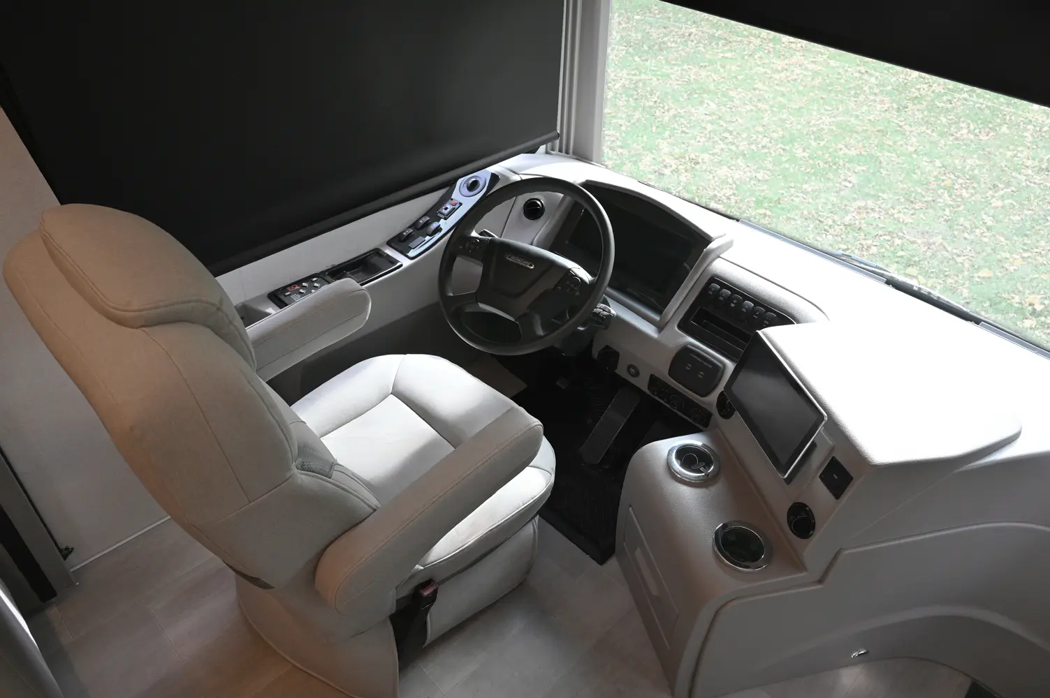 The Sportscoach RD 402TS delivers a powerful 41-foot diesel pusher ride built on a Freightliner raised-rail chassis. With air-ride suspension and panoramic windows, it offers a smooth journey through mountains, forests, or coastlines. Inside, the flat floor design and smart storage make it easy to bring all your gear. Premium finishes like solid-surface countertops and hardwood cabinetry provide refined comfort after long days of adventure.