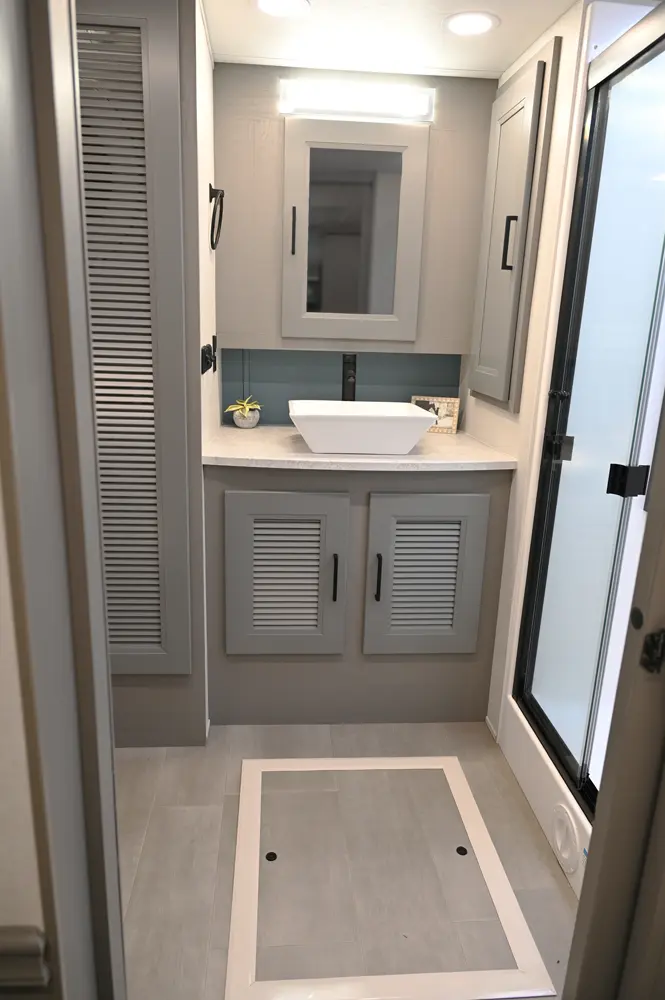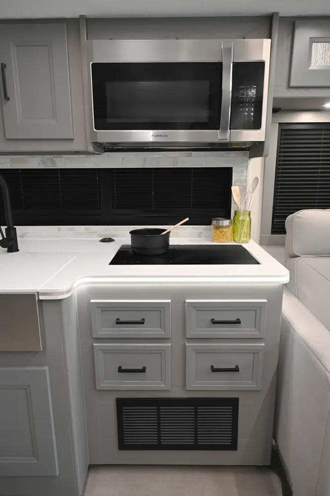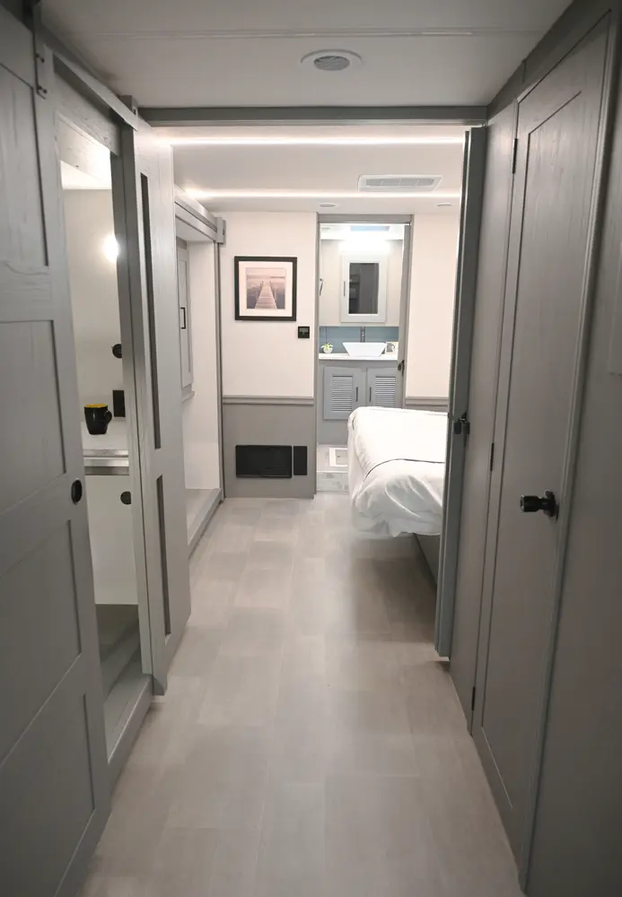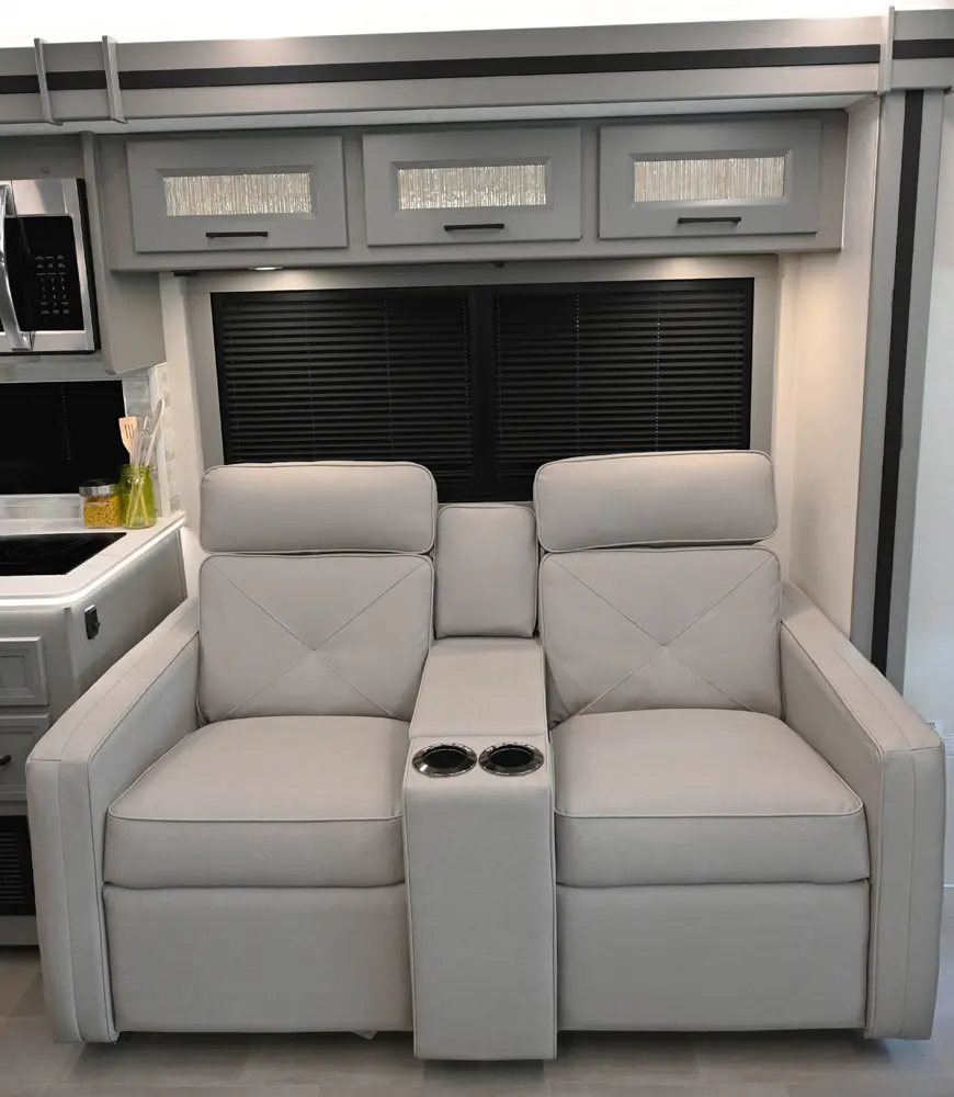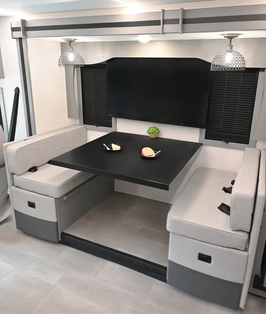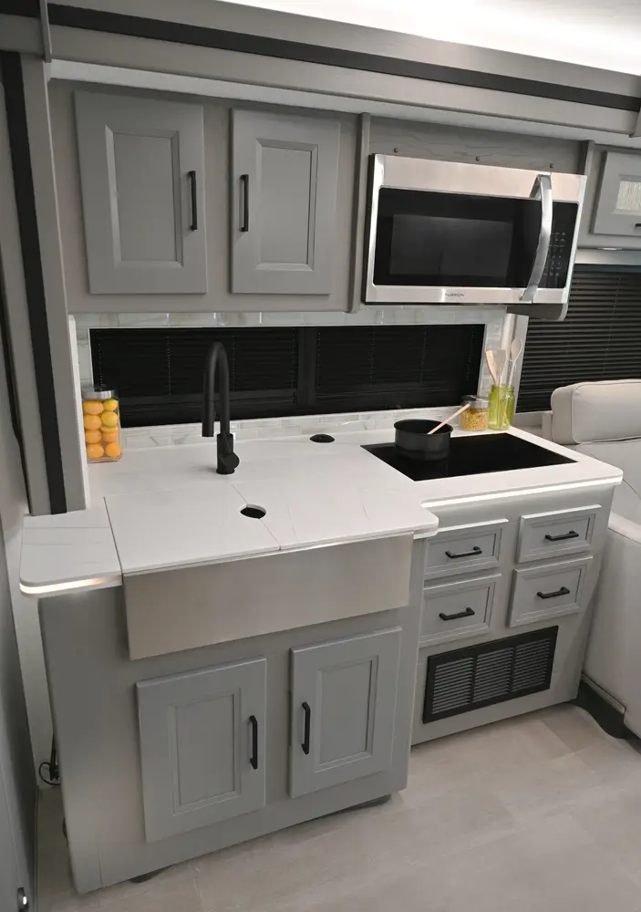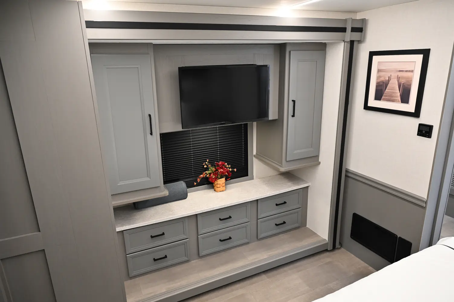 The Sportscoach RD 402TS delivers a powerful 41-foot diesel pusher ride built on a Freightliner raised-rail chassis. With air-ride suspension and panoramic windows, it offers a smooth journey through mountains, forests, or coastlines. Inside, the flat floor design and smart storage make it easy to bring all your gear. Premium finishes like solid-surface countertops and hardwood cabinetry provide refined comfort after long days of adventure.