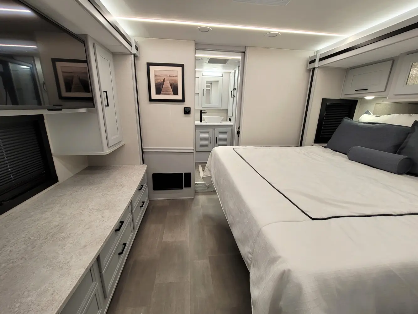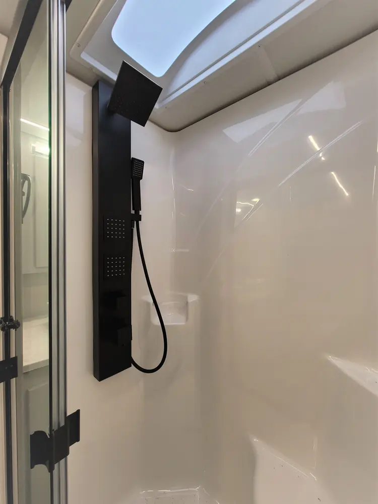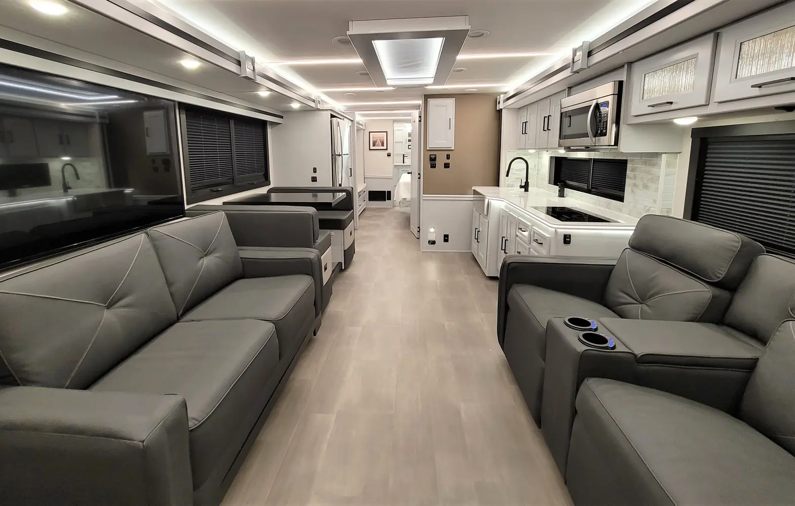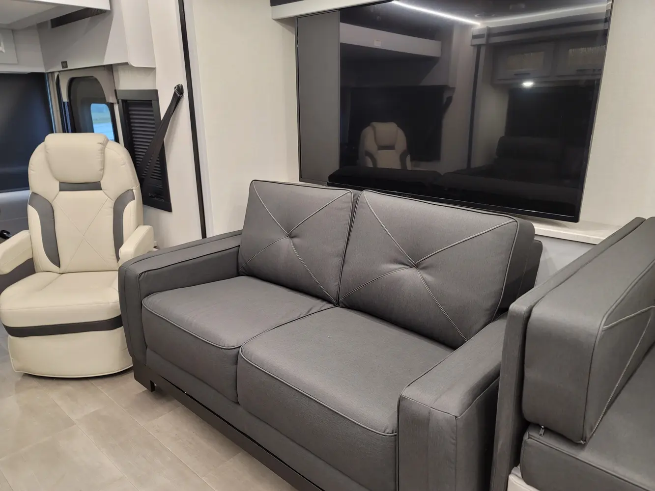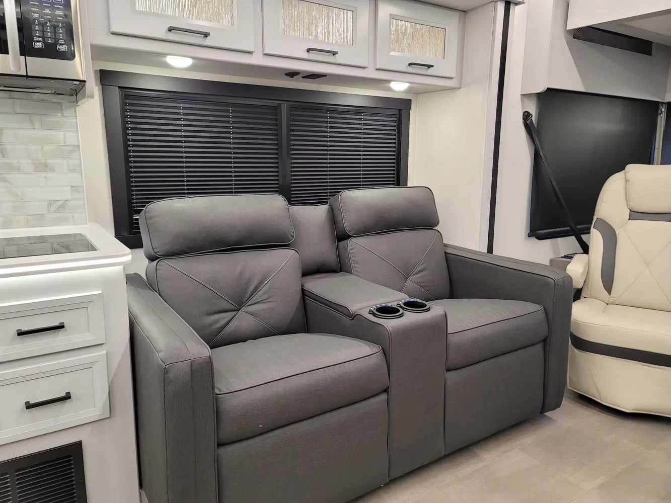 The Sportscoach RD 411TS is a powerful 41-foot diesel pusher designed for long-haul adventure. Its raised-rail Freightliner chassis, 360 hp Cummins engine, and air ride suspension deliver a smooth and confident ride over mountains or long highways. Inside, triple slides maximize space and include theater seating, a drop-down bunk, a king bed, and premium finishes like hardwood cabinets and solid-surface galley counters. This layout supports fully stocked road trips.