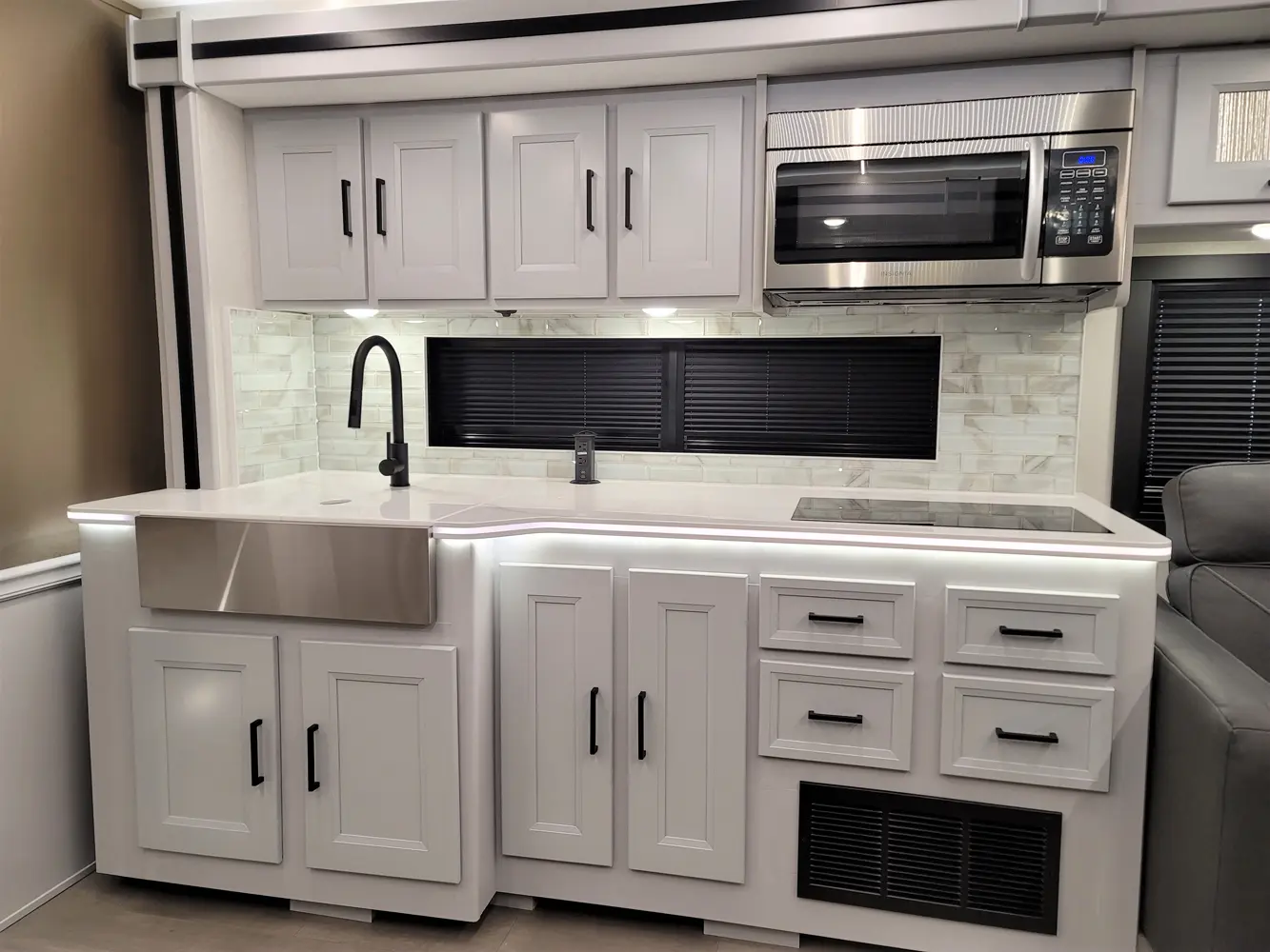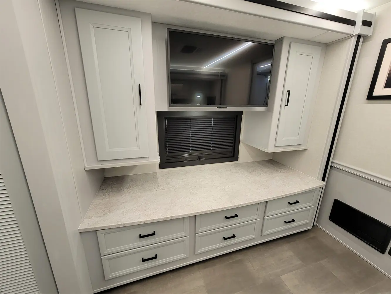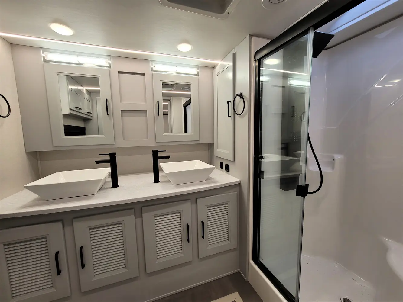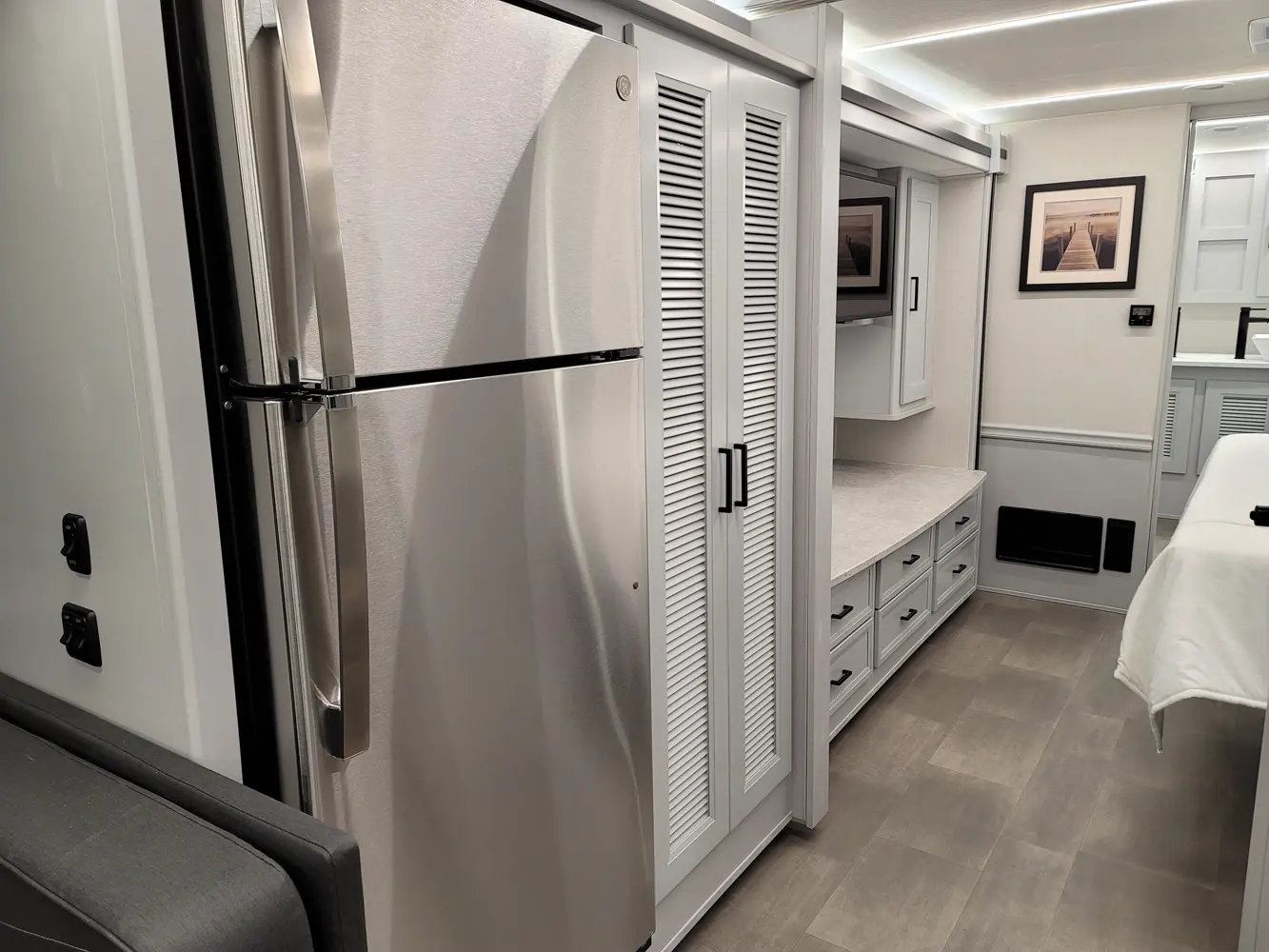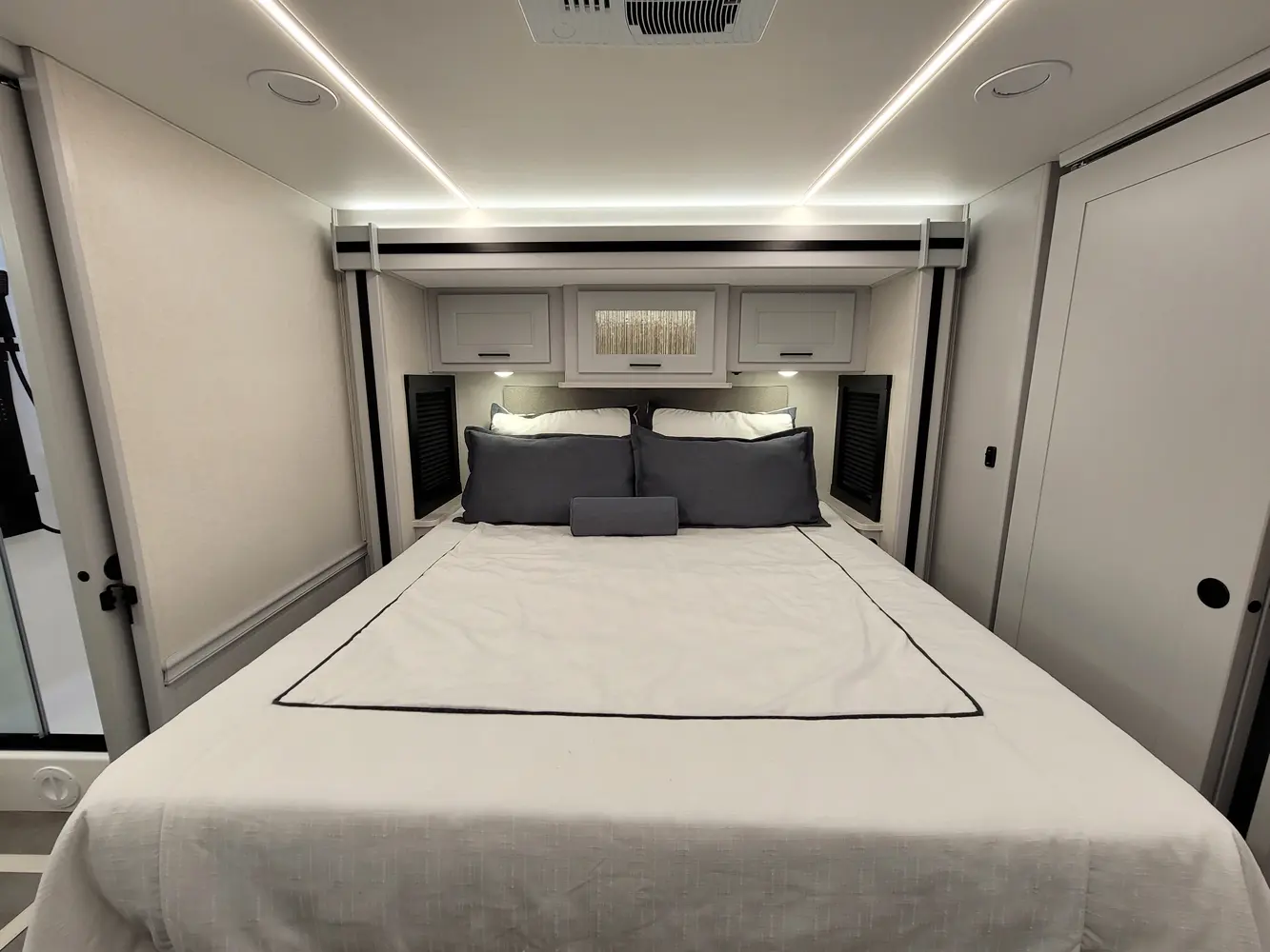 The Sportscoach RD 411TS is a powerful 41-foot diesel pusher designed for long-haul adventure. Its raised-rail Freightliner chassis, 360 hp Cummins engine, and air ride suspension deliver a smooth and confident ride over mountains or long highways. Inside, triple slides maximize space and include theater seating, a drop-down bunk, a king bed, and premium finishes like hardwood cabinets and solid-surface galley counters. This layout supports fully stocked road trips.