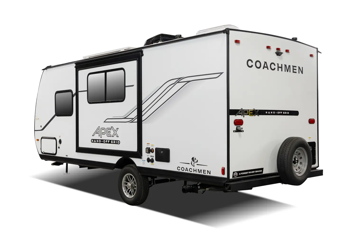 Apex Nano Travel Trailers are the perfect lightweight RV for adventurers seeking durability, efficiency, and comfort on the road. Engineered specifically for easy towing with today’s half-ton trucks, minivans, and SUVs, every model in the Apex Nano lineup features an ultra-lightweight design, with each unit weighing under 4,500 pounds. These compact travel trailers offer the freedom to explore without sacrificing the quality and innovation RV enthusiasts expect from a leading RV manufacturer. With smart floorplans, off-grid capabilities, and top-tier construction, Apex Nano is built for families, couples, and solo travelers looking for maximum versatility in a small RV footprint.
