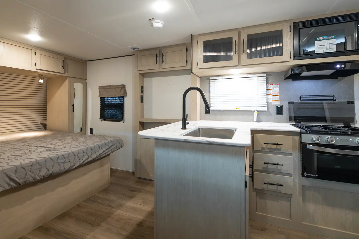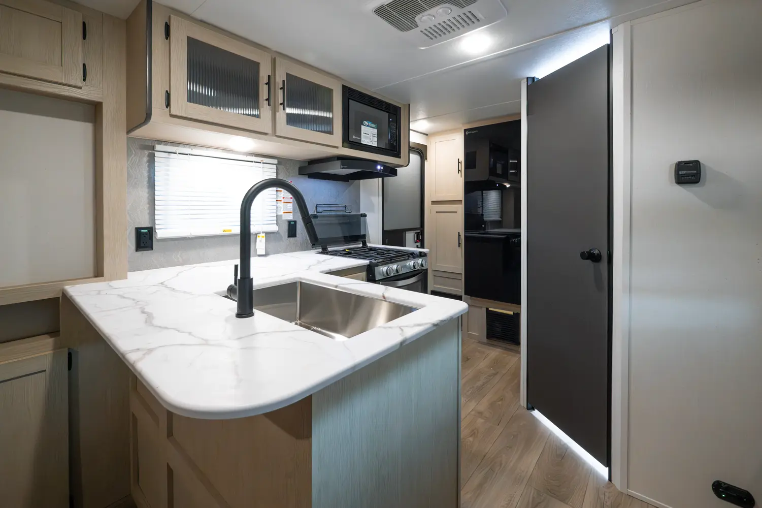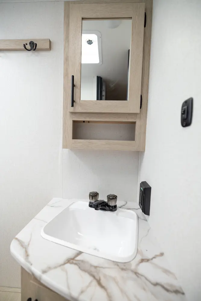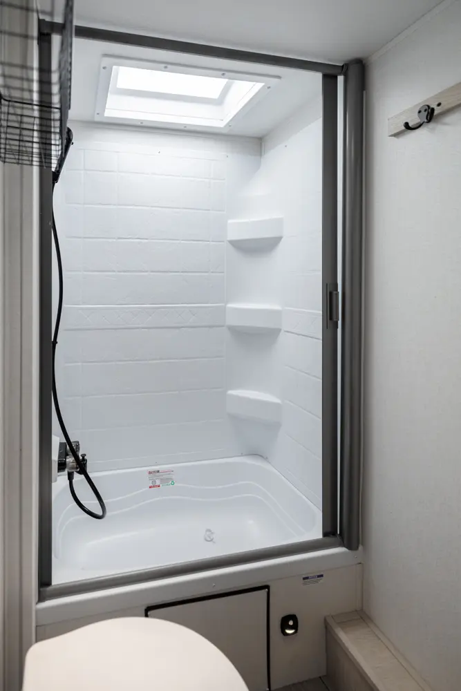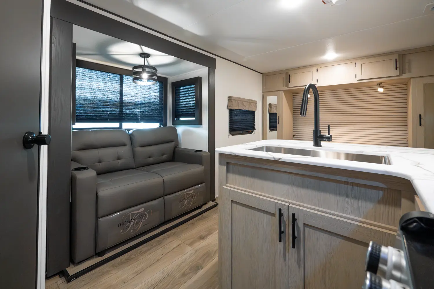 Built for both families and couples, Shasta blends classic comfort with modern functionality. From relaxing on the lounger sofa to gathering around the built-in fireplace, every feature is designed to support memorable moments on the road. The flip-down storage rack adds convenience for carrying bikes, coolers, or extra gear, giving you the freedom to pack for whatever the trip demands.