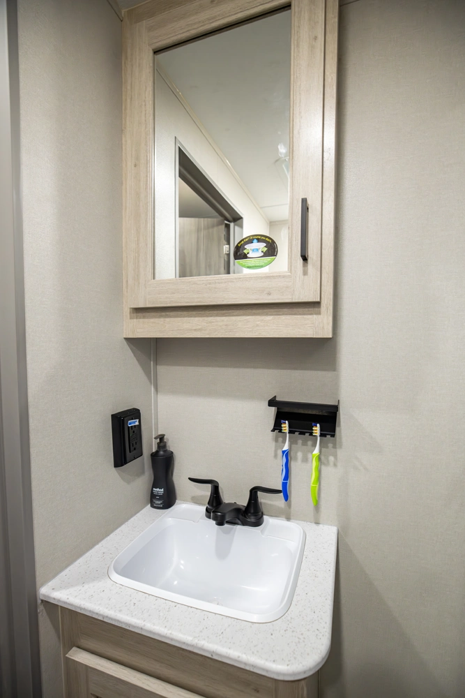 • 50 Amp Service with (3) Non-Ducted 18K BTU Furrion High Efficiency A/Cs with Heat Pumps (N/A 243RBS, 263BHS, 263FKDS, 283RKS)