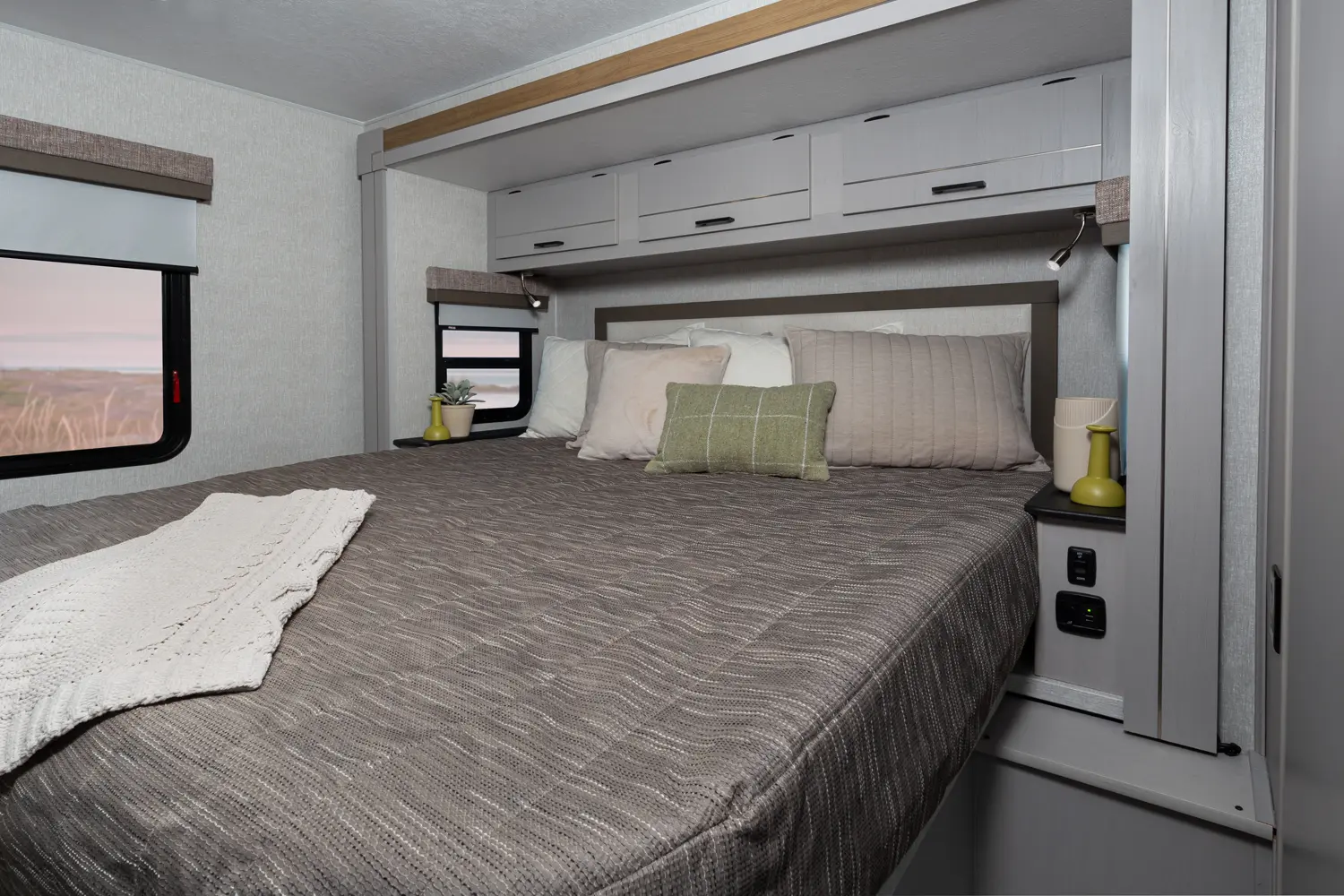 • Large Cab-Over Area with Cup Holders, Storage and USB Ports (57" x 95”)