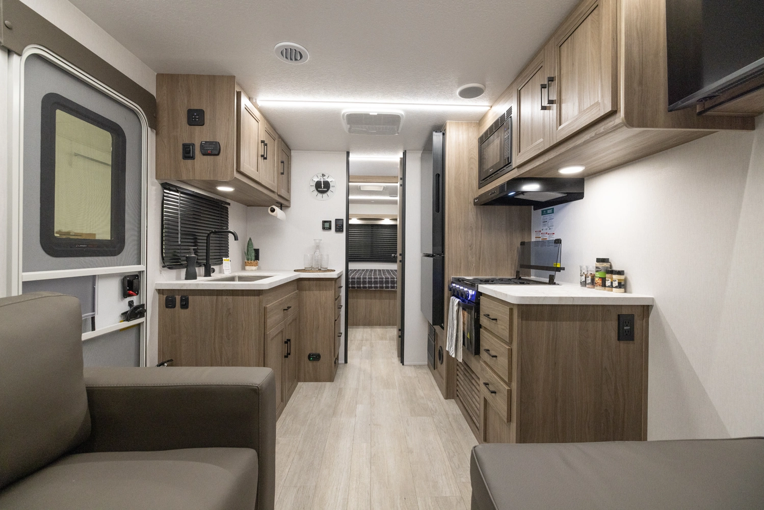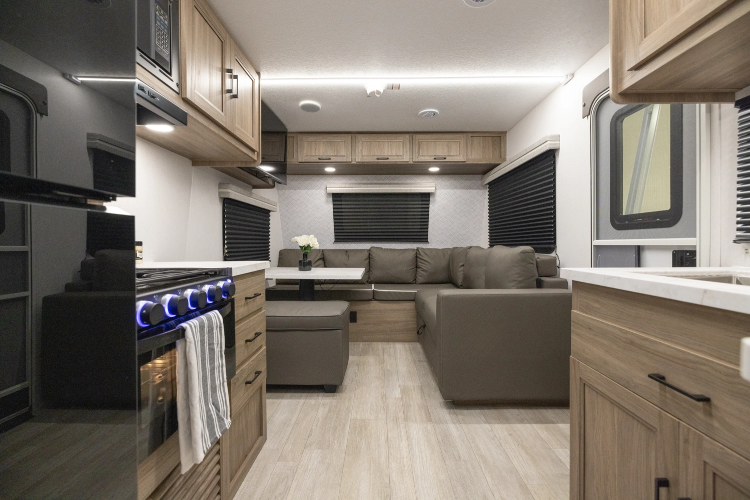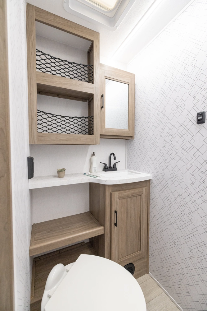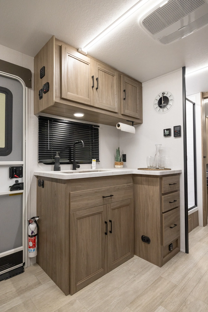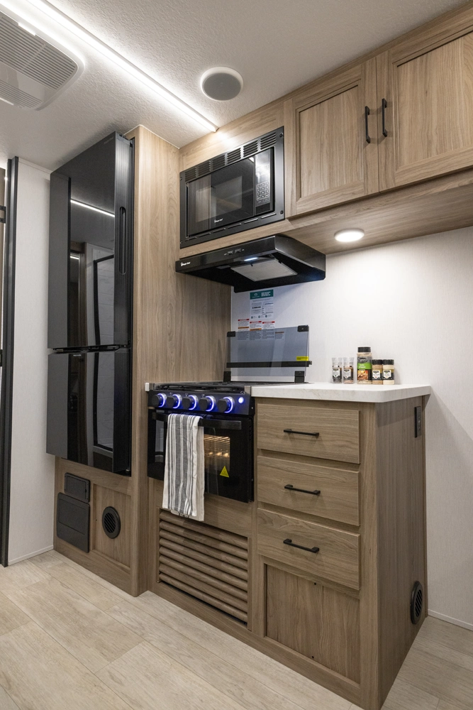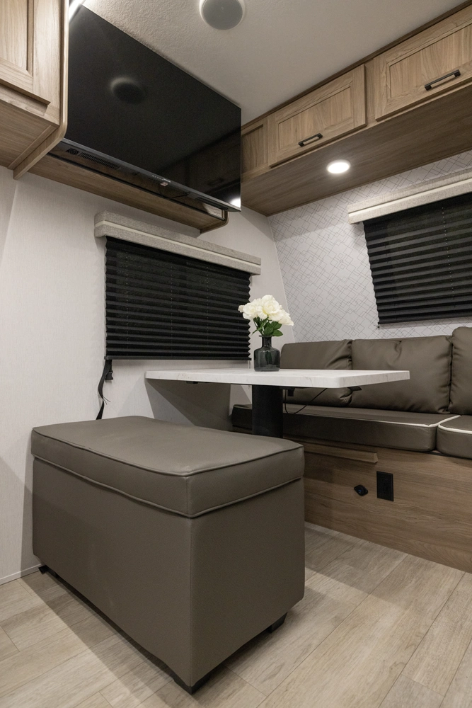 This 28' 5' - no slide model maximizes interior flow for comfort and convenience. With efficient kitchen space, smart sleeping arrangements, and lightweight construction, the 249SE helps campers focus on exploring national parks, scenic byways, or weekend camp spots without towing stress.