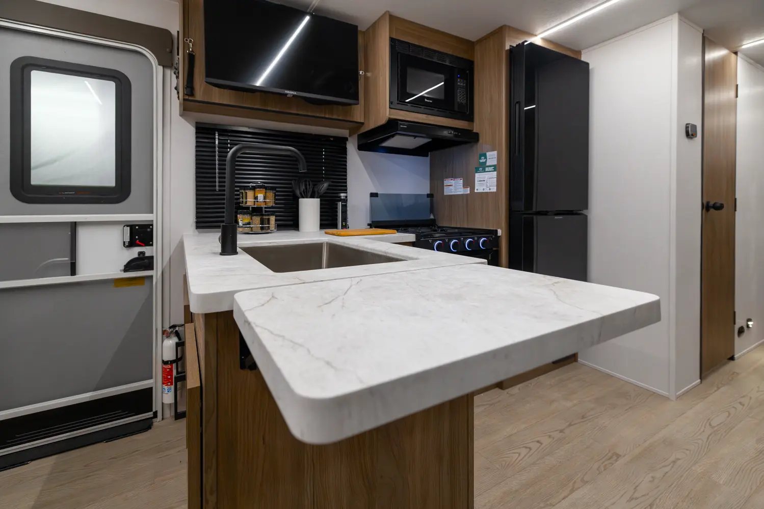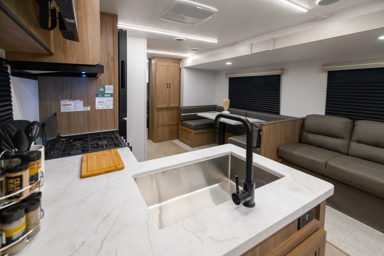 This 33' 3" travel trailer expands your range and comfort with dual slideouts and robust construction. The 30SE keeps things lightweight but gives you the space and amenities you need to turn any campsite into a flexible basecamp, whether you’re chasing rivers, mountains, or open highways.