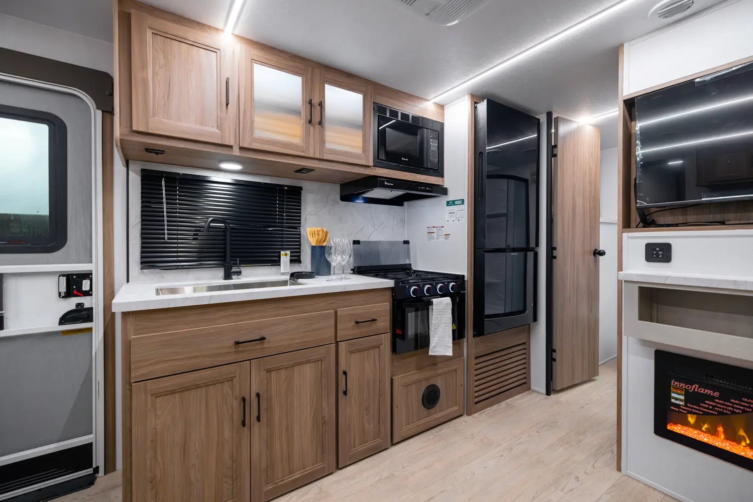 This 29' 8" trailer balances room and driveability for outdoor families. The 252RBS gives you a rear bath, dedicated sleeping areas, and clever storage. Built with lightweight but strong materials, it helps you take on backcountry destinations, lakeside retreats, or forest escapes with ease.