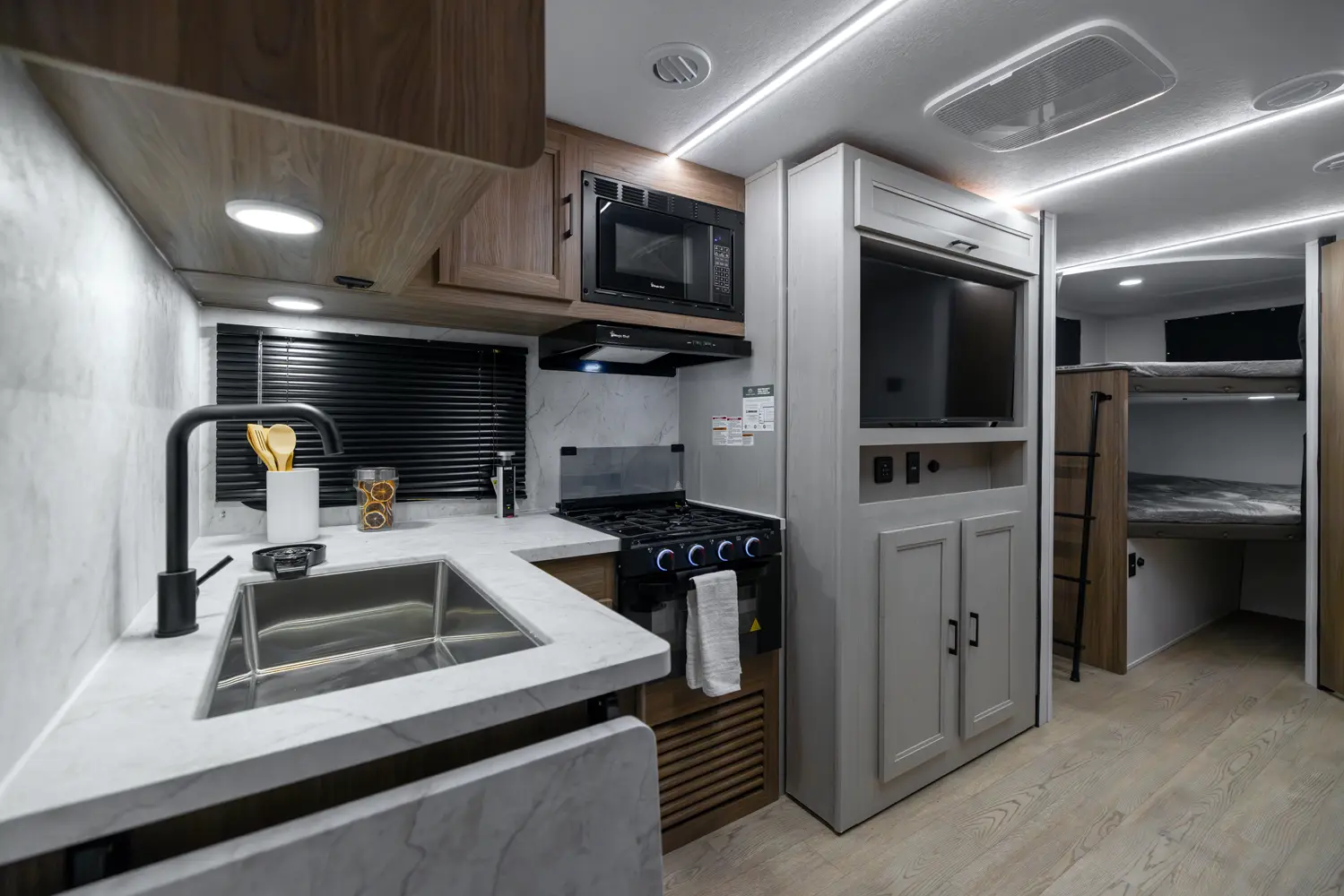 Designed for family trips and multi-generation adventures, the 258BHS offers bunk beds, a dinette, and a queen bed. Its durable construction and efficient design let you load up with gear and head out to campgrounds or outdoor playgrounds without feeling cramped or overloaded.