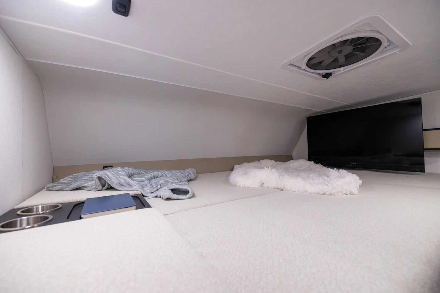 • Large Cab Over Bunk - 57" X 95" with Storage, Cup Holders and USB ports