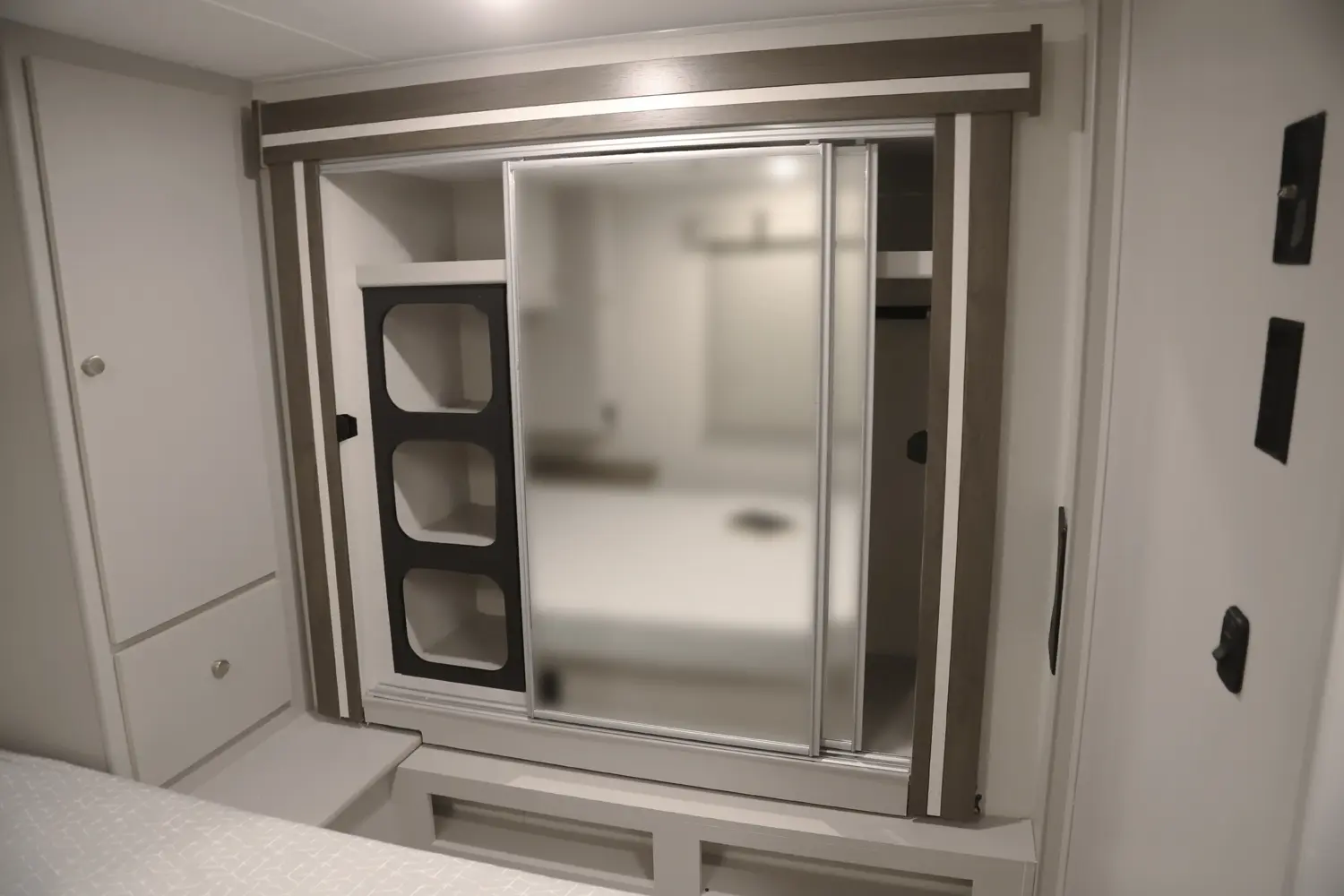 The Freelander 31MB - Ford E-450 has one entry and two slide outs. Exterior features include: 21' awning and outside kitchen. Interiors features include: rear bedroom, bunk over cab and u-dinette.