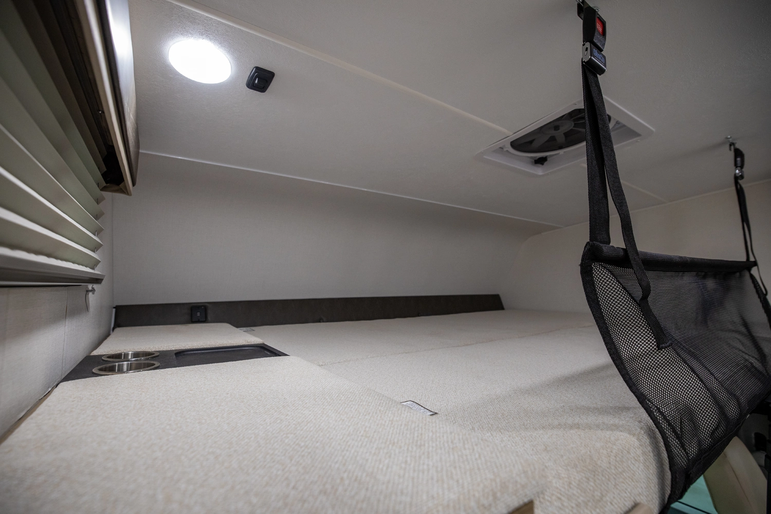 • Large 57 x 80" Cab-Over Sleeping Area with Cup Holders & Storage (800 lb. Capacity)