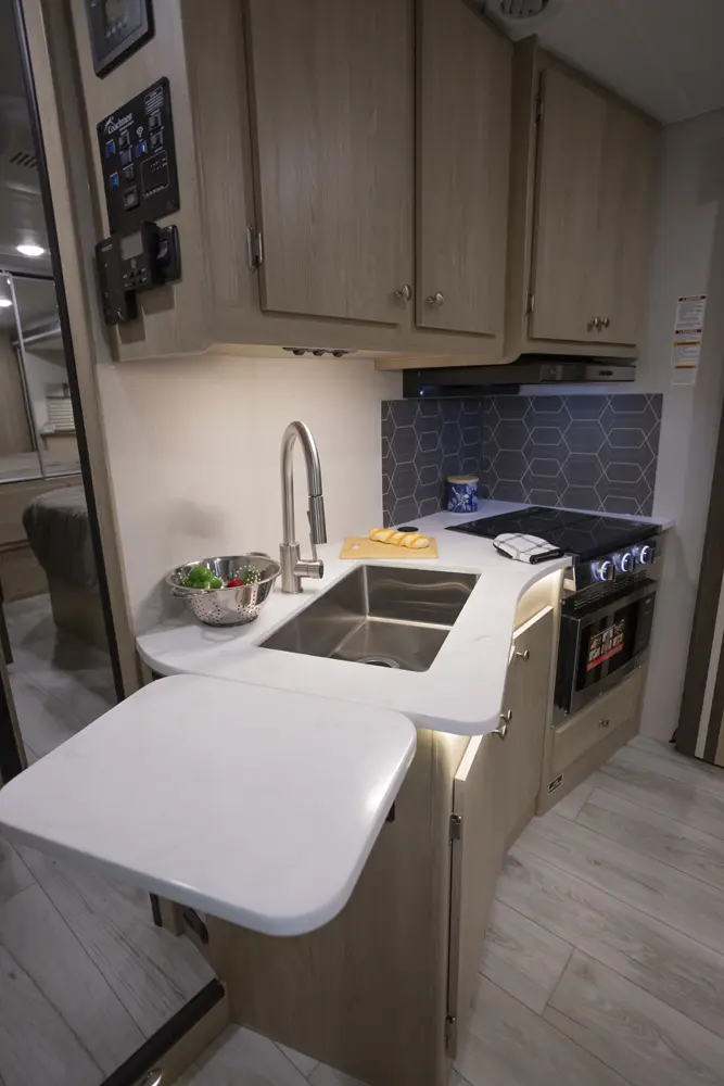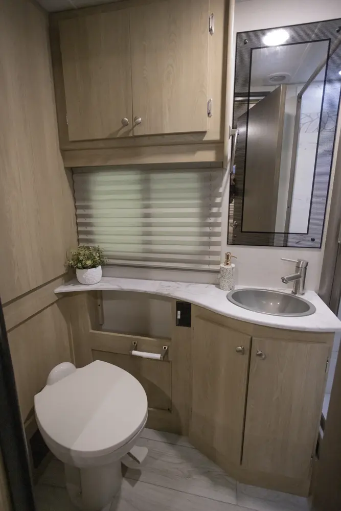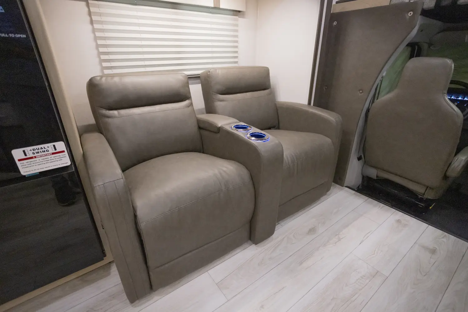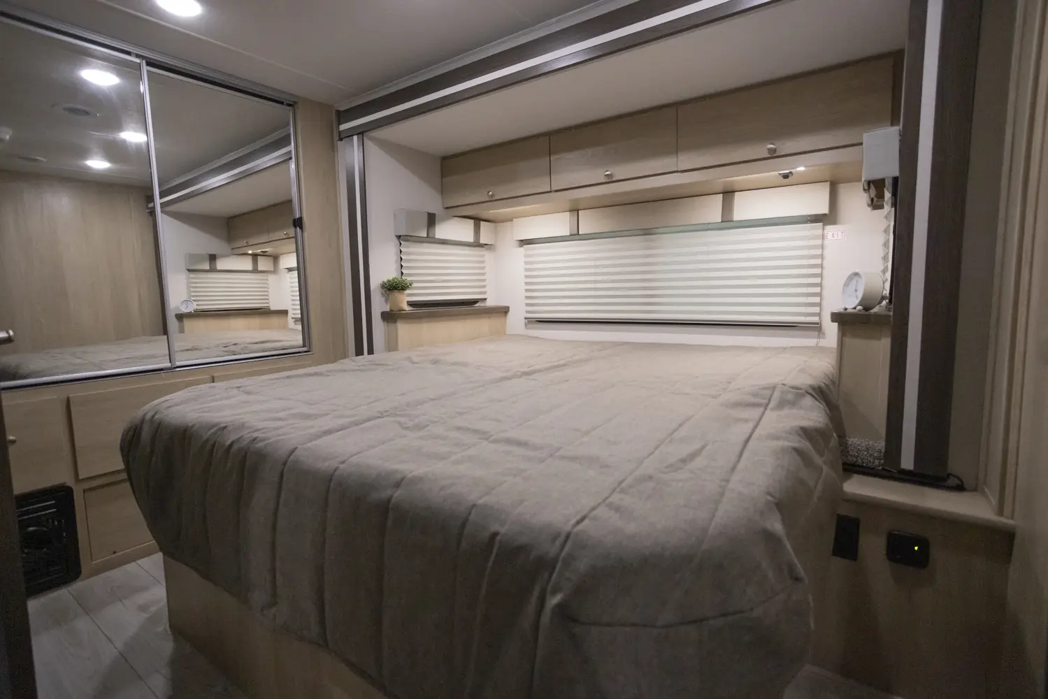The Leprechaun 298KB - Ford E-450 has one entry and two slide outs. Exterior features include: 21' awning and outside entertainment. Interiors features include: rear bedroom and bunk over cab.