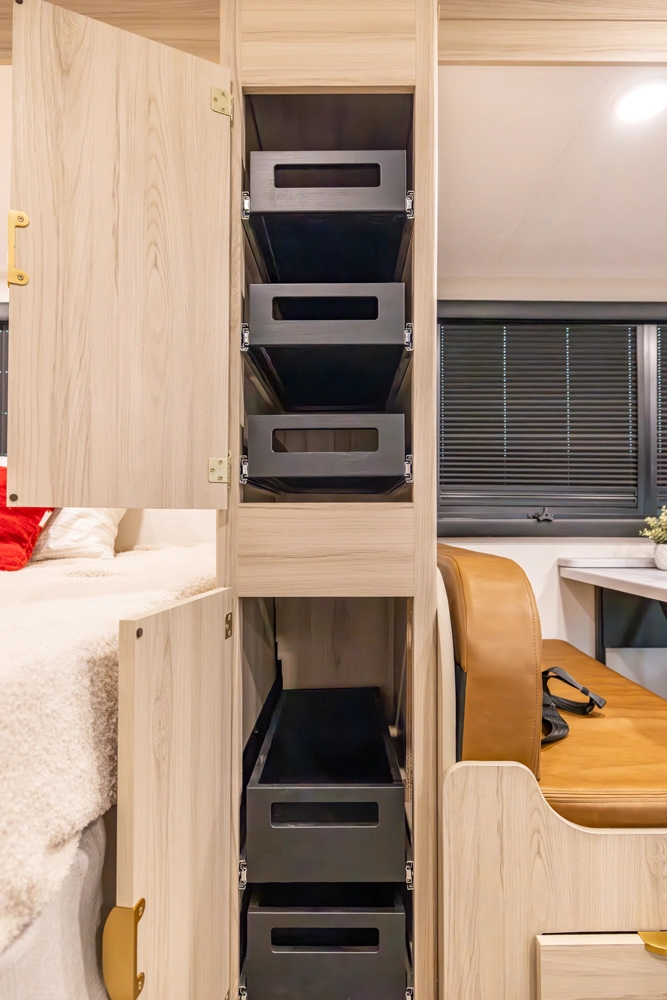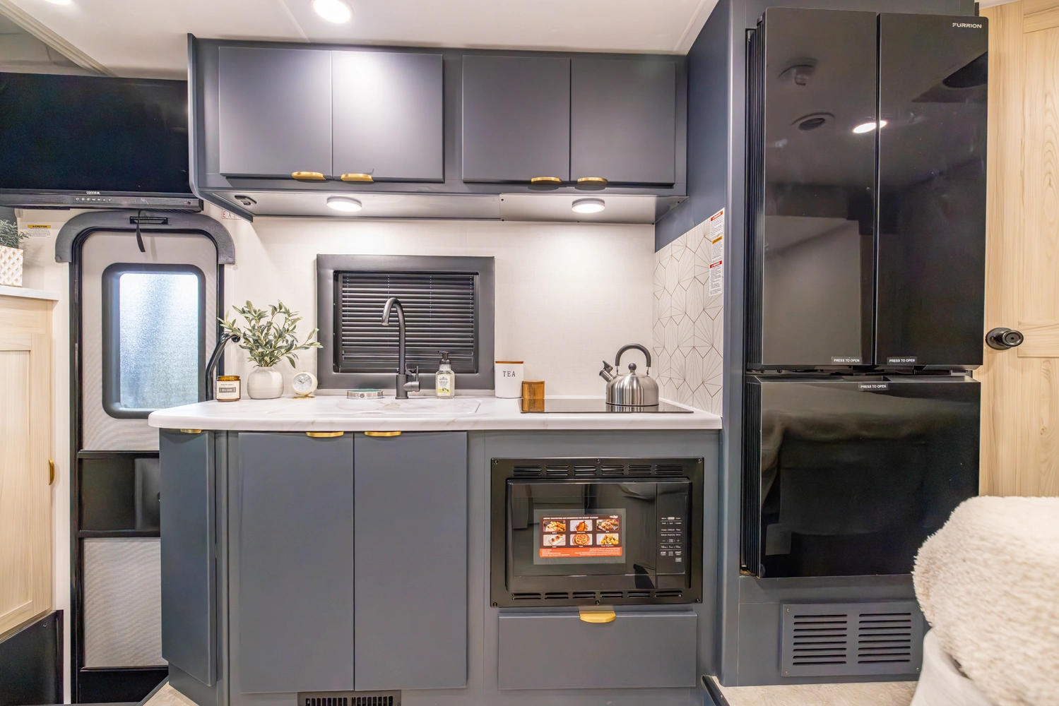 • Two Tone Interior Cabinetry: Indigo Bay (Indigo Blue / Sand Dune) or Highland (Duna Green / Mary Maple)