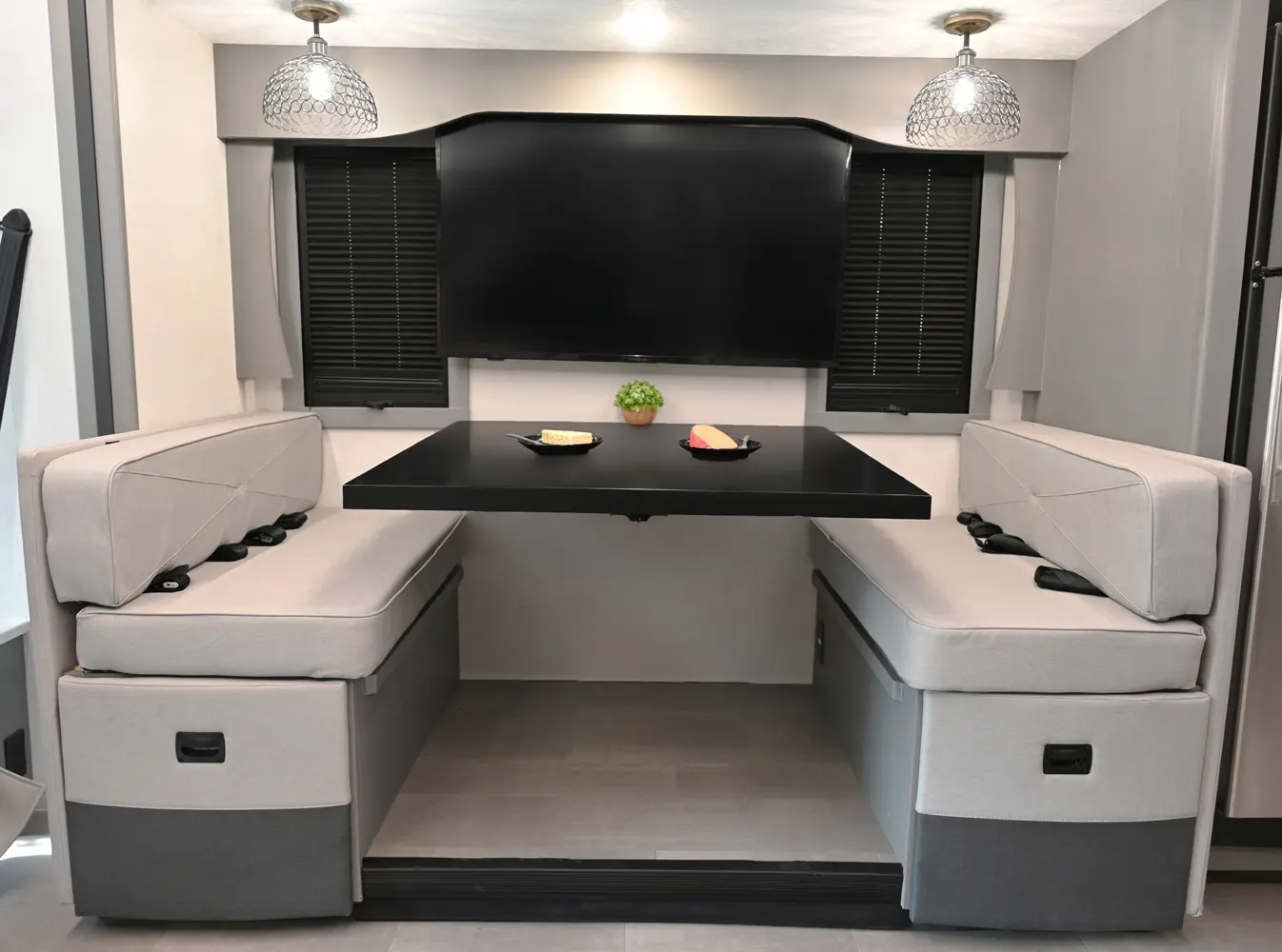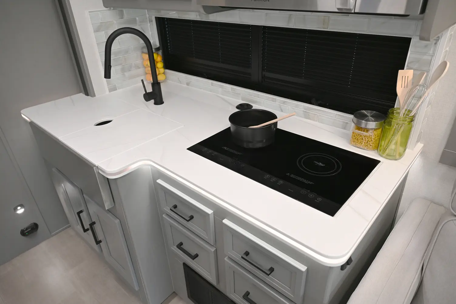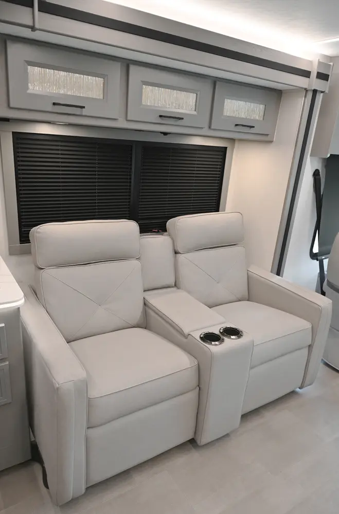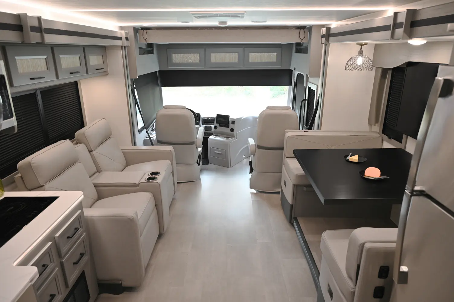 The Sportscoach RD 402TS delivers a powerful 41-foot diesel pusher ride built on a Freightliner raised-rail chassis. With air-ride suspension and panoramic windows, it offers a smooth journey through mountains, forests, or coastlines. Inside, the flat floor design and smart storage make it easy to bring all your gear. Premium finishes like solid-surface countertops and hardwood cabinetry provide refined comfort after long days of adventure.